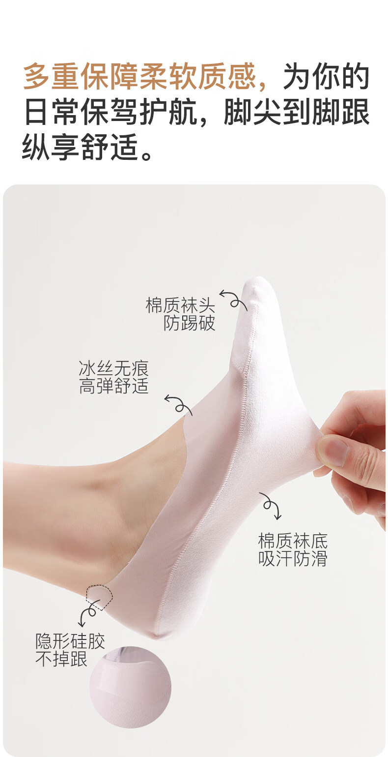 AUN ice silk invisible boat socks for women, non-slip, non-falling, summer thin style with single shoes, high heels, shallow boat socks, shallow boat socks, four mixed colors, one size fits all, ice silk fabric, cotton soles