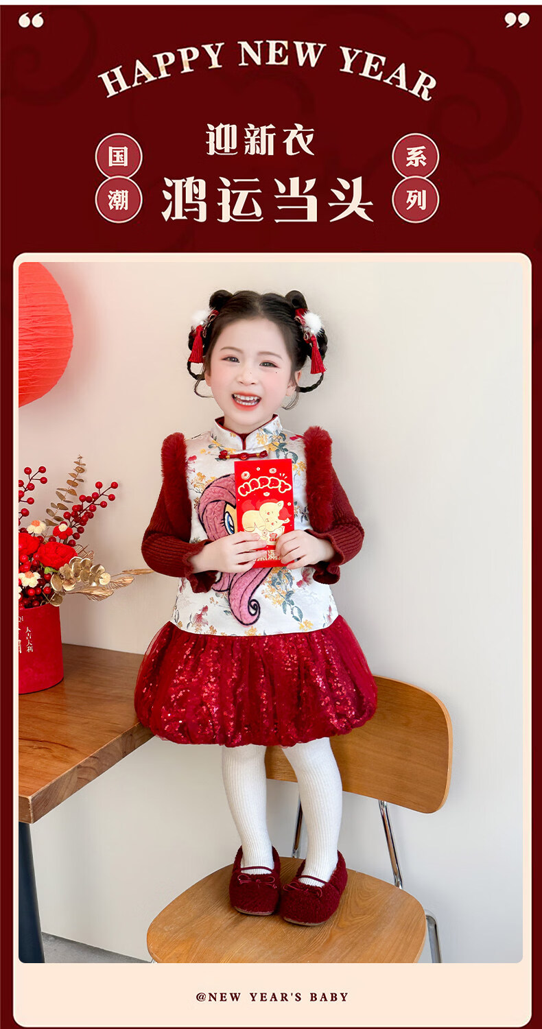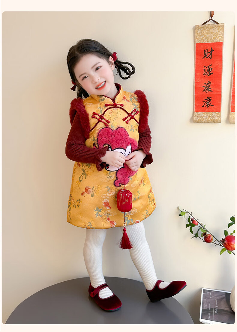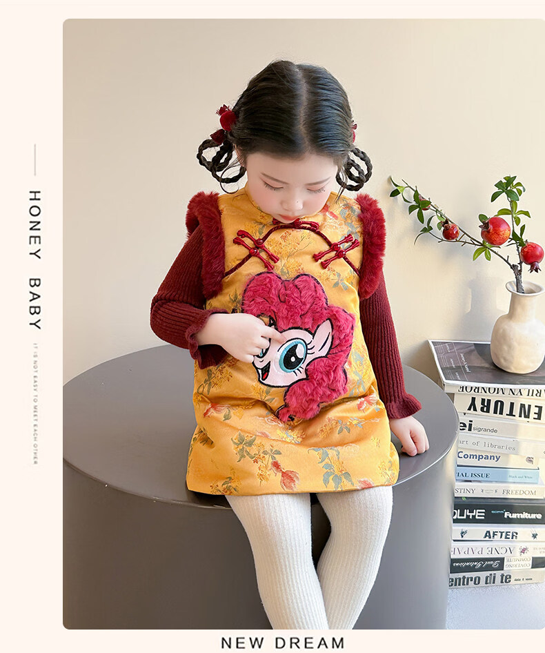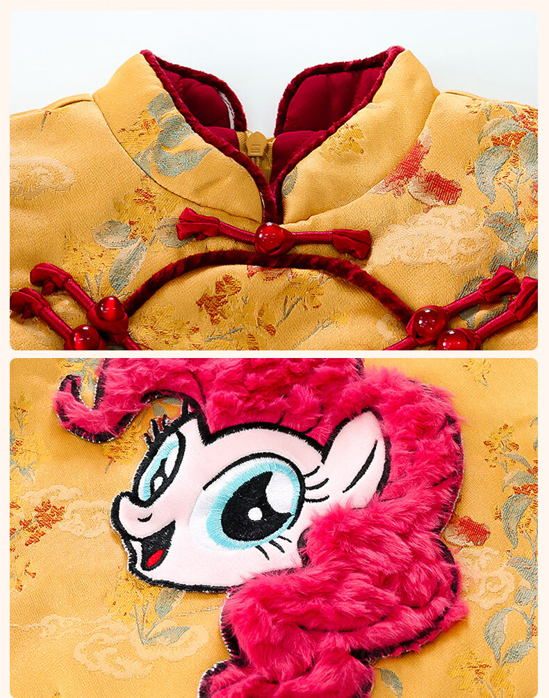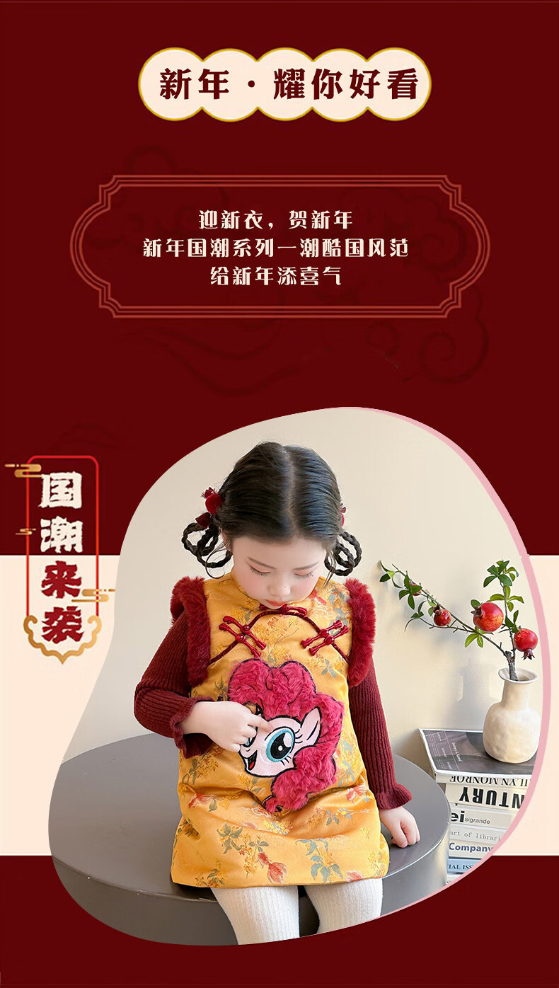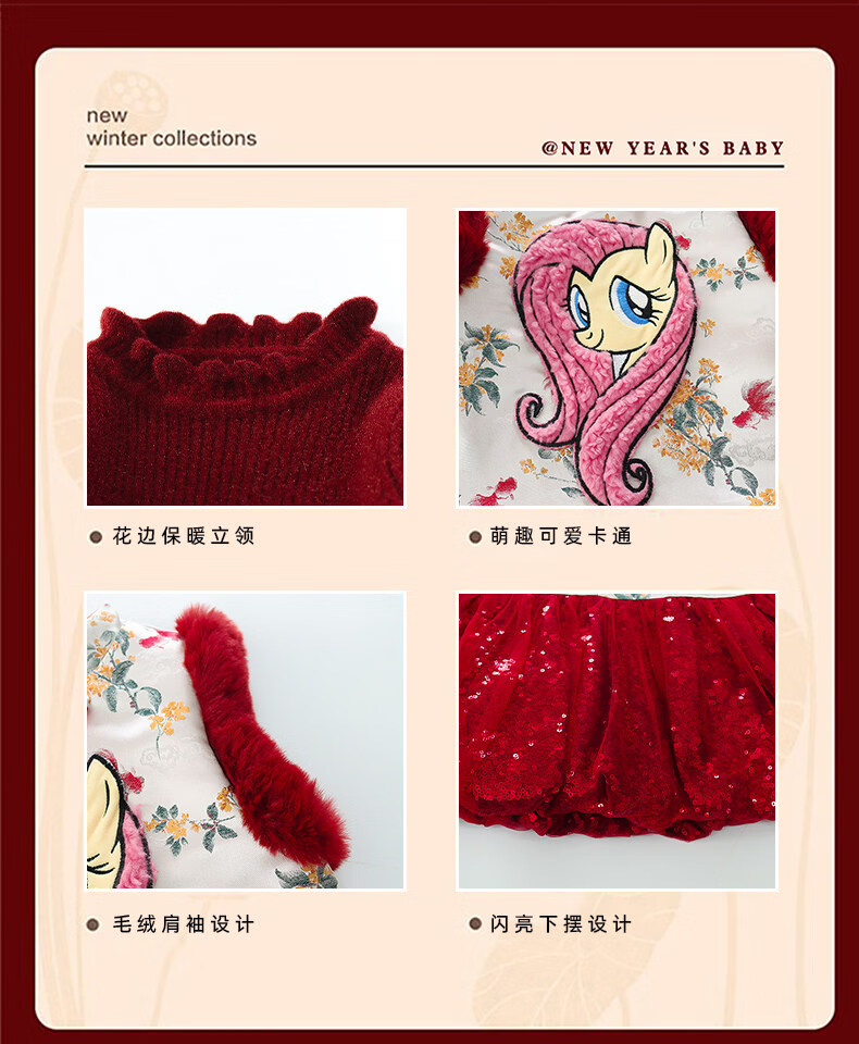 Disney My Little Pony Thickened New Year's Eve Dress Winter 2026 New Girls Red Velvet and Cotton Warm Suit Red Skirt + Inner 140 cm