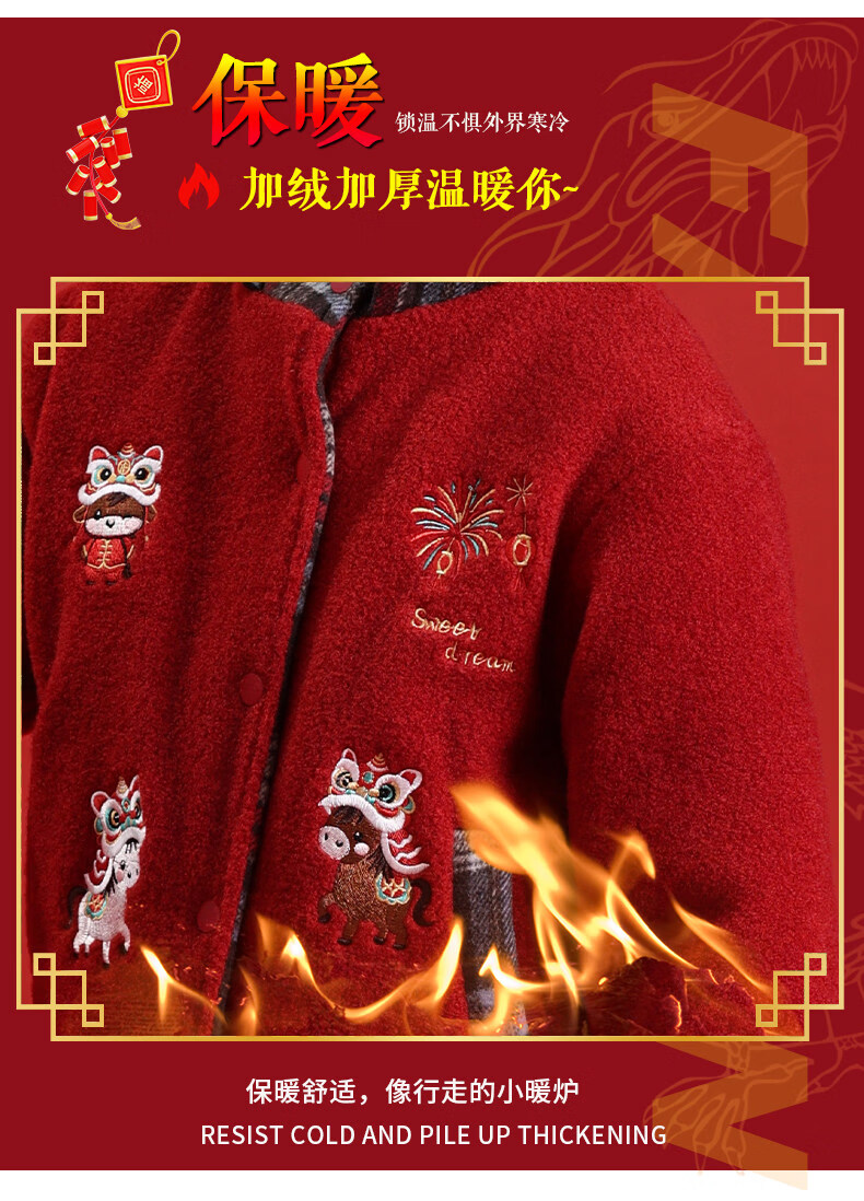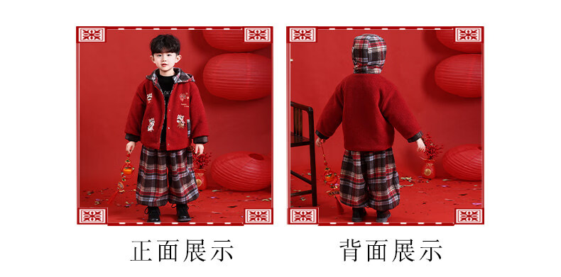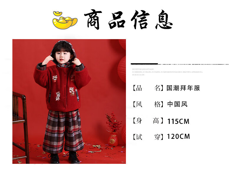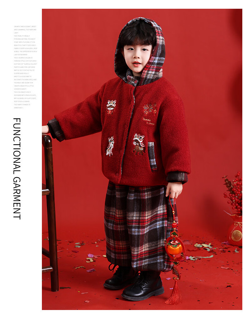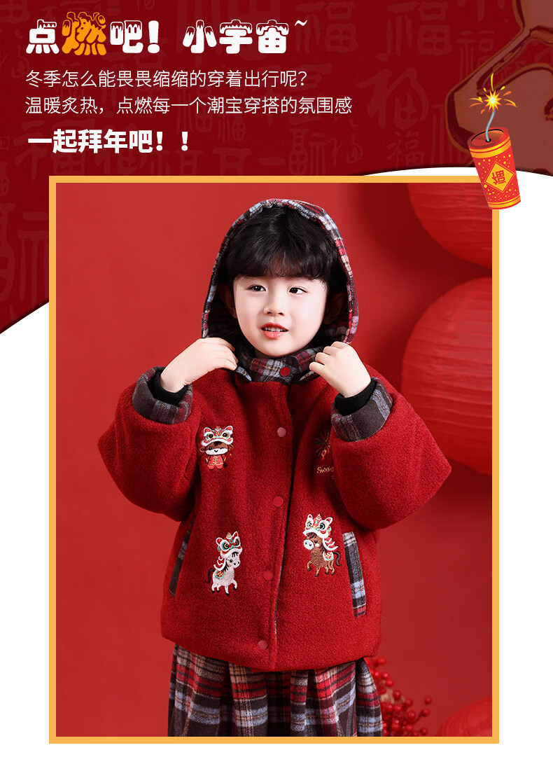 HAL.DUCK New Year's greetings boys' winter thickened cotton suit children's 2026 Year of the Horse red festive boy's winter jacket red 130 cm