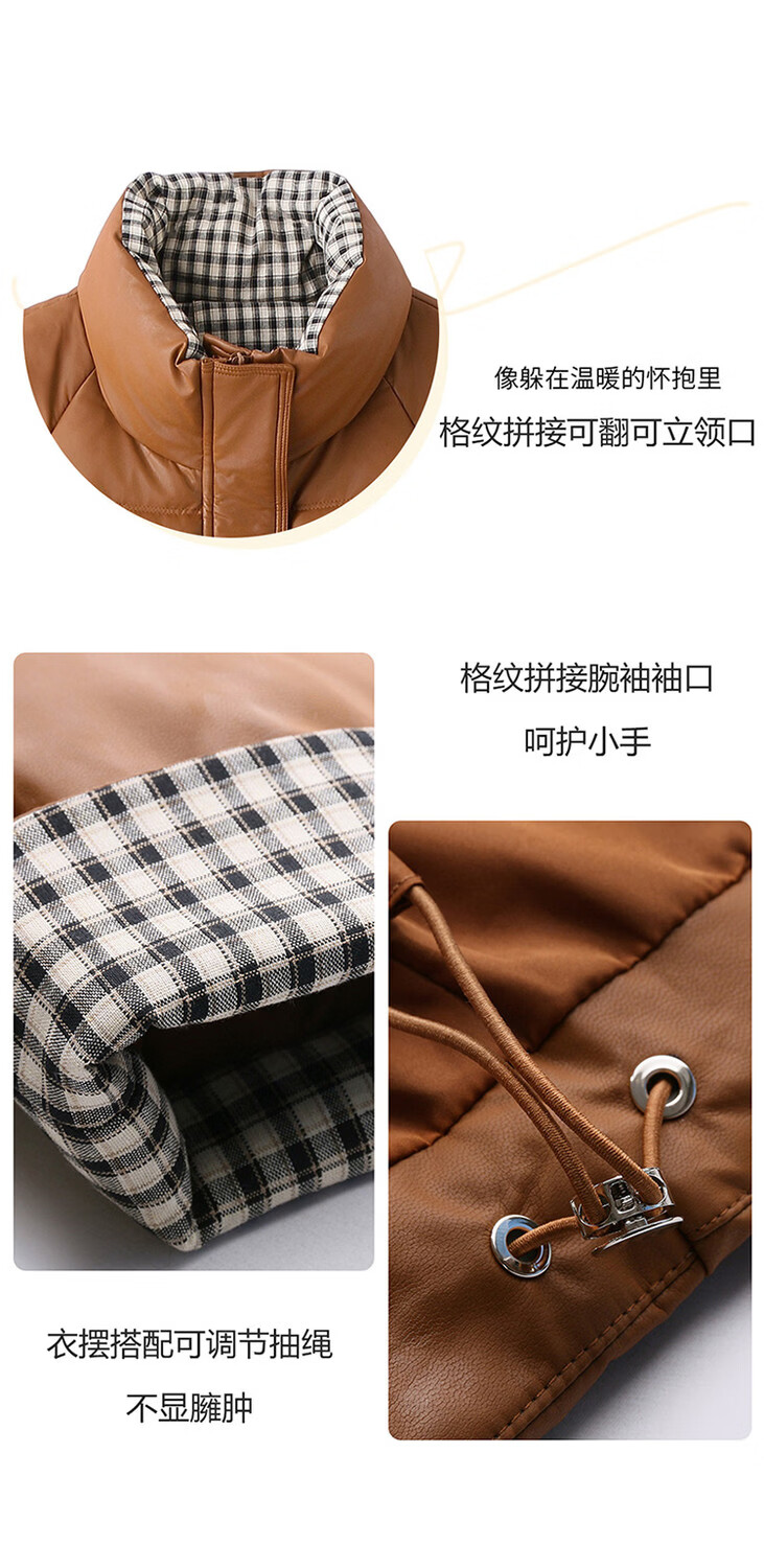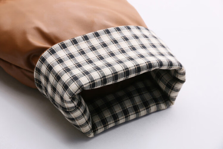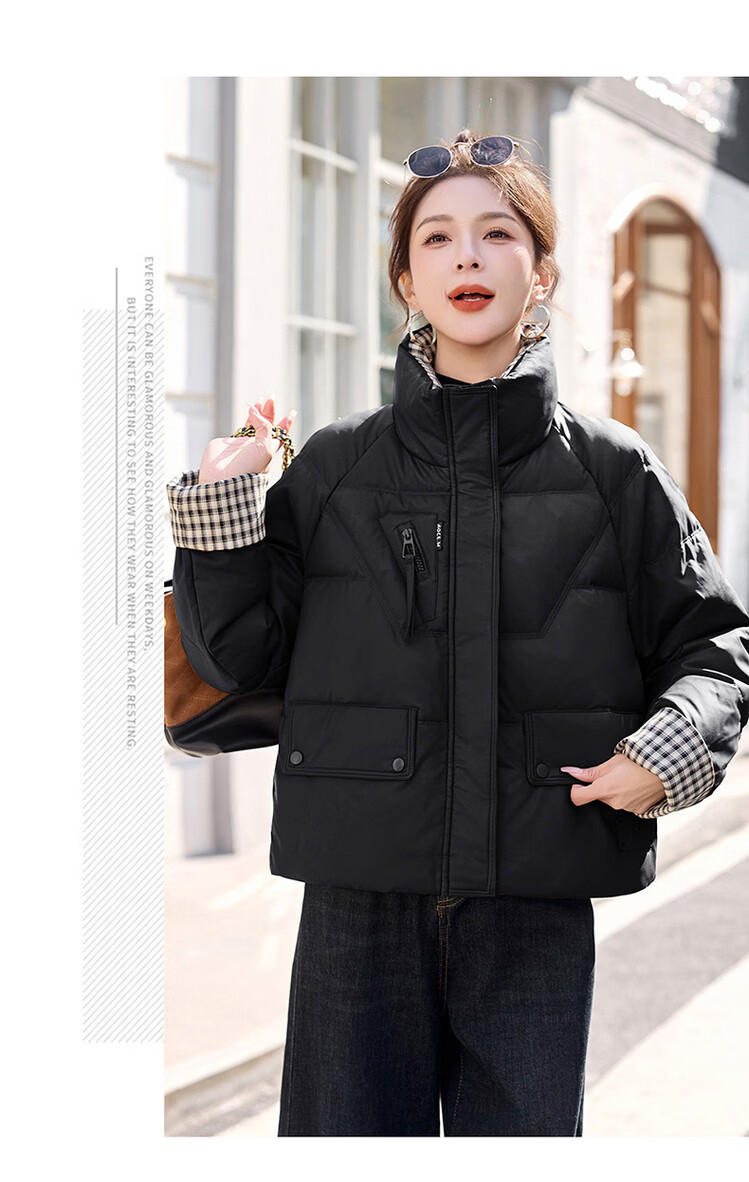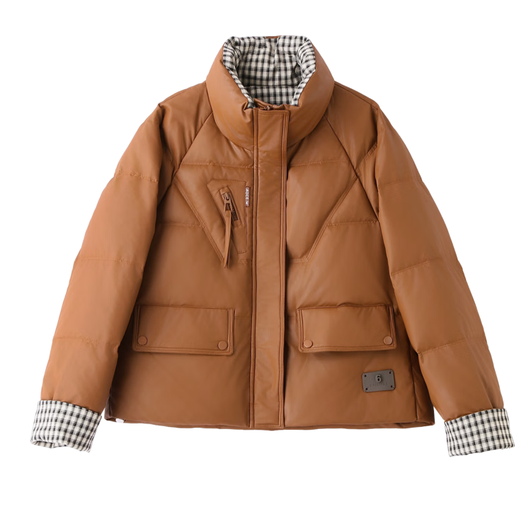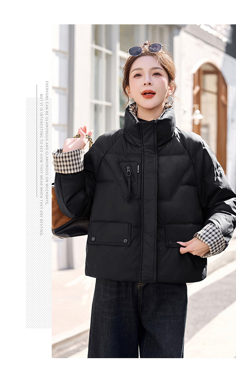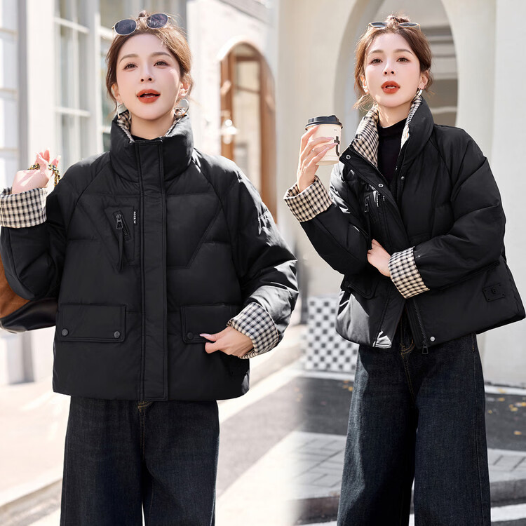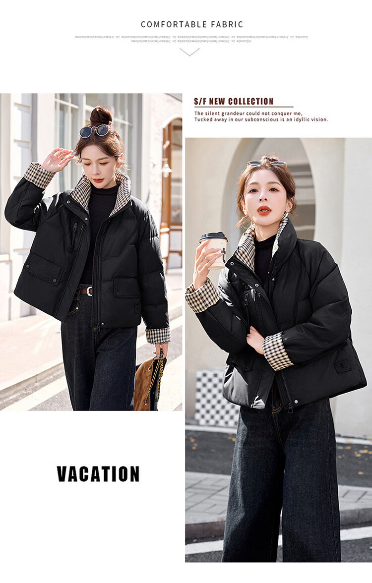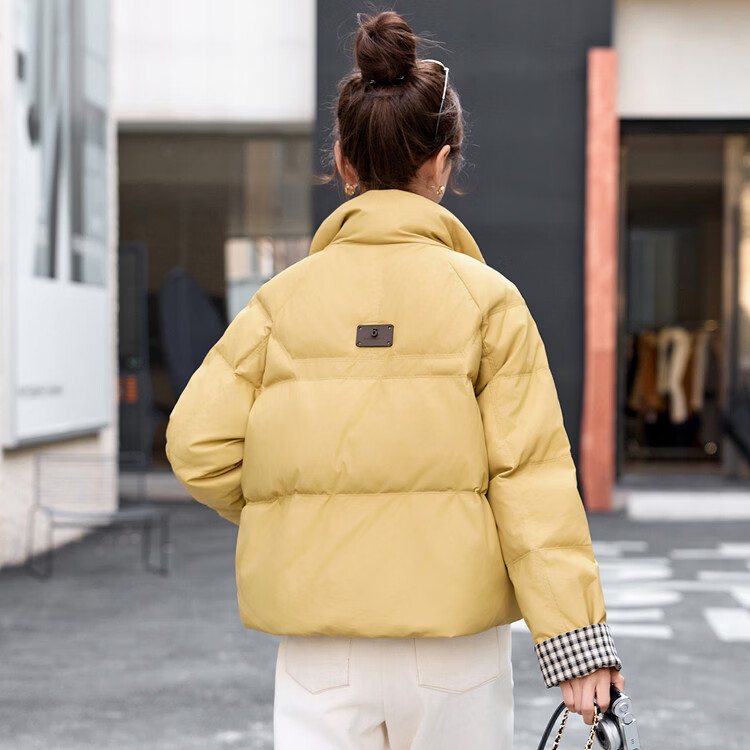 Hengyuanxiang Plaid Splicing Stand Collar Down Jacket Women's Short 2026 Winter New Style Small Thickened Warm White Duck Down Jacket Brown M