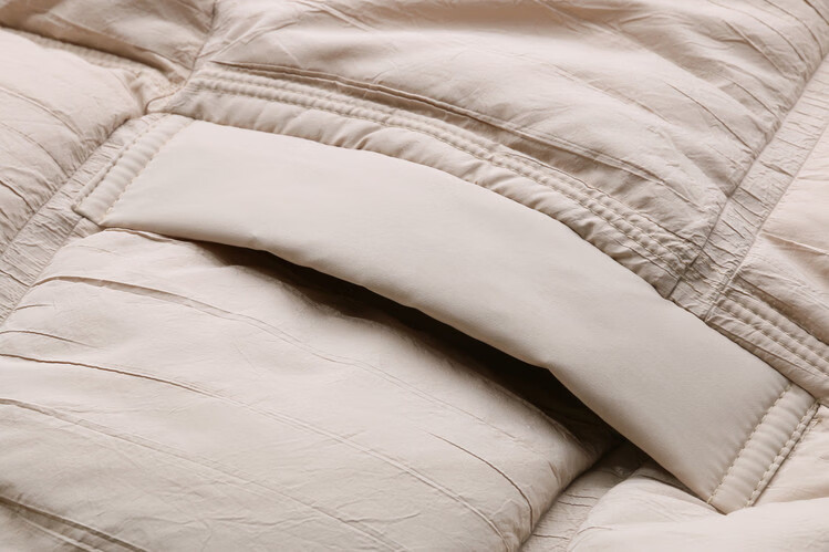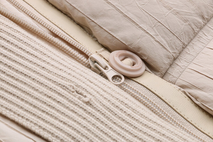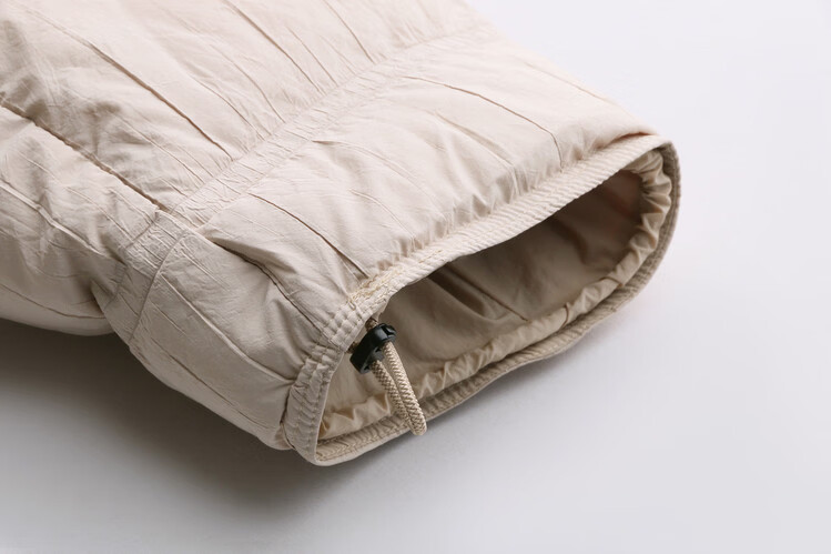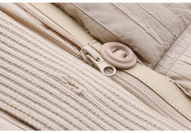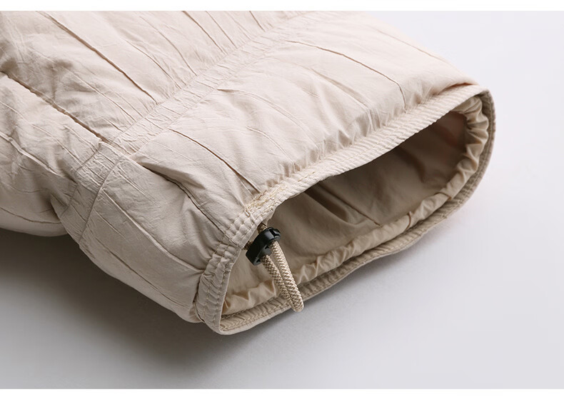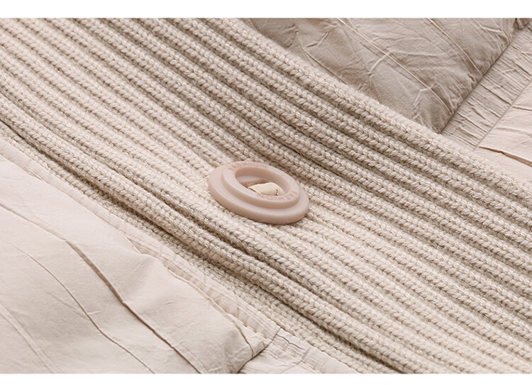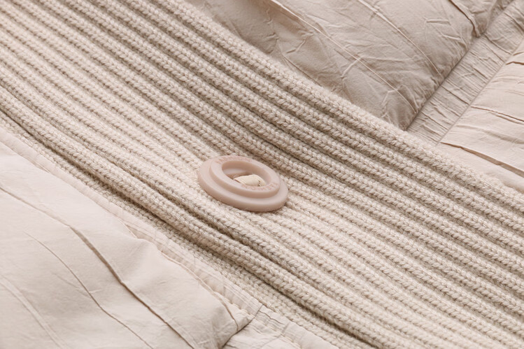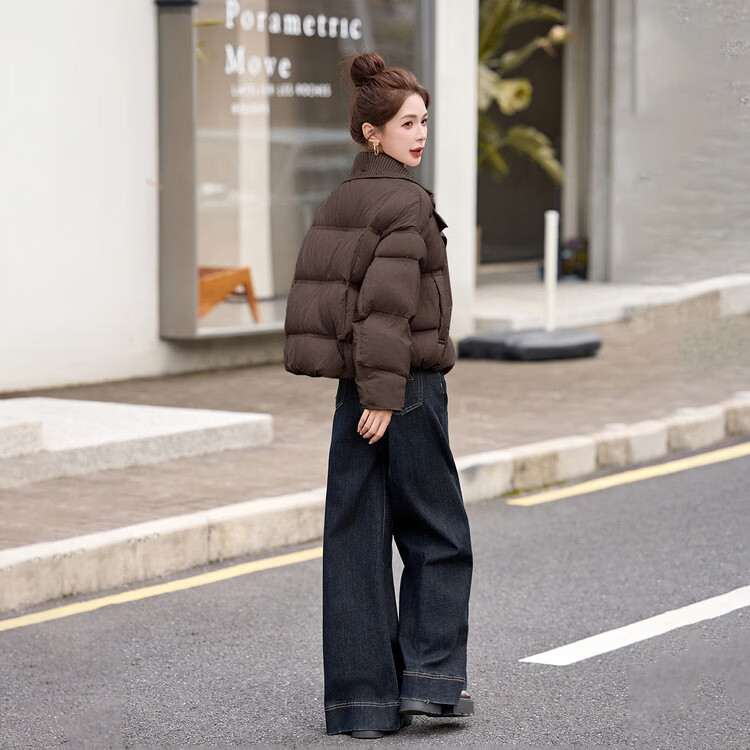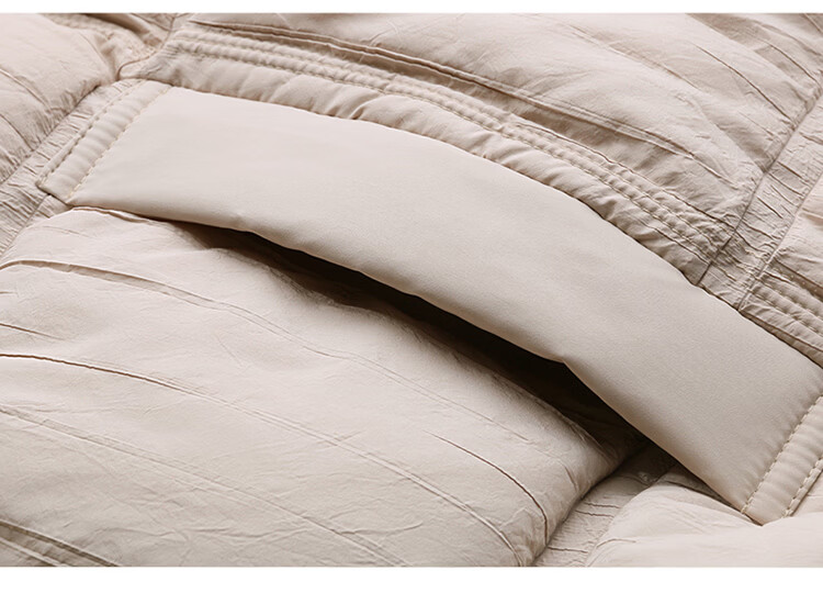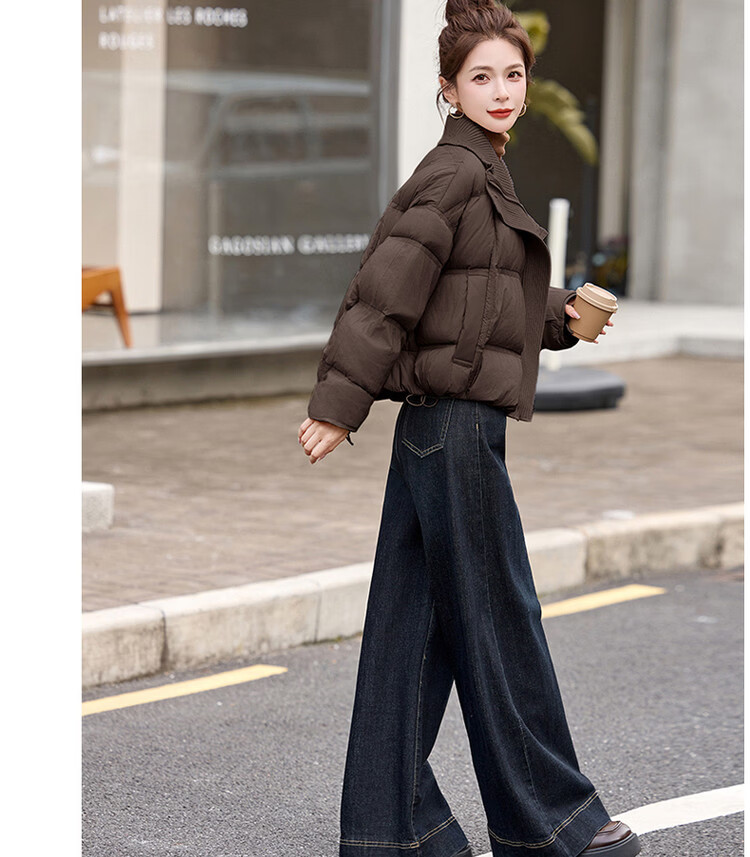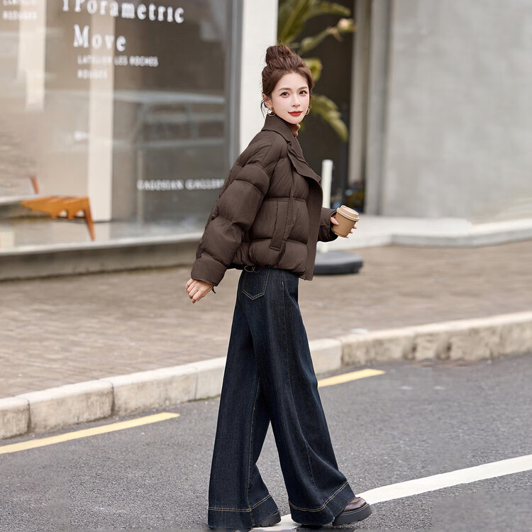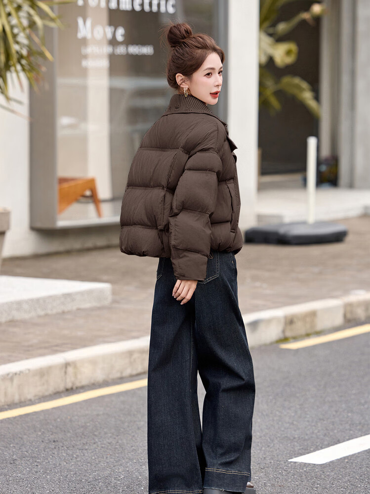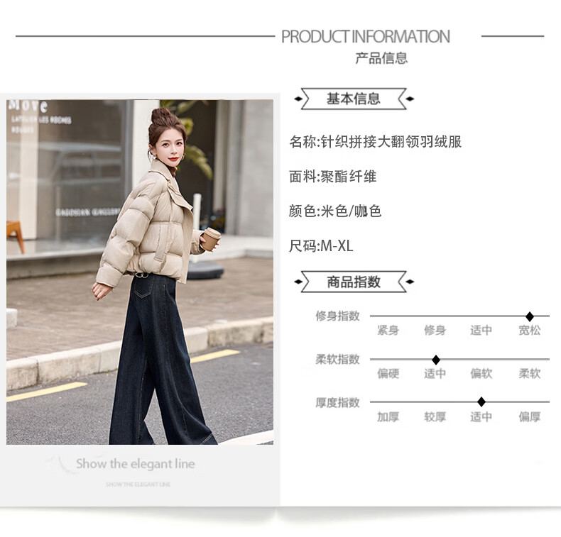 Hengyuanxiang knitted stitching large lapel short down jacket for women 2026 winter fashionable white duck down thickened warm jacket beige M