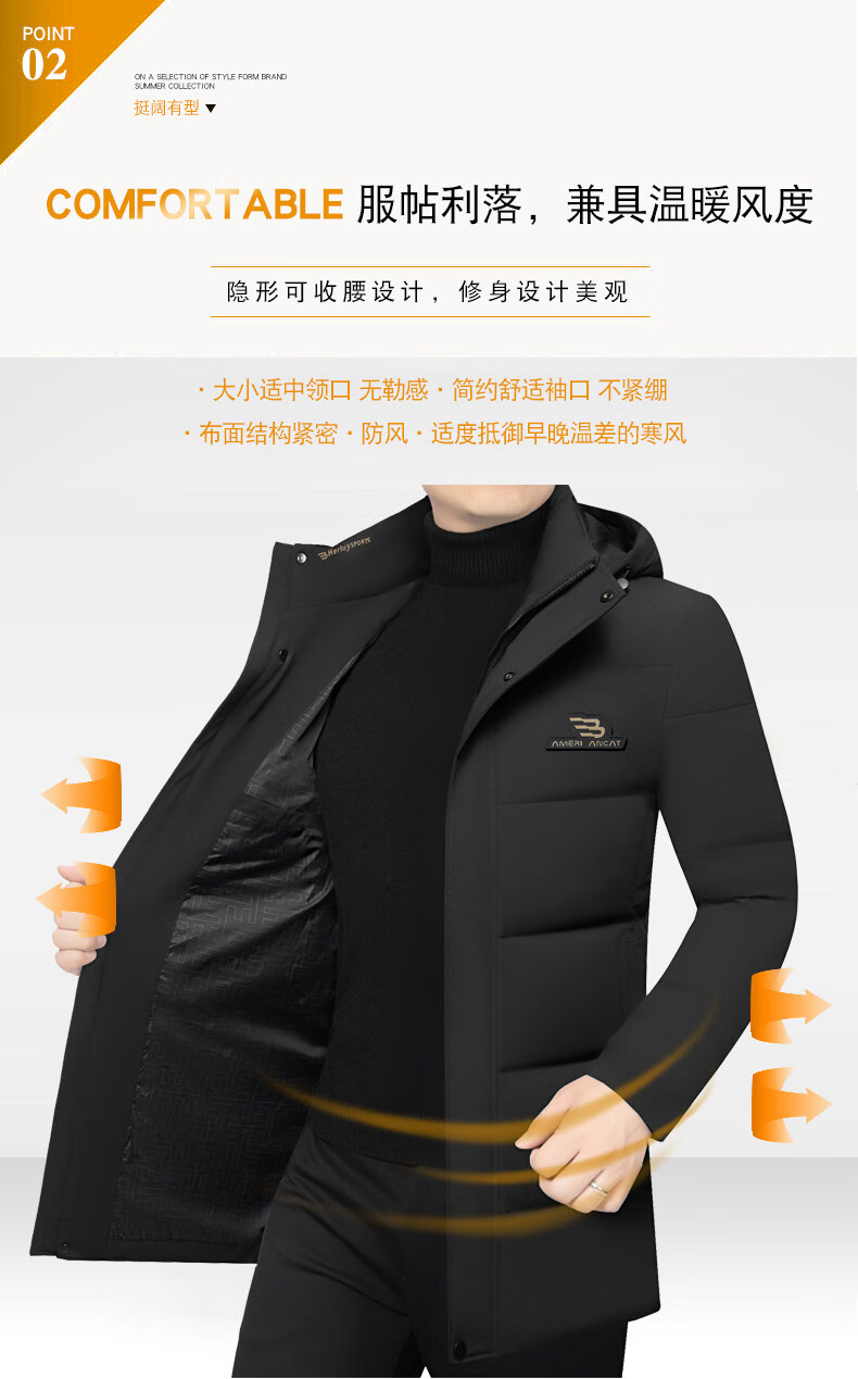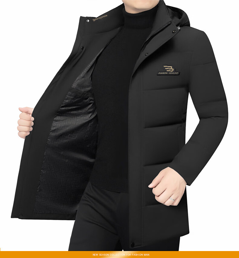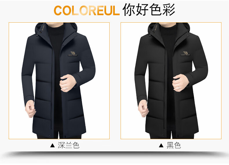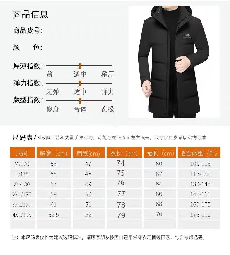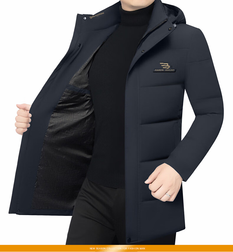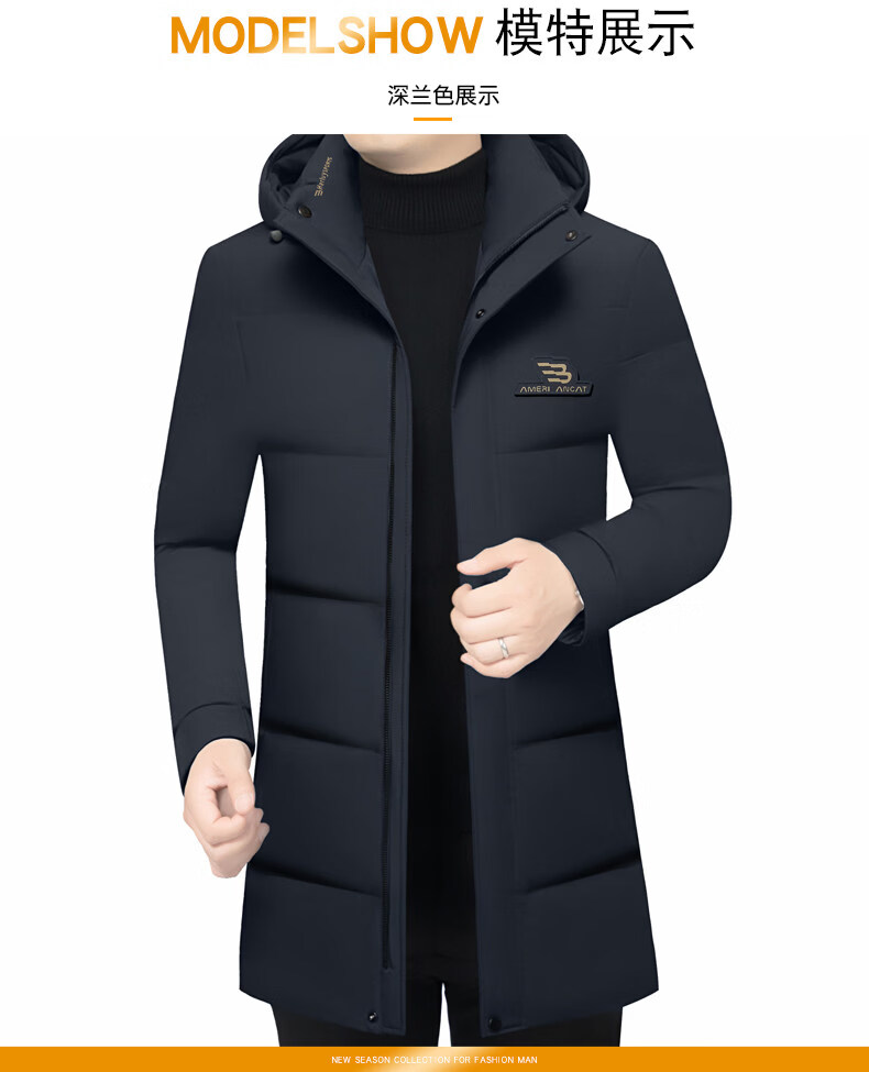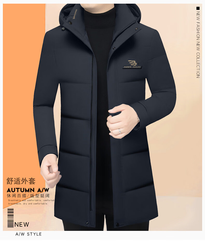 JEEP SPIRIT Jeep Spirit Down Jacket for middle-aged men, fashionable and casual, mid-length, thickened milk silk five-proof jacket, navy blue 3XL 190 (165-180Jin Jin equals 0.5kg)