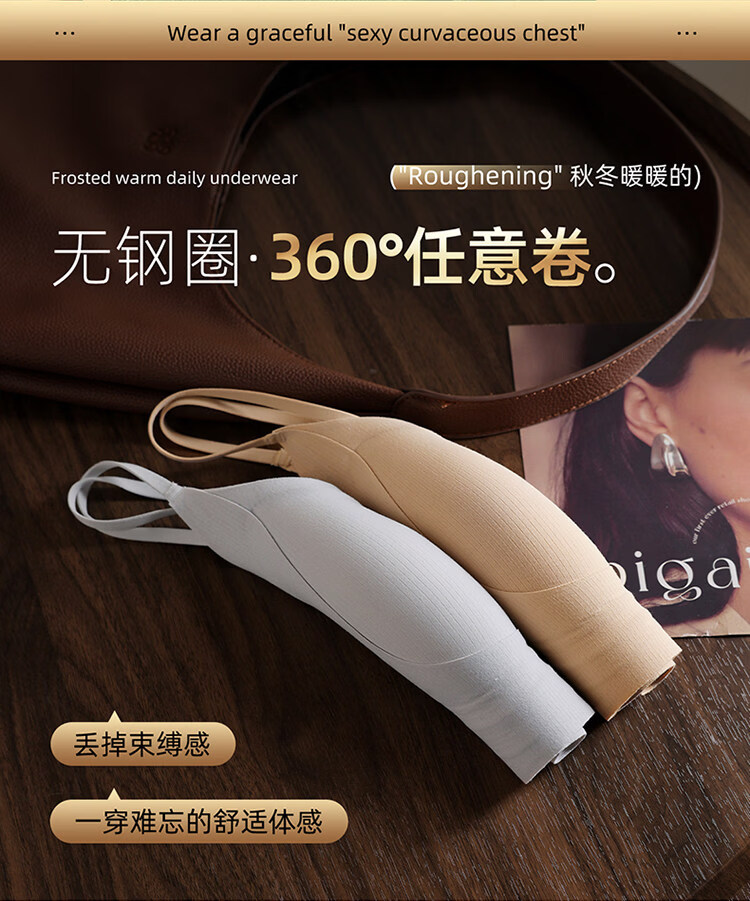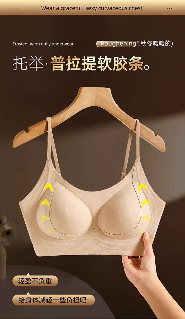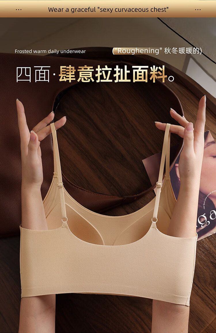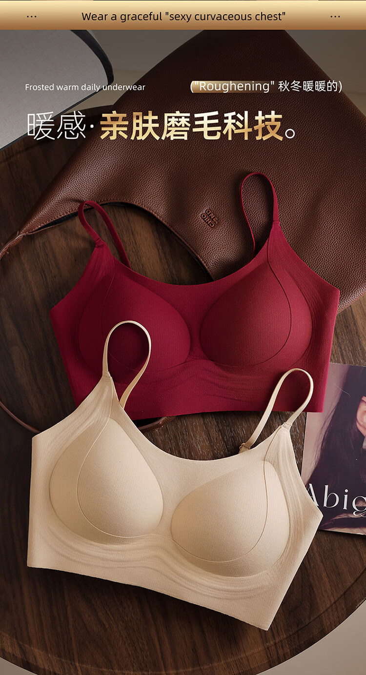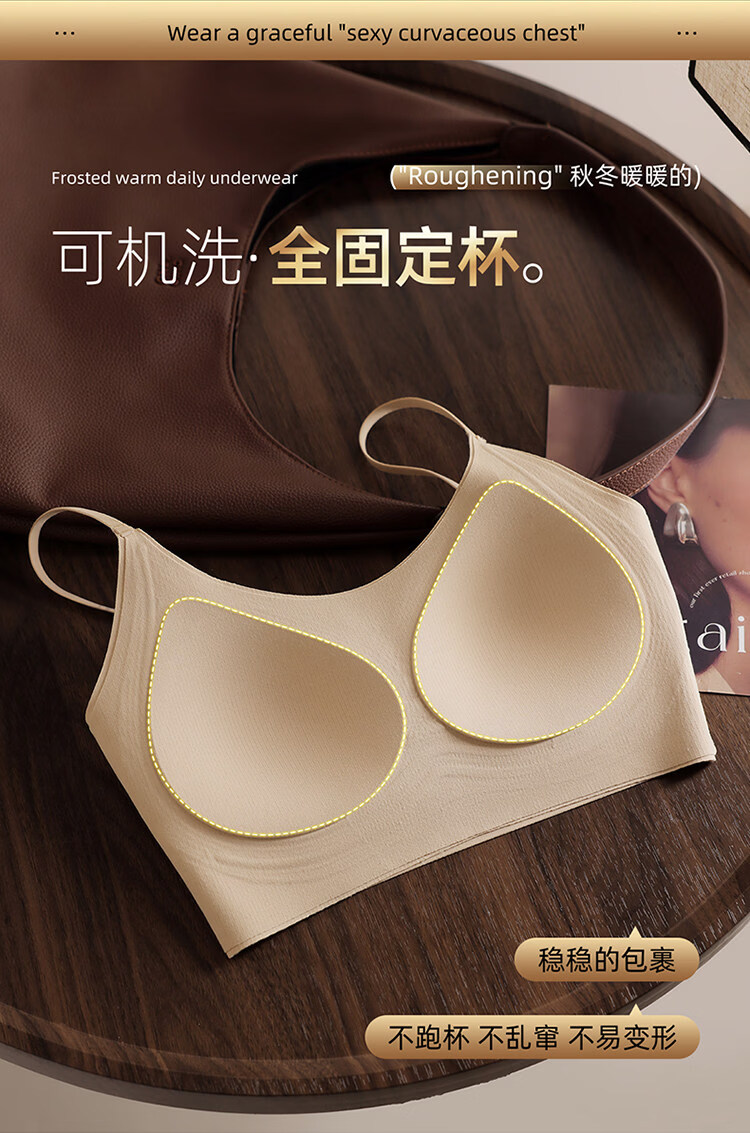 MiiOW latex fixed cup back bra, one-piece brushed warm vest style bra, non-magnetic, non-wireless, security inspection underwear, 1 piece of cocoa brown + 1 piece of cocoa brown M 34/75ABC
