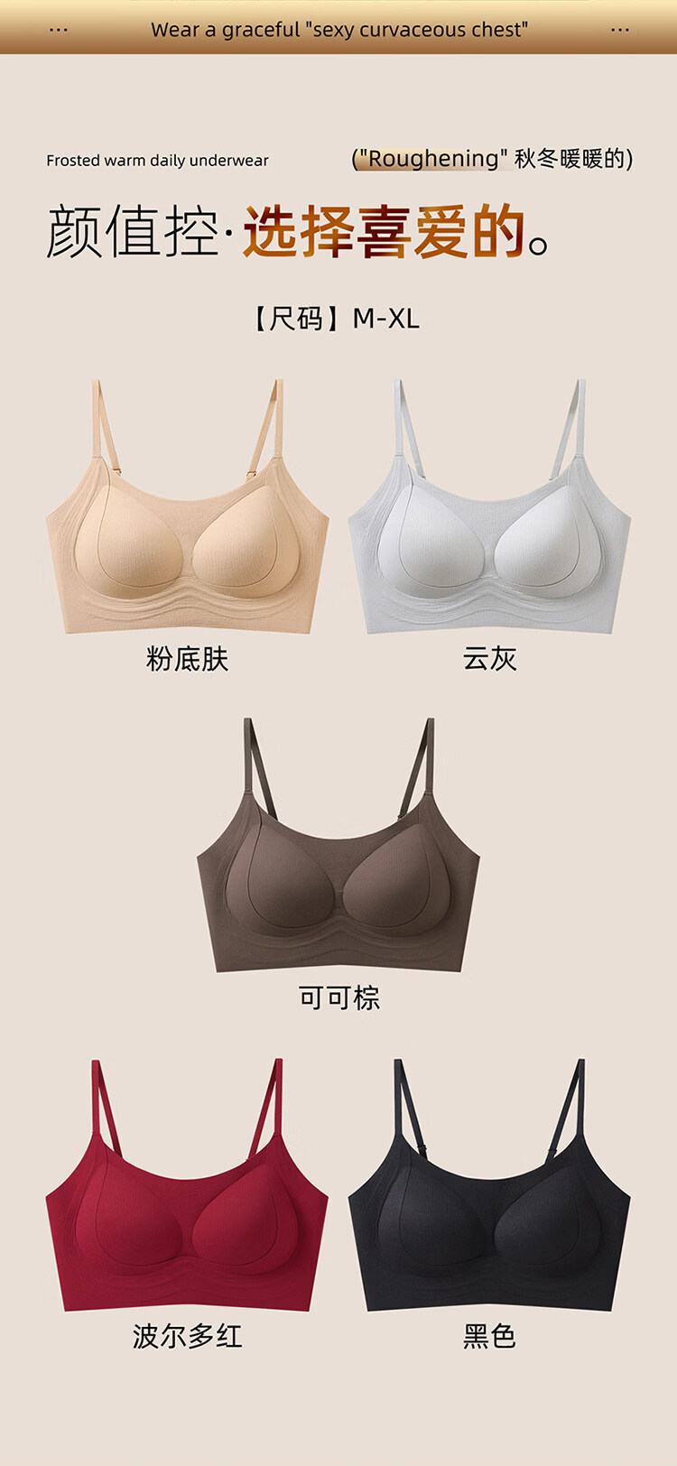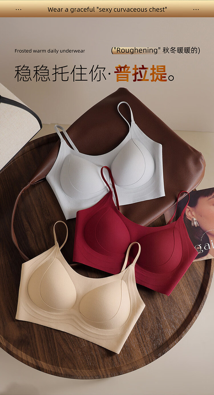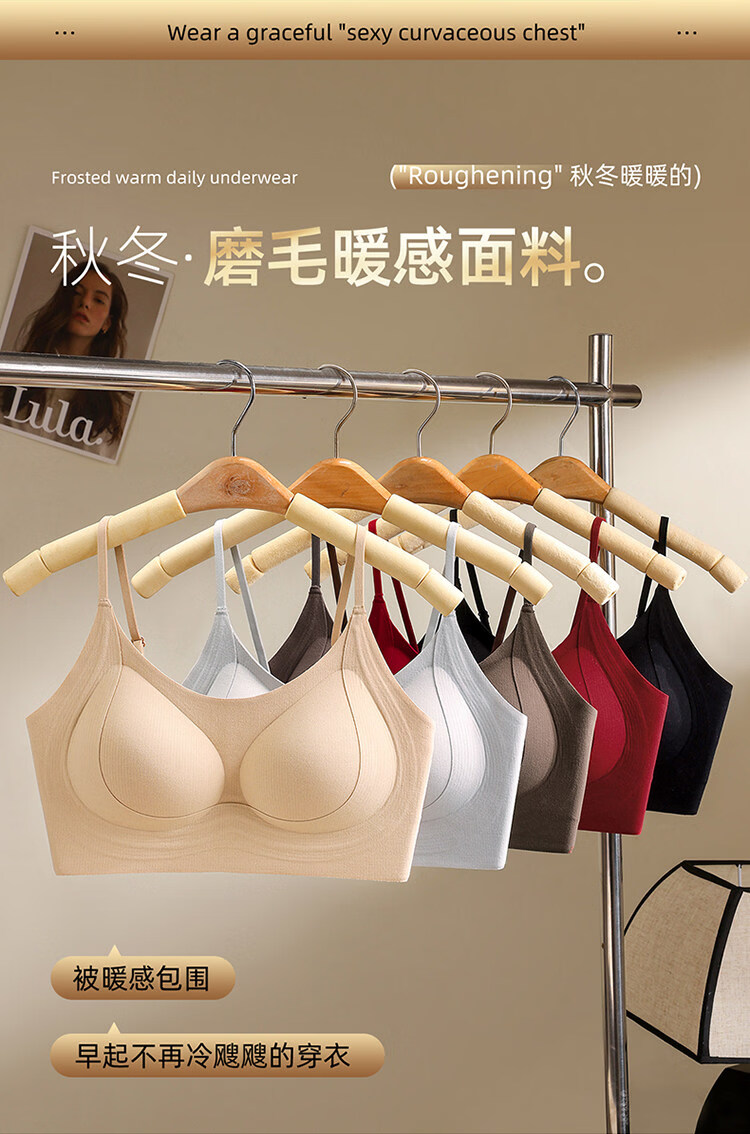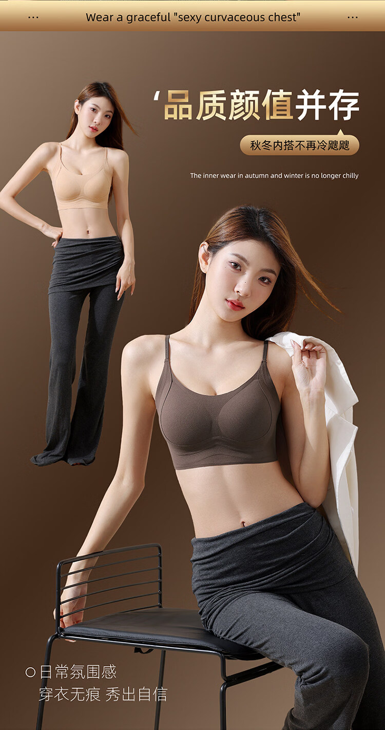 MiiOW latex fixed cup back bra, one-piece brushed warm vest style bra, non-magnetic, non-wireless, security inspection underwear, 1 piece of cocoa brown + 1 piece of cocoa brown M 34/75ABC