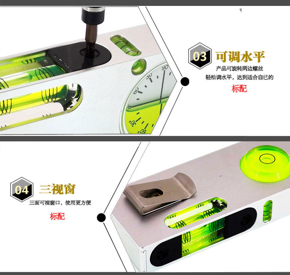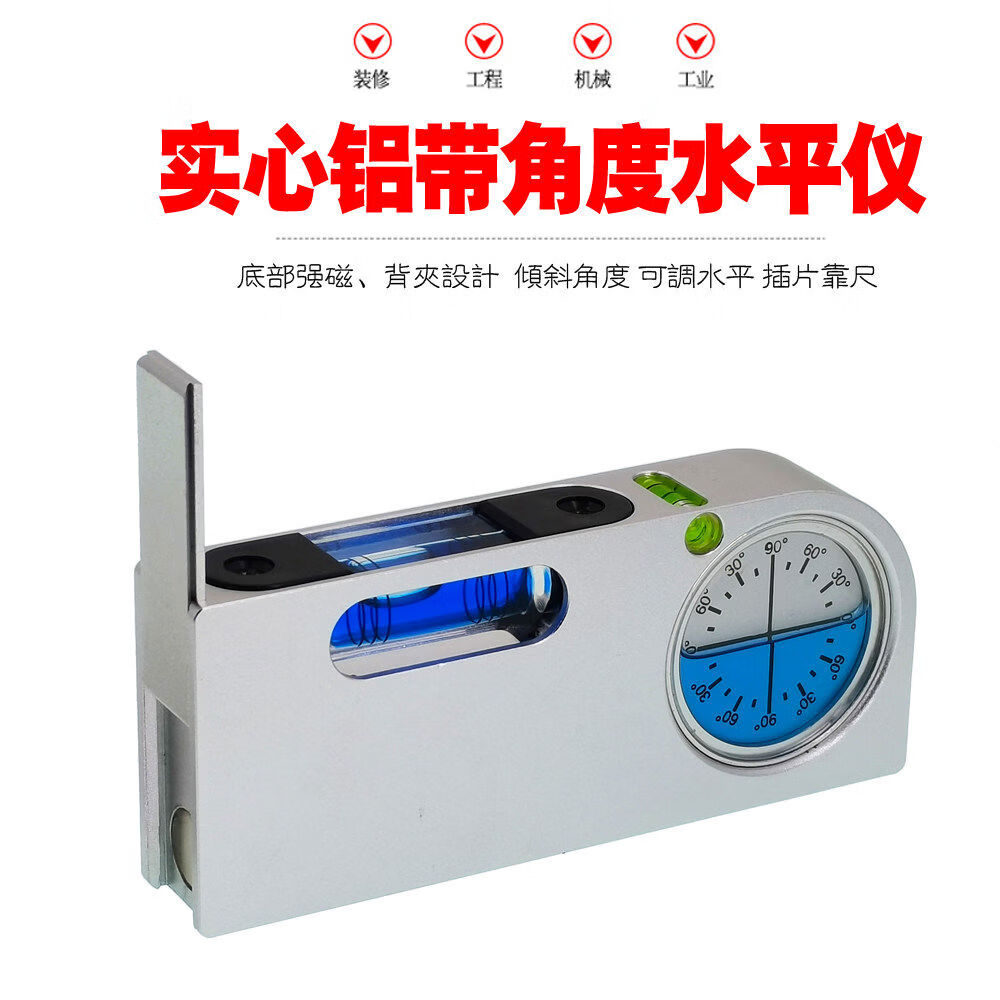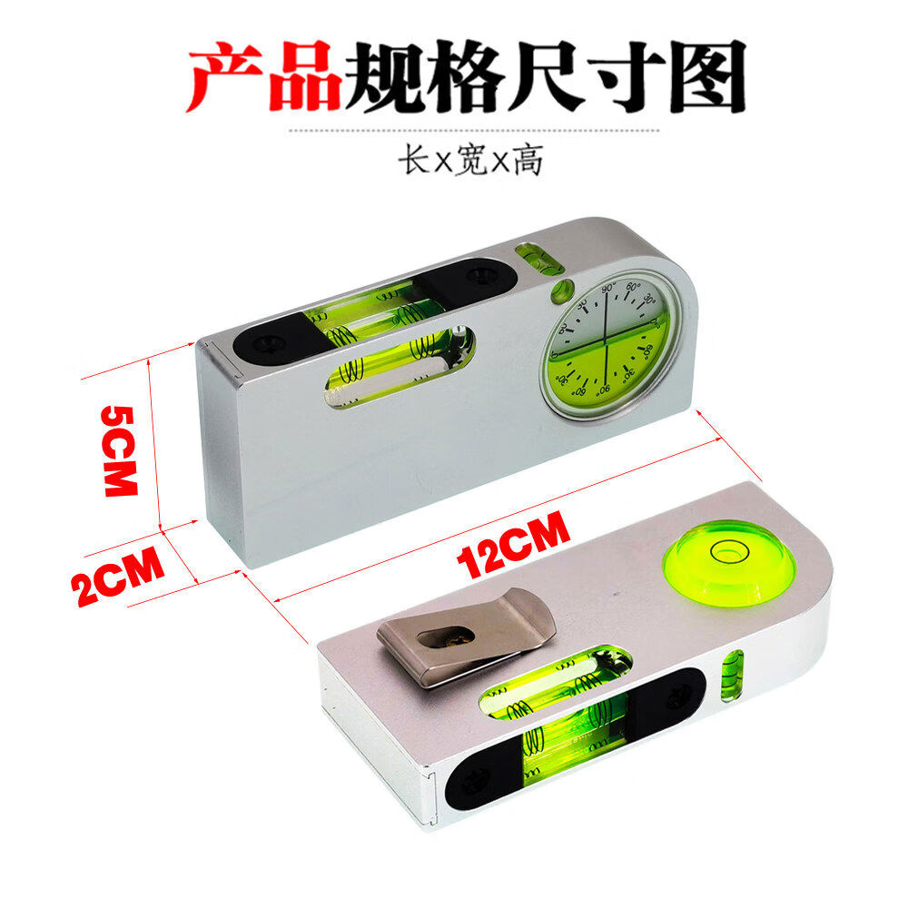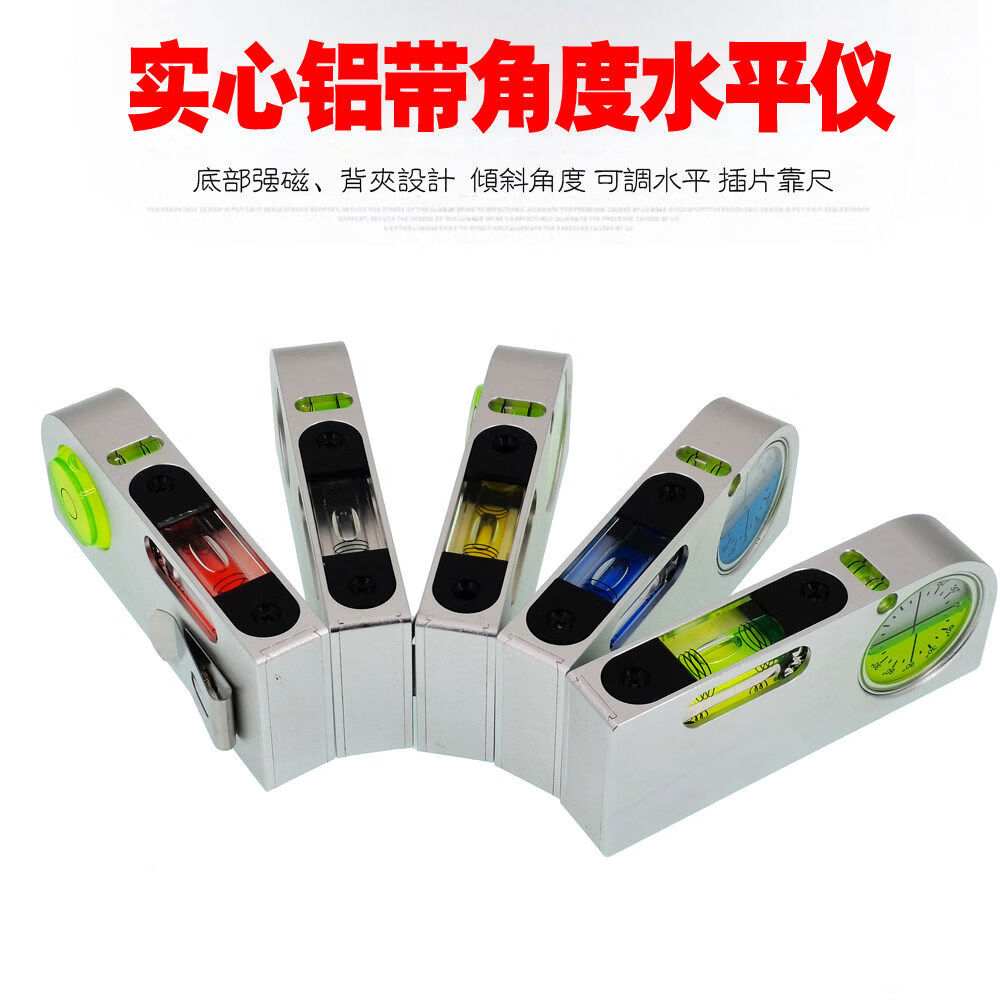 Solid aluminum alloy small spirit level tilt angle measurement portable mini adjustable level bubble magnetic universal upgrade aluminum adjustable fastener silver blue luminous
