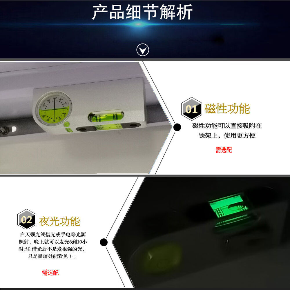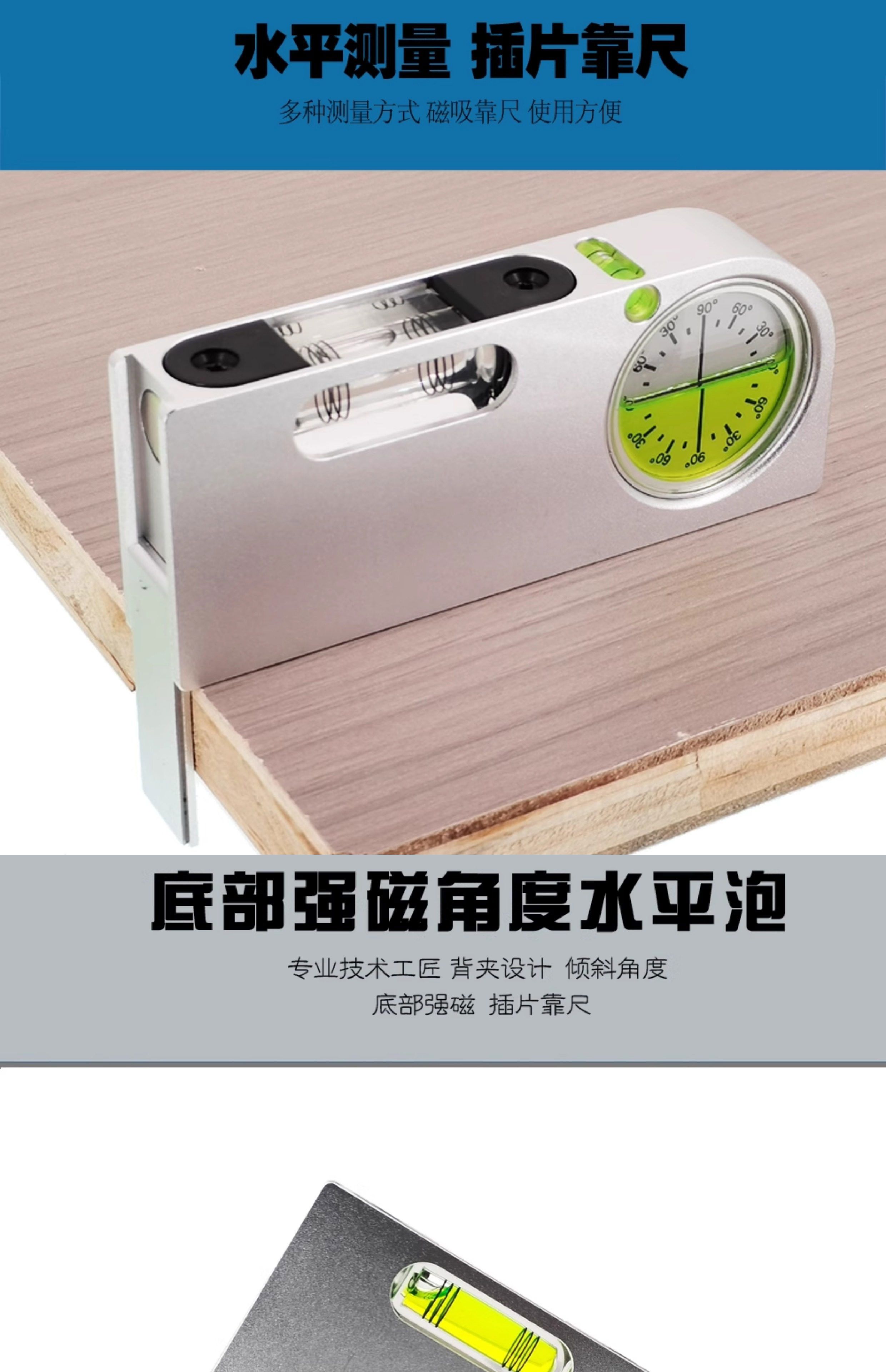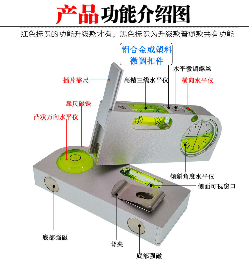 Solid aluminum alloy small spirit level tilt angle measurement portable mini adjustable level bubble magnetic universal upgrade aluminum adjustable fastener silver blue luminous