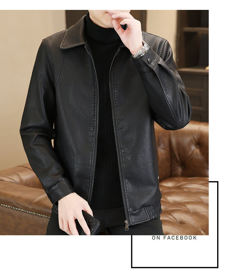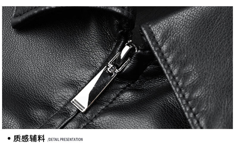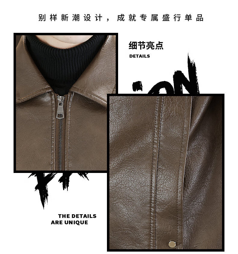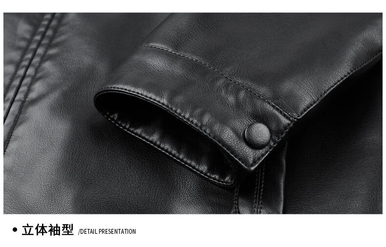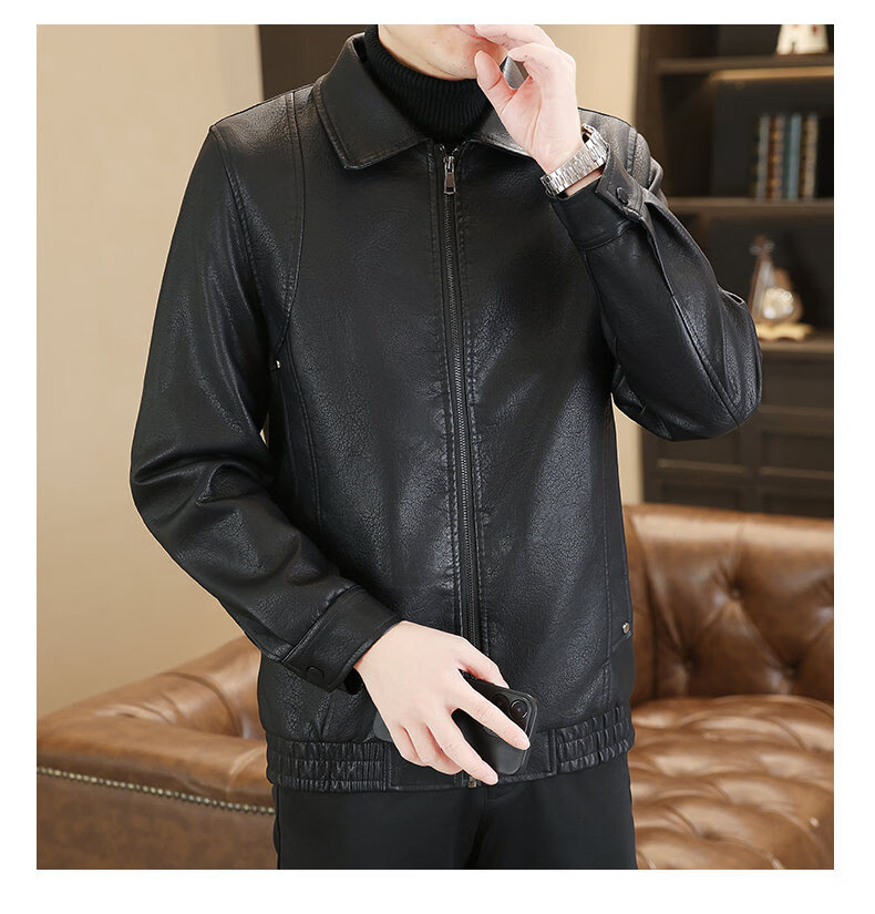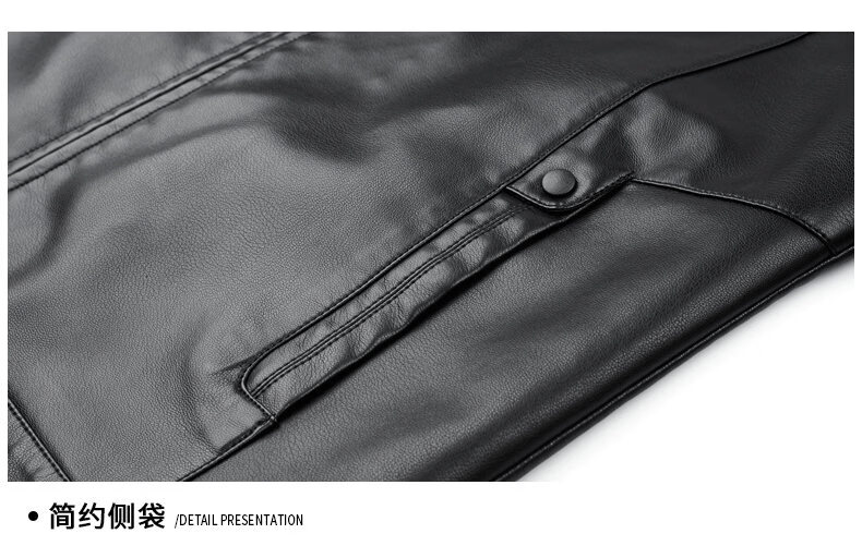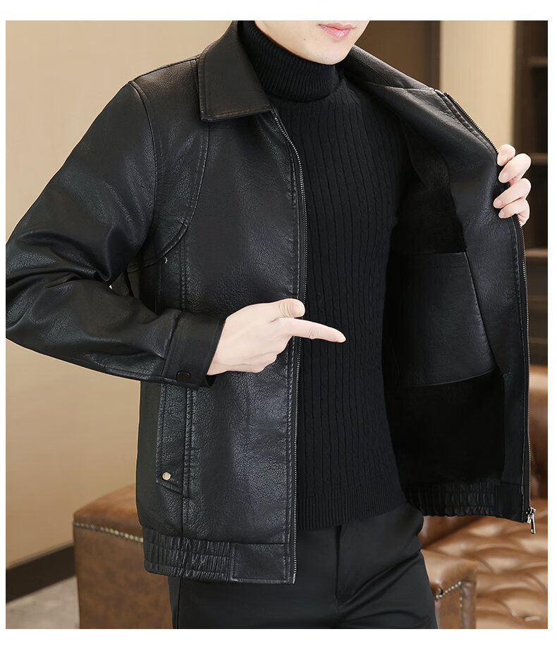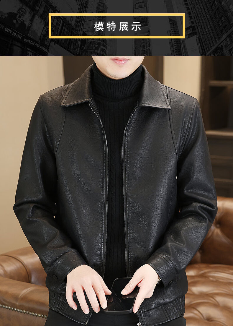 ROMON leather jacket men's 2026 new spring and autumn trendy brand handsome motorcycle jacket men's velvet thickened leather jacket top black thickened style XL (180)