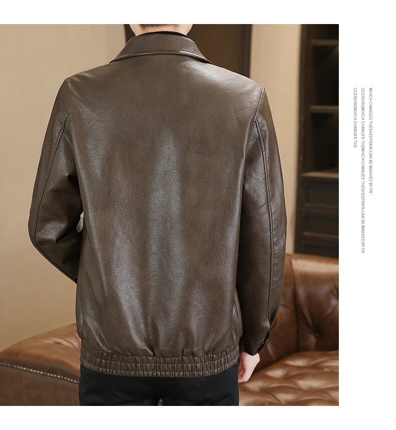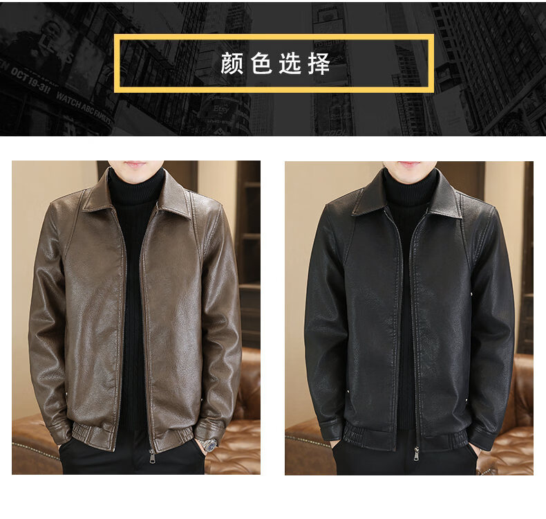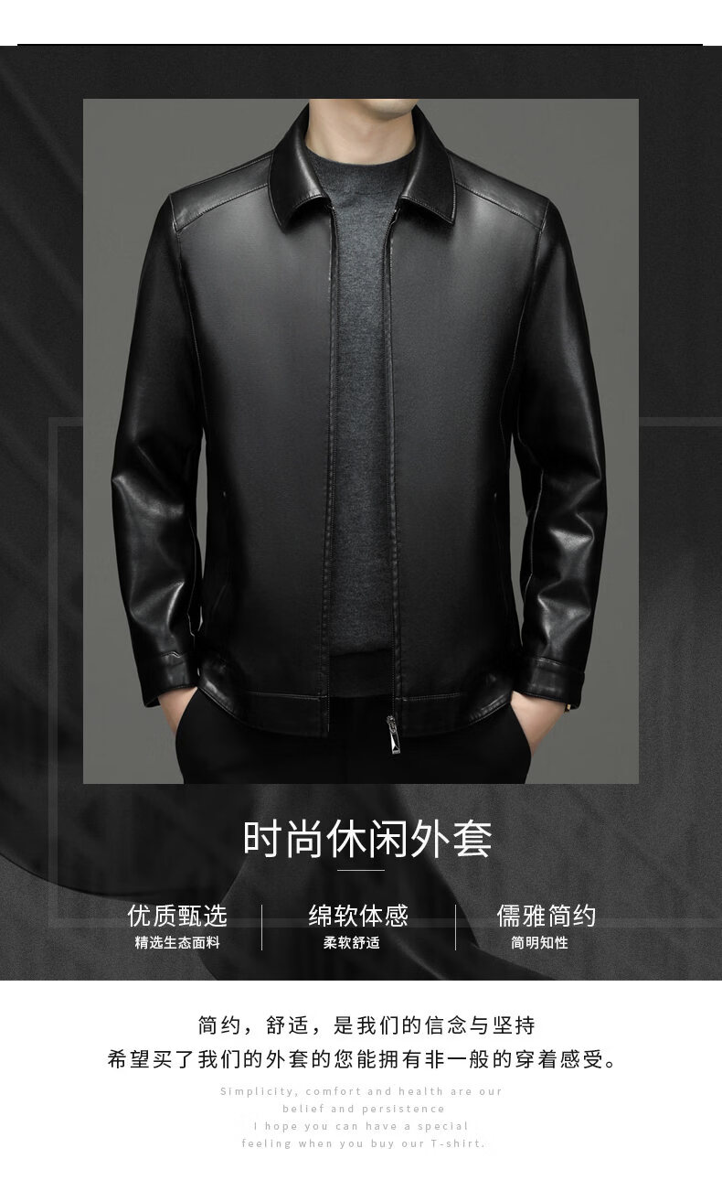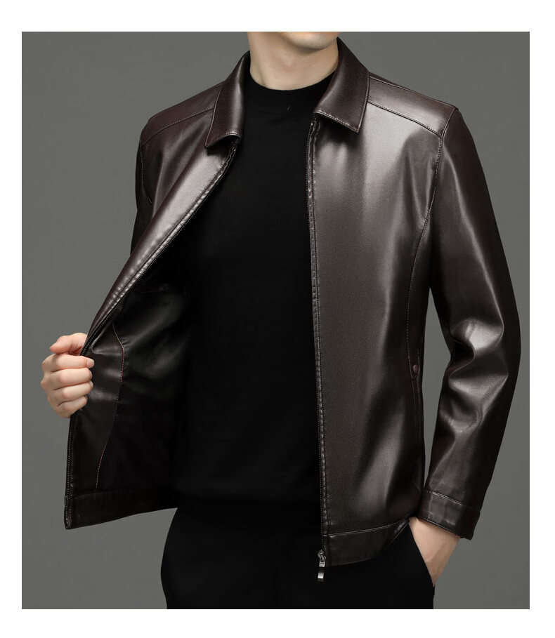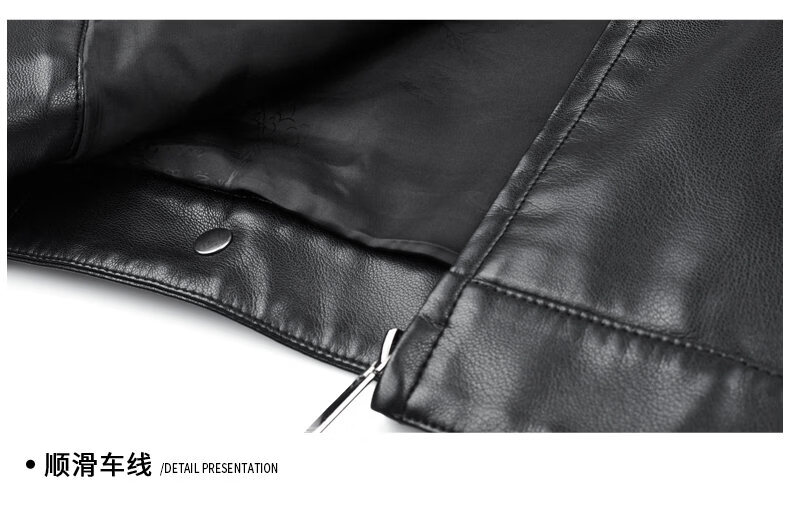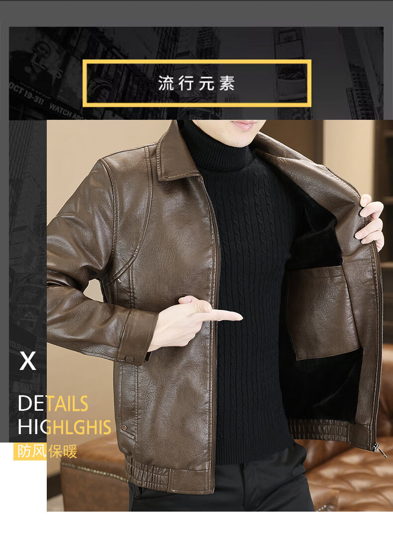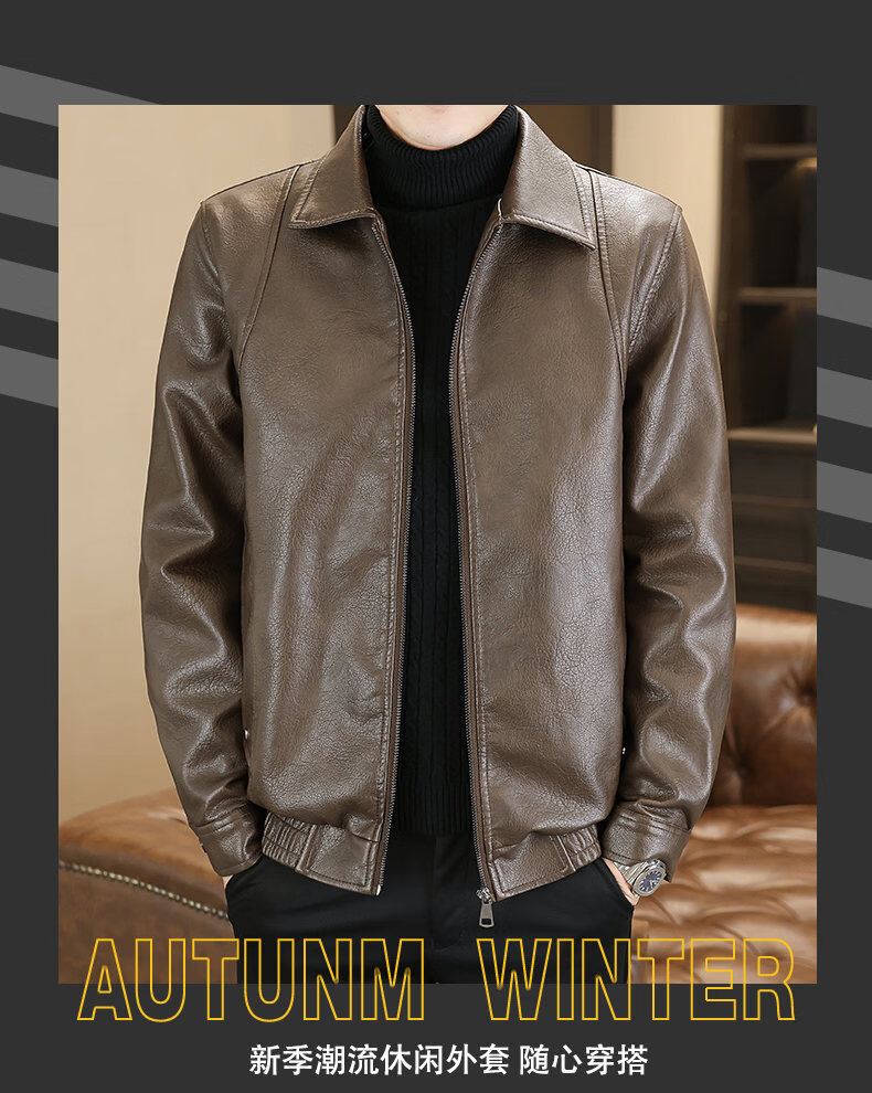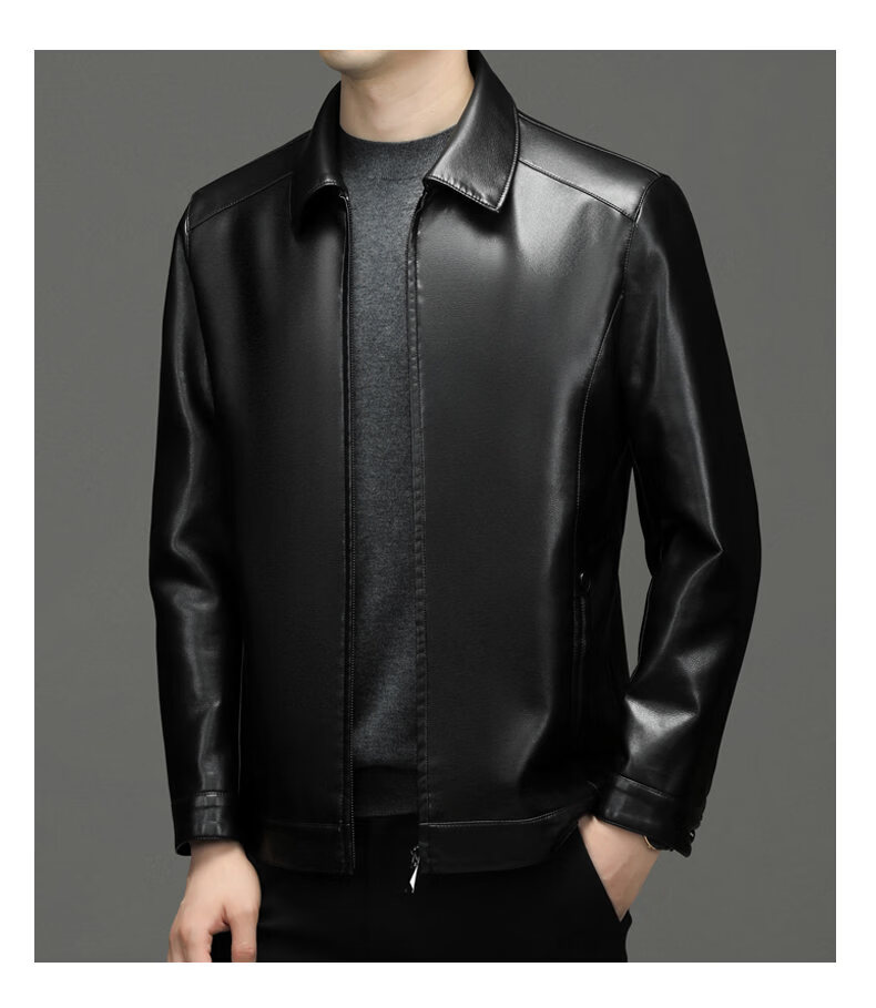 ROMON leather jacket men's 2026 new spring and autumn trendy brand handsome motorcycle jacket men's velvet thickened leather jacket top black thickened style XL (180)
