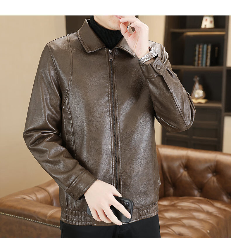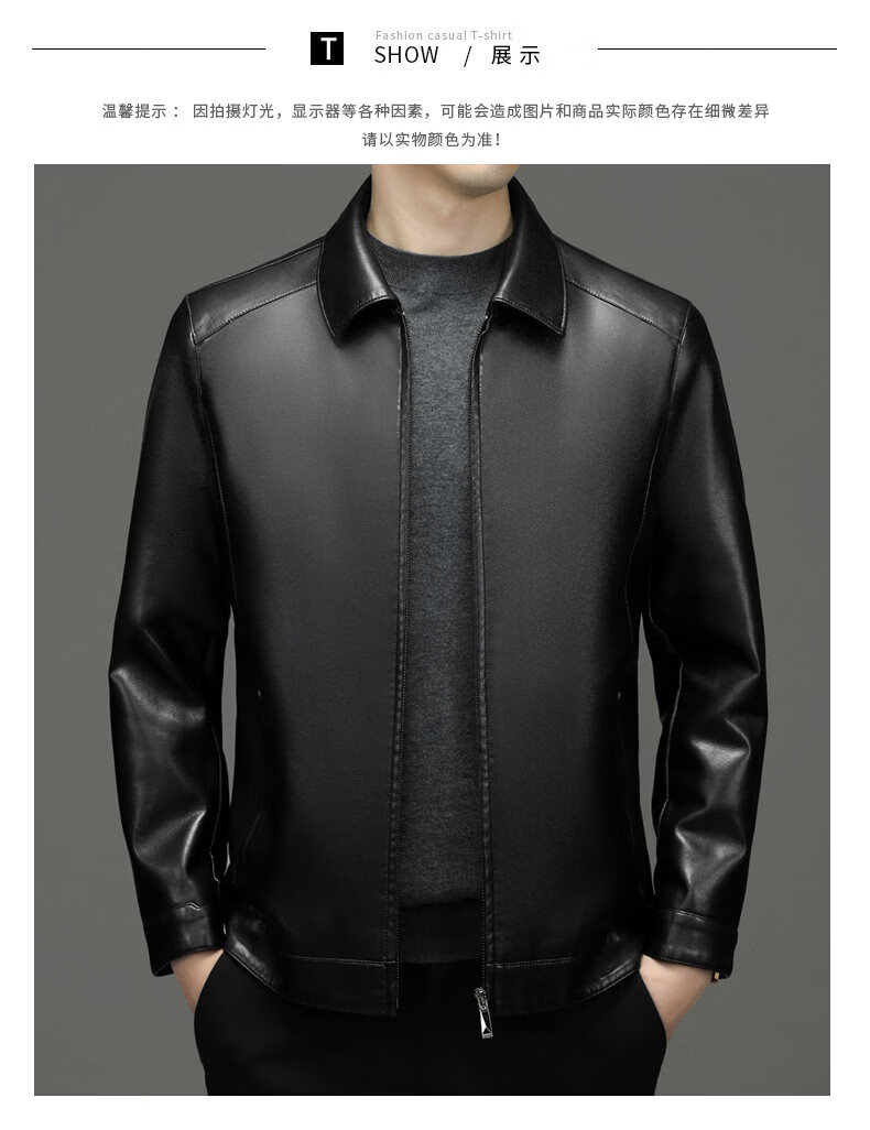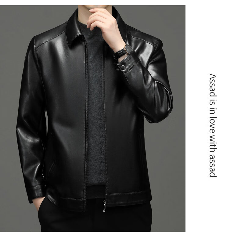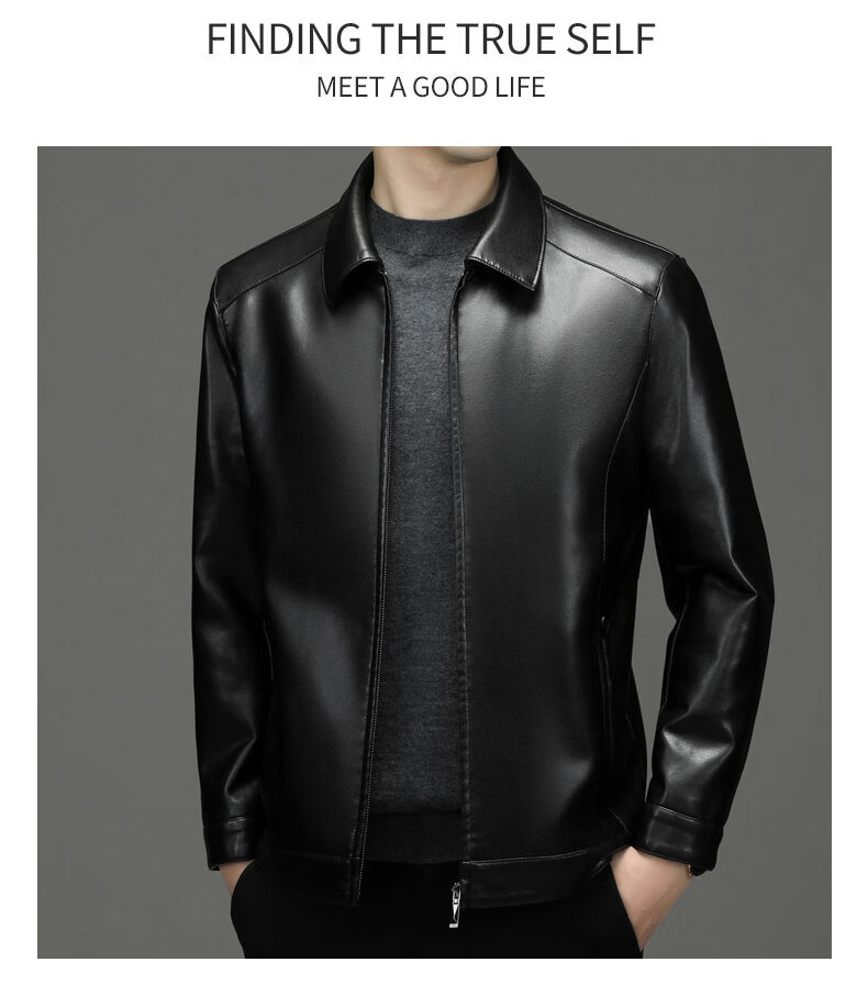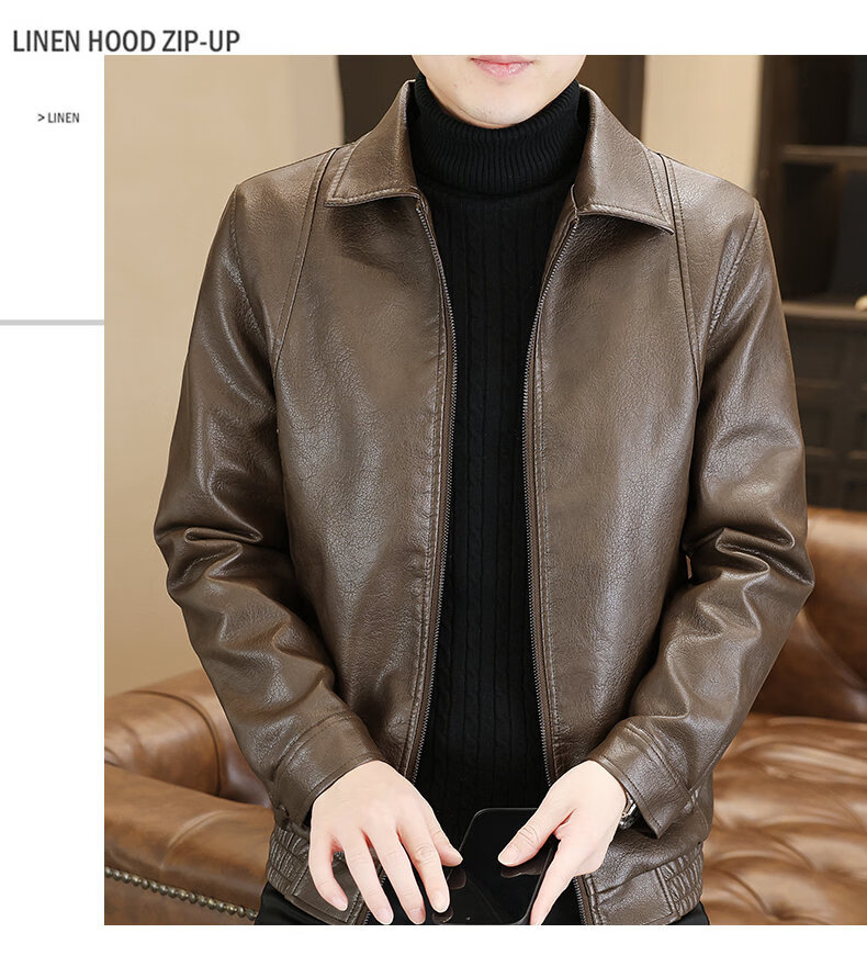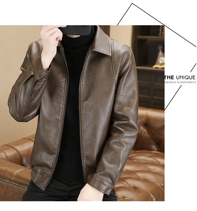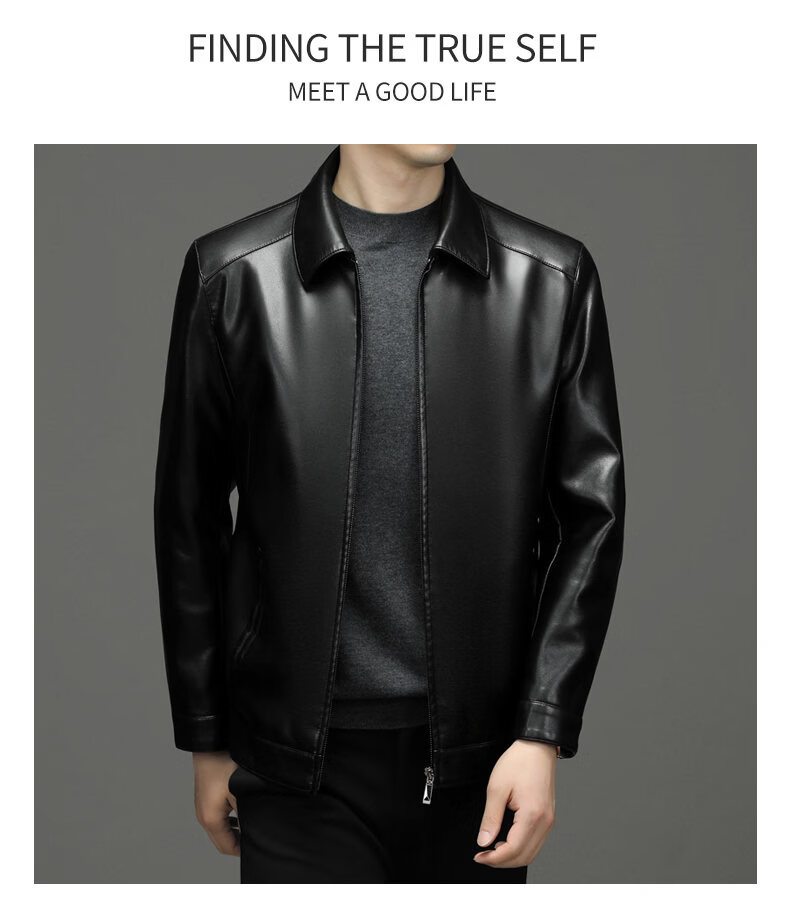 ROMON leather jacket men's 2026 new spring and autumn trendy brand handsome motorcycle jacket men's velvet thickened leather jacket top black thickened style XL (180)