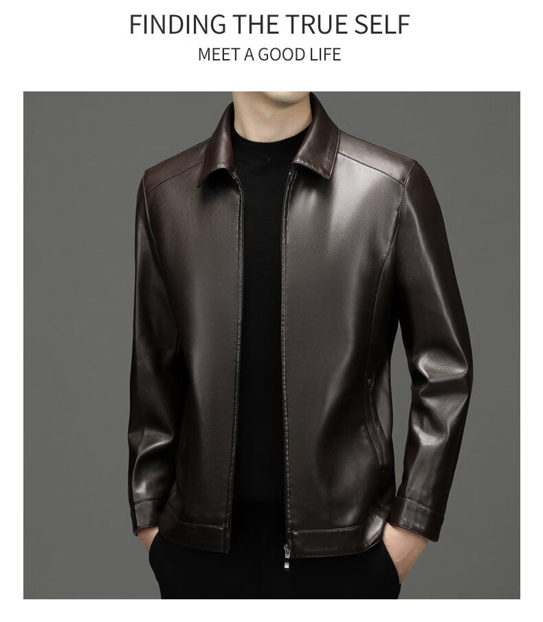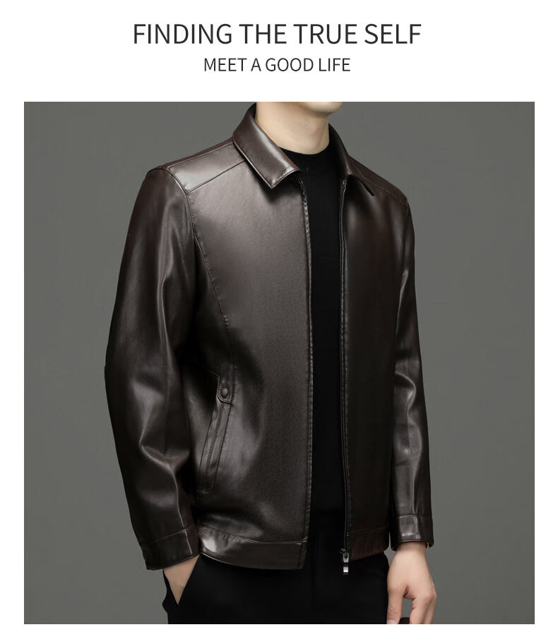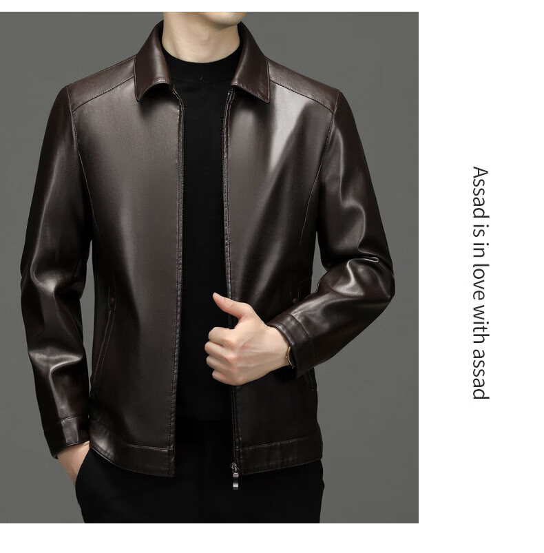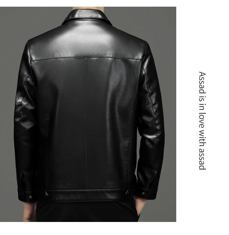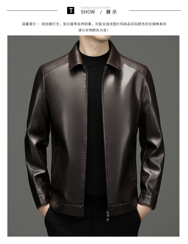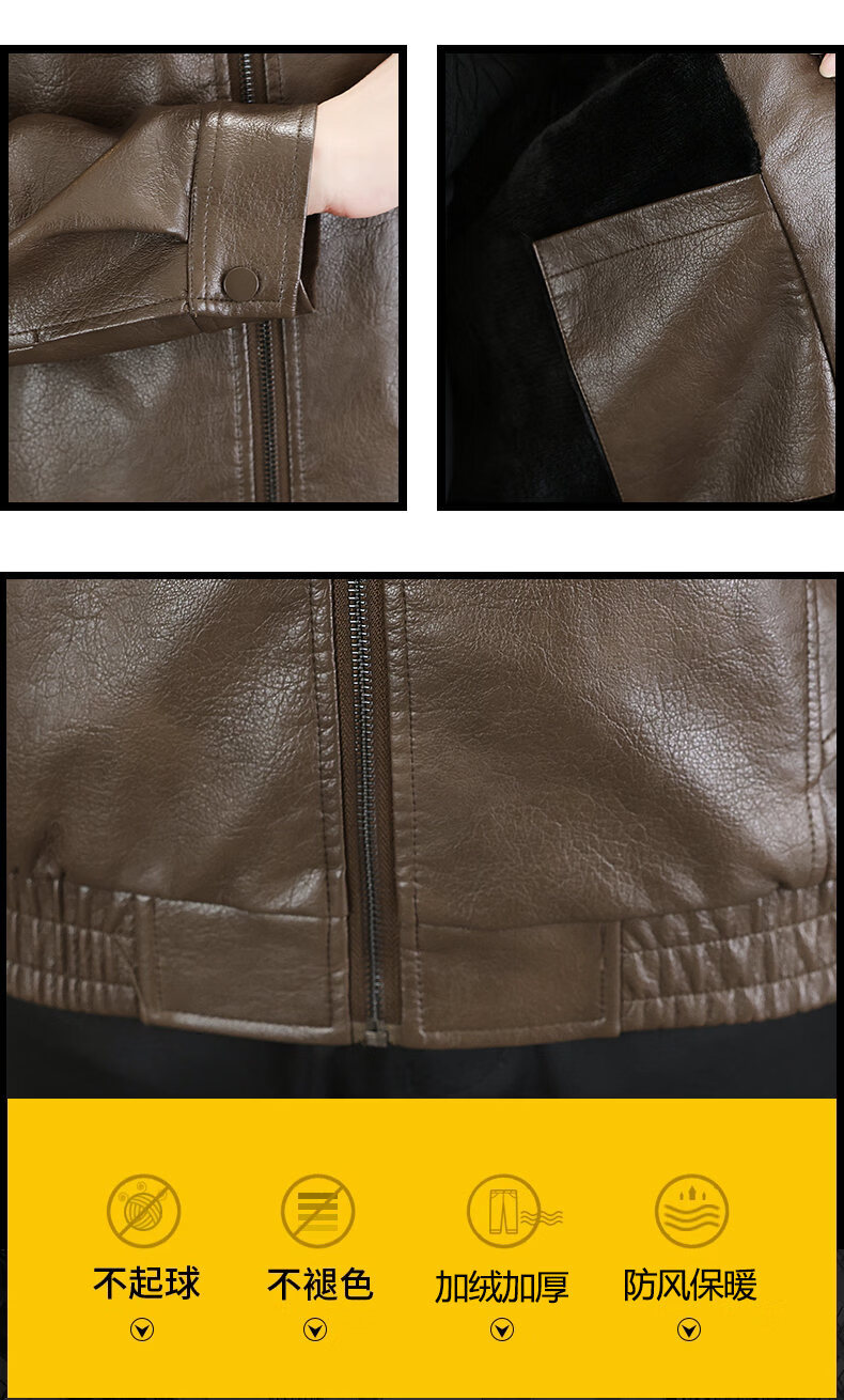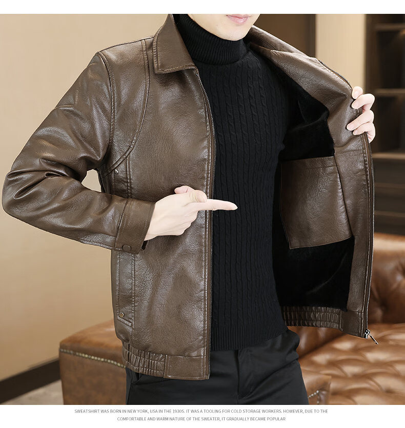 ROMON leather jacket men's 2026 new spring and autumn trendy brand handsome motorcycle jacket men's velvet thickened leather jacket top black thickened style XL (180)