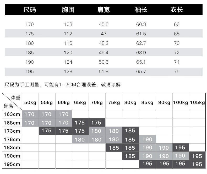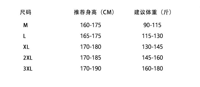China (cm) 165 / 88-90 170 / 96-98 175 / 108-110 180 / 118-122 185 / 126-130