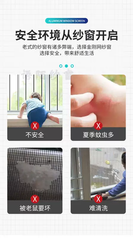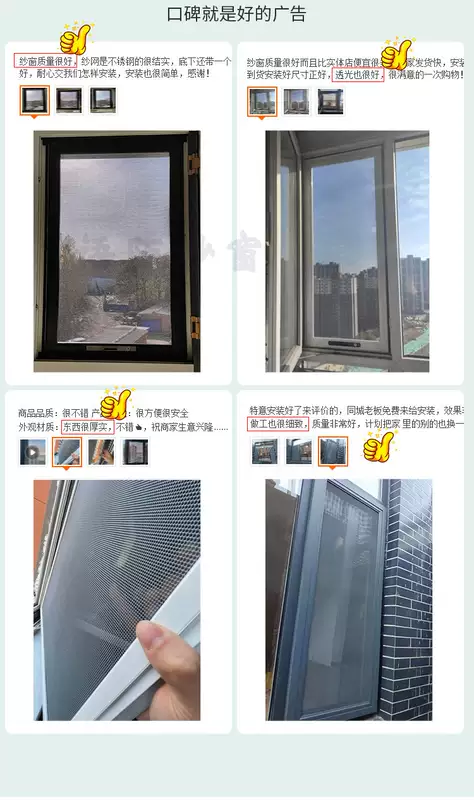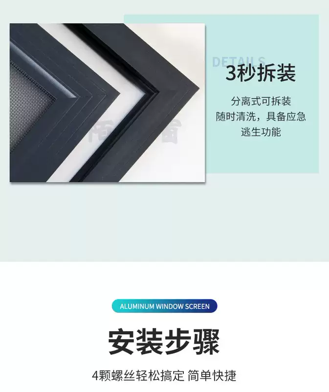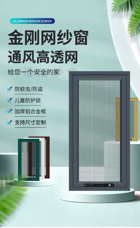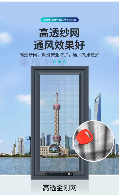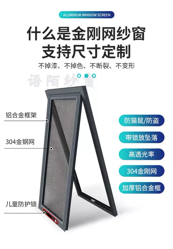 Yusenyi King Kong Mesh Screen Window Children's Protective Window Home Punch-free 304 Stainless Steel Mesh Customized Anti-mosquito Aluminum Alloy Window Gray Economical Aluminum Corner Code-High Transparency Mesh