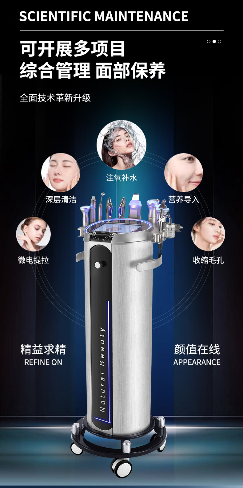 Silver Brown Skin Management Comprehensive Instrument Small Bubble Beauty Instrument Facial Cleansing Blackhead Absorbing Beauty Salon Special Instrument Upgraded Silver Brown + Skin Detection Metal Handle