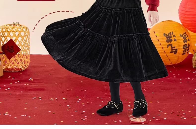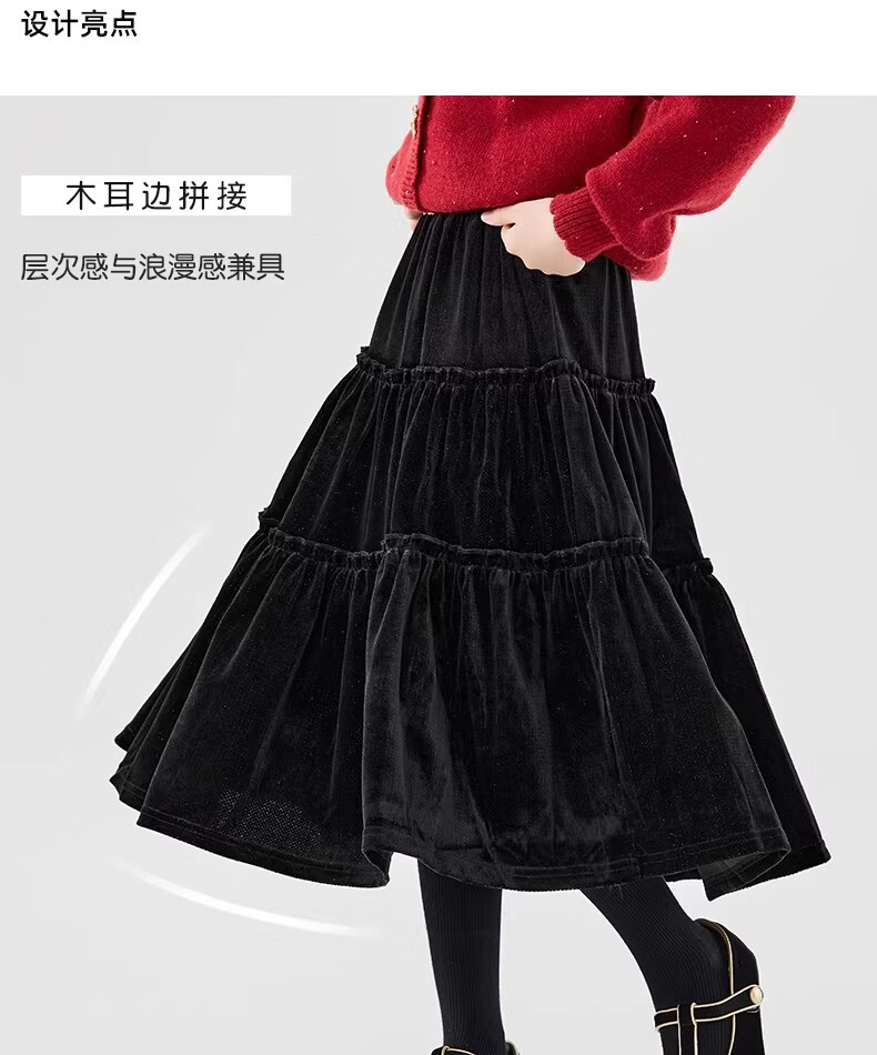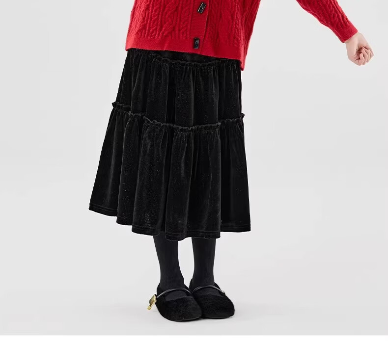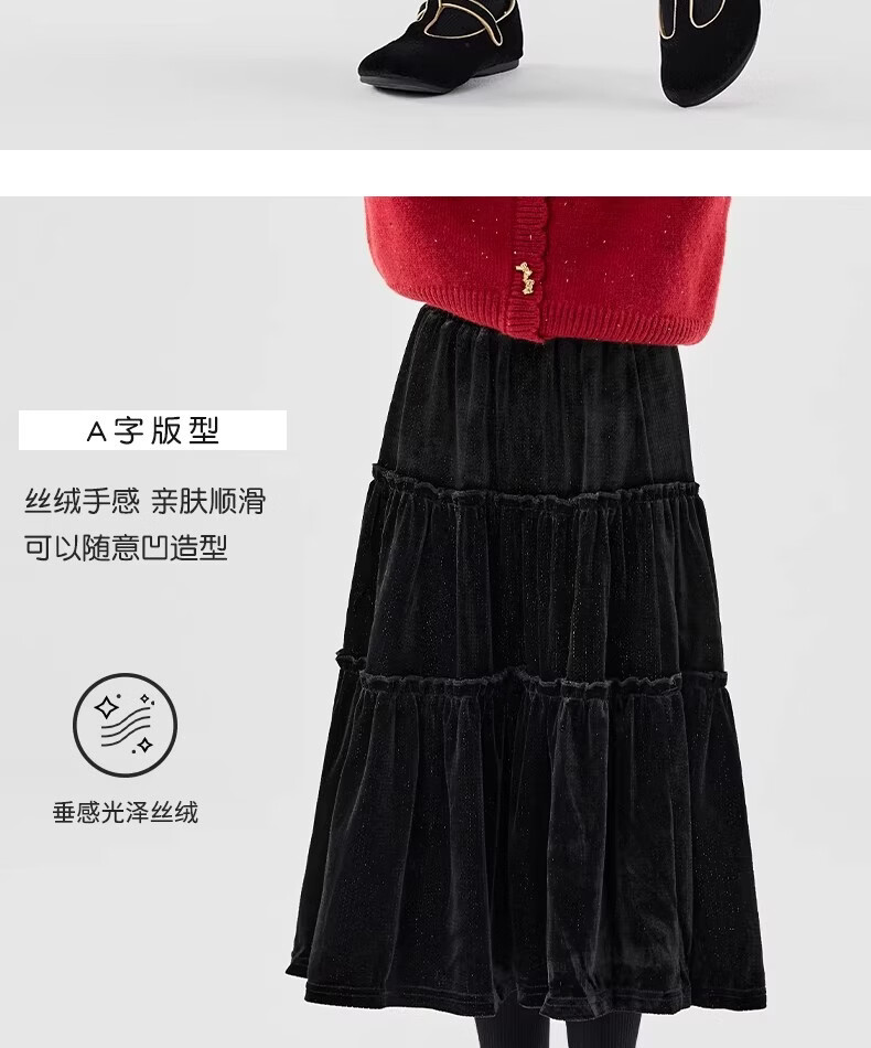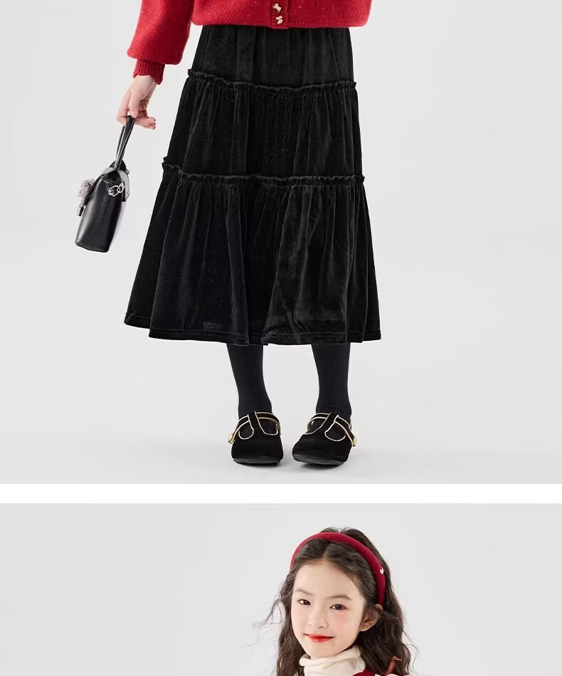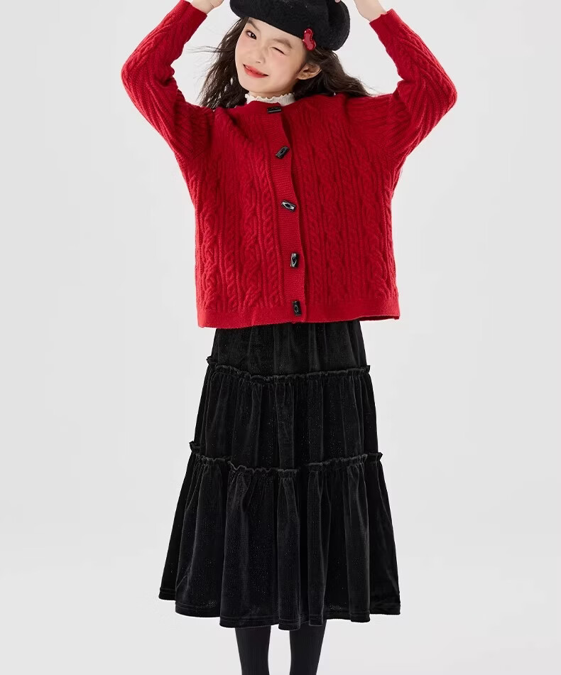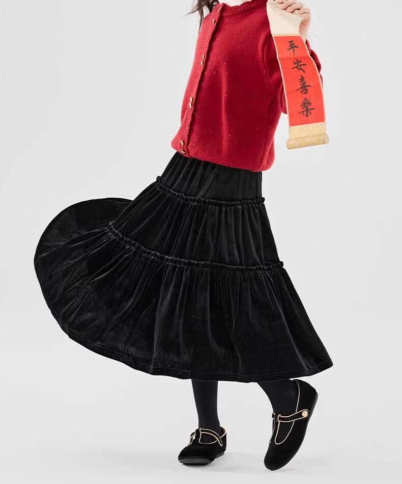 Moonkids girls skirt winter 2025 new children's huge good-looking velvet cake skirt big children winter long black 19906 red sweater 170 cm