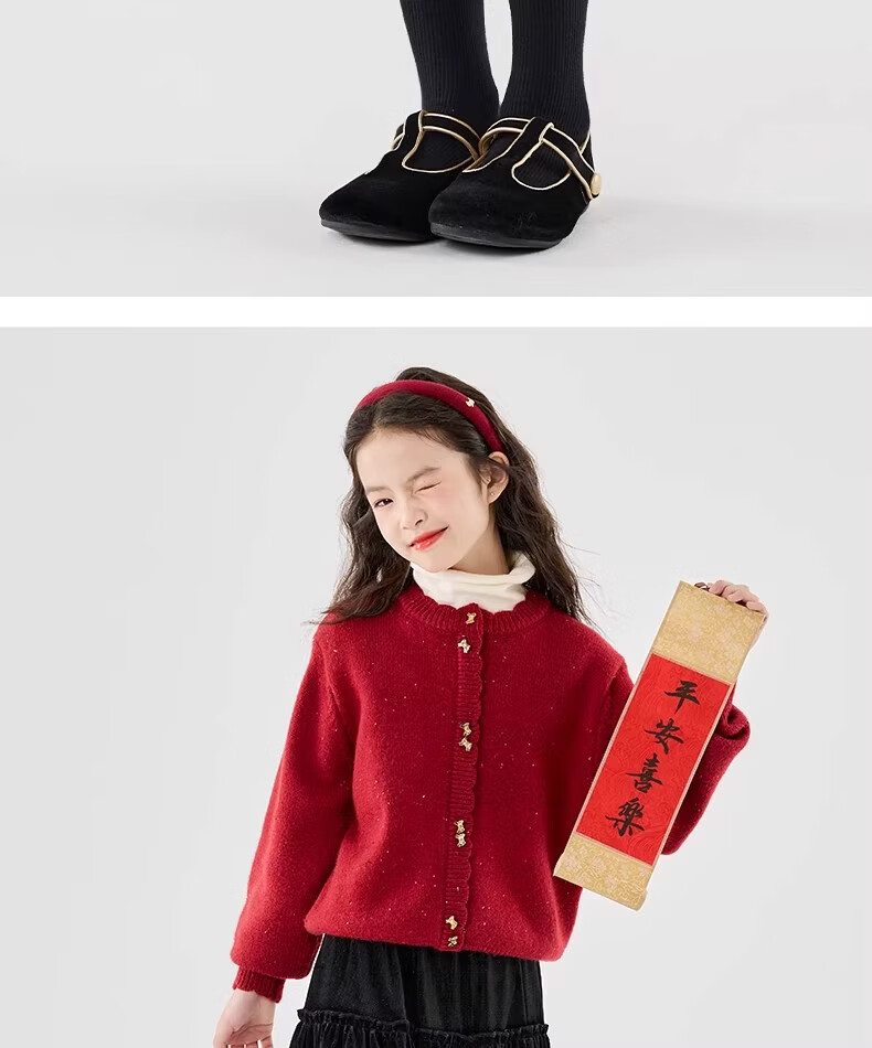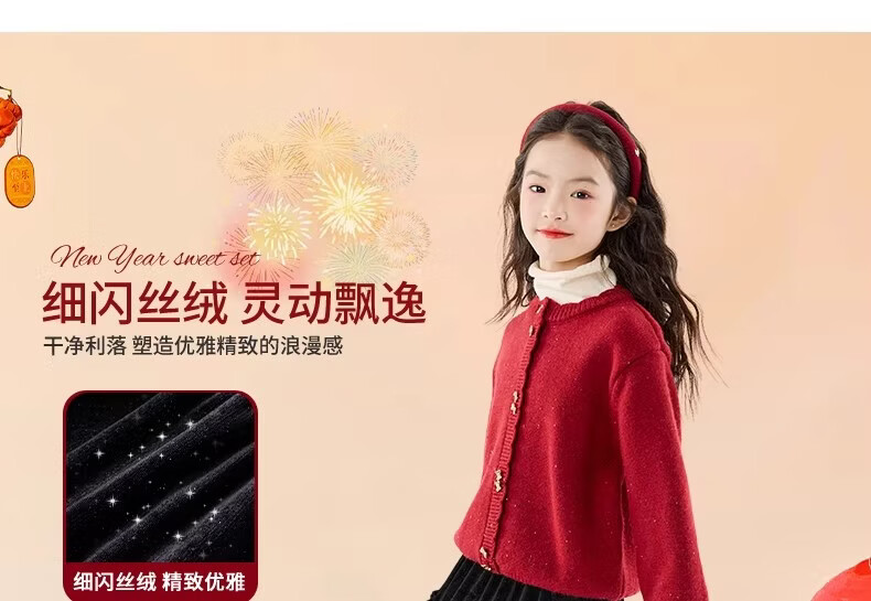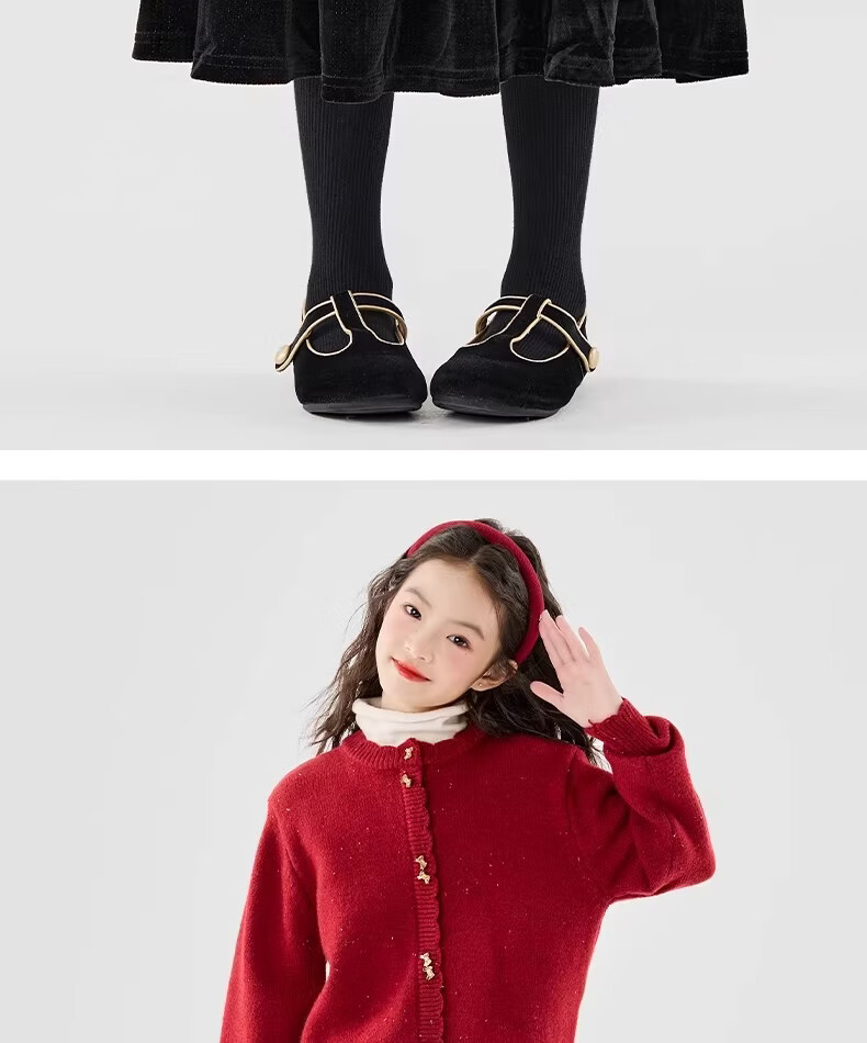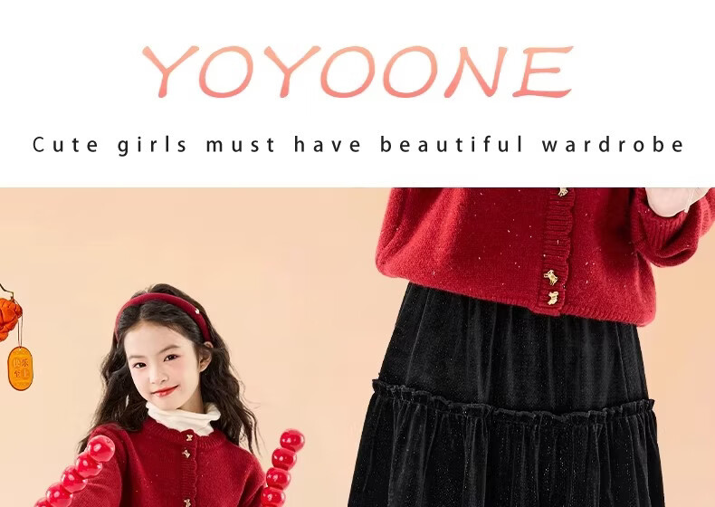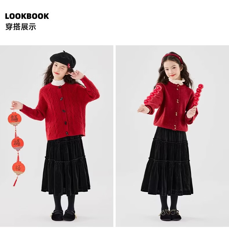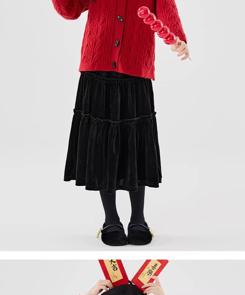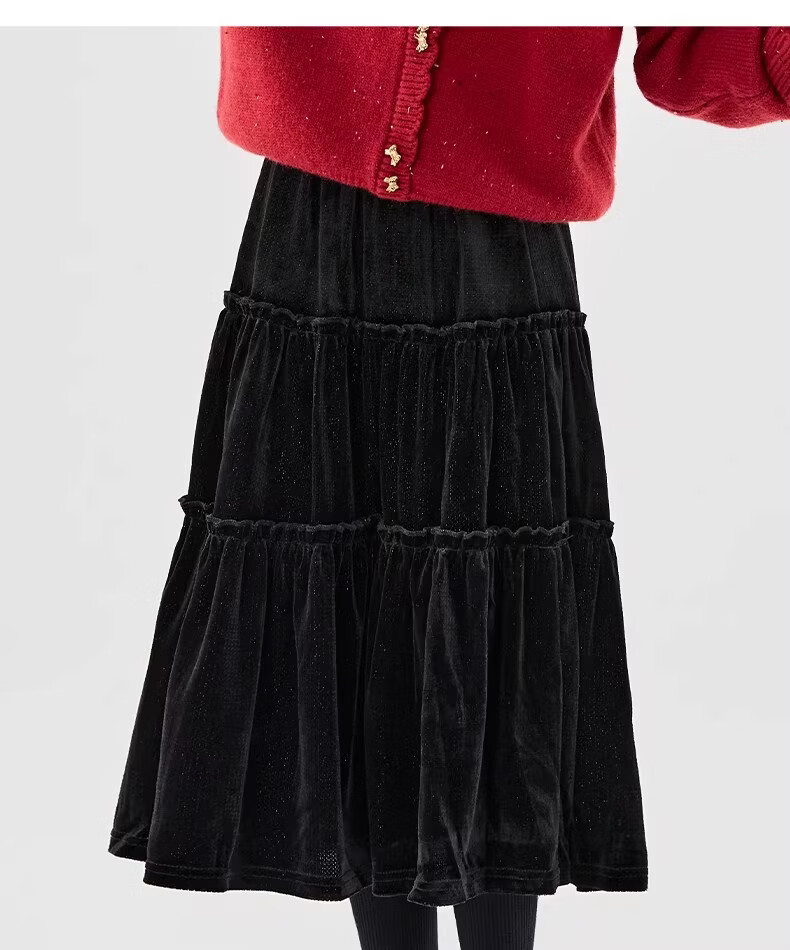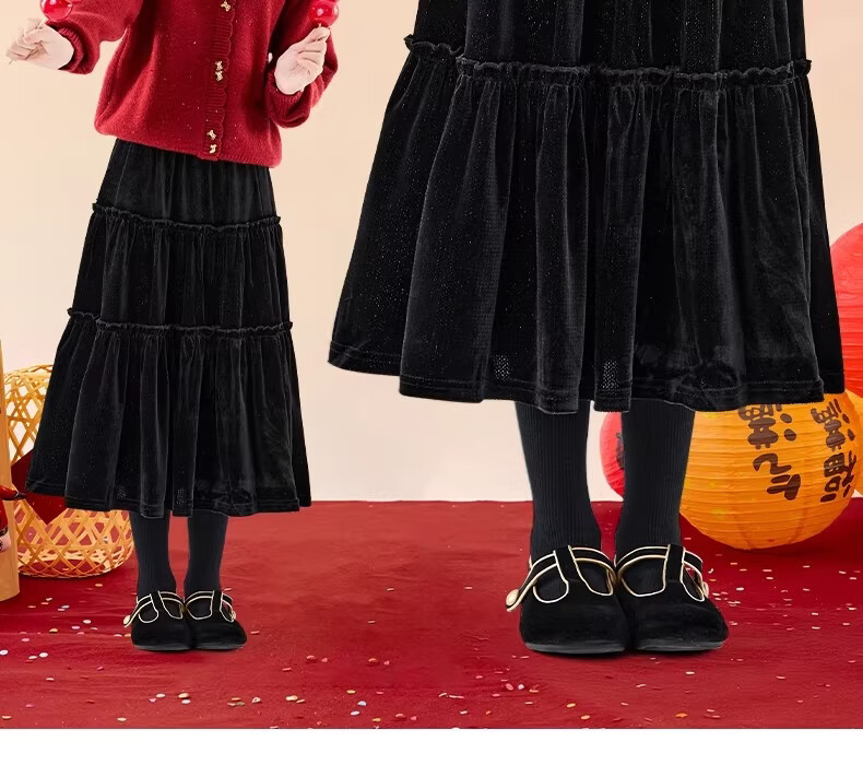 Moonkids girls skirt winter 2025 new children's huge good-looking velvet cake skirt big children winter long black 19906 red sweater 170 cm