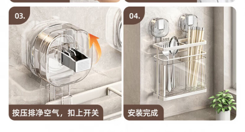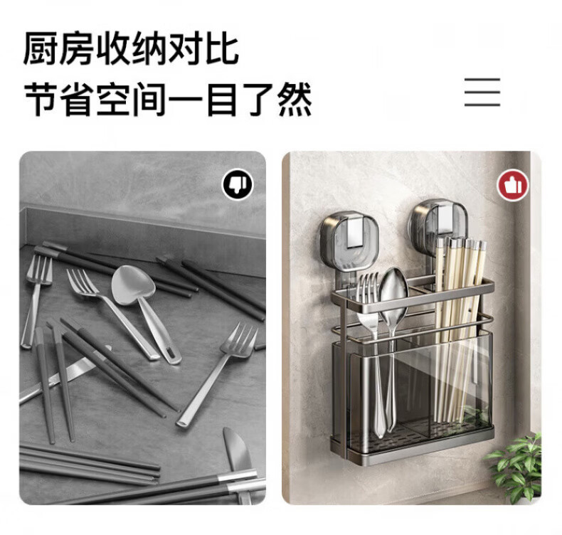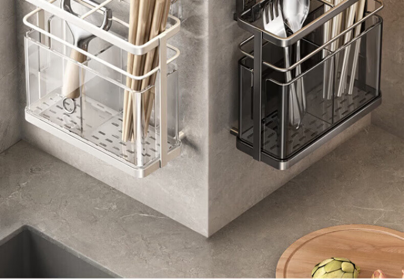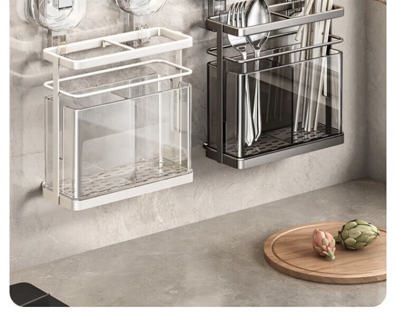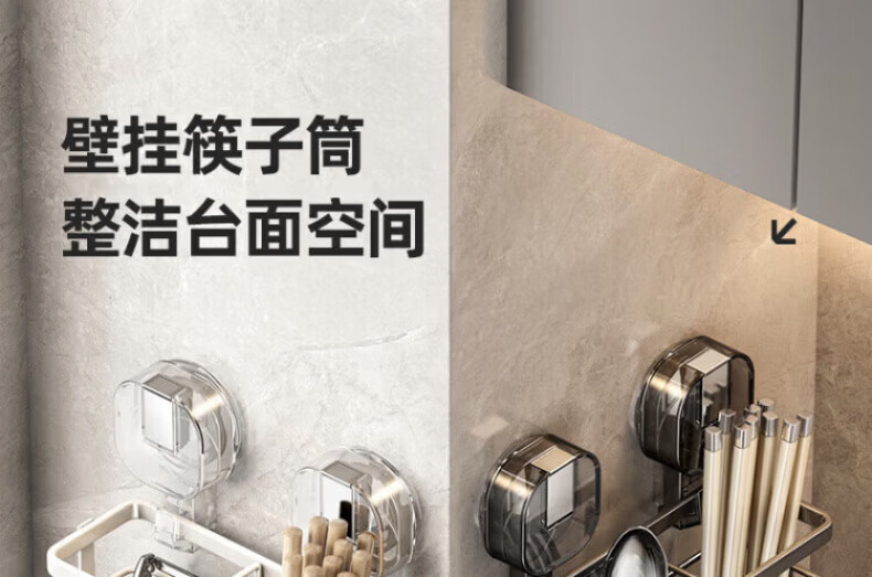 KDISV German suction cup chopstick barrel high-end wall-mounted kitchen shelf household punch-free chopstick storage box drain chopsticks high permeability gray suction cup double barrel chopsticks change positions at will drain function | simple style