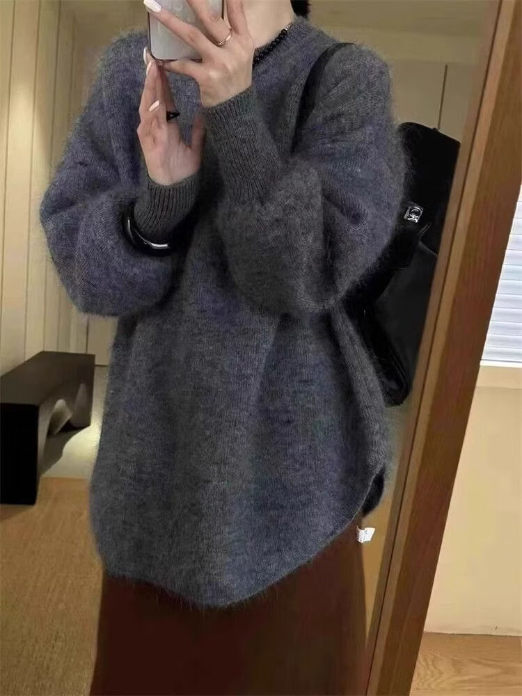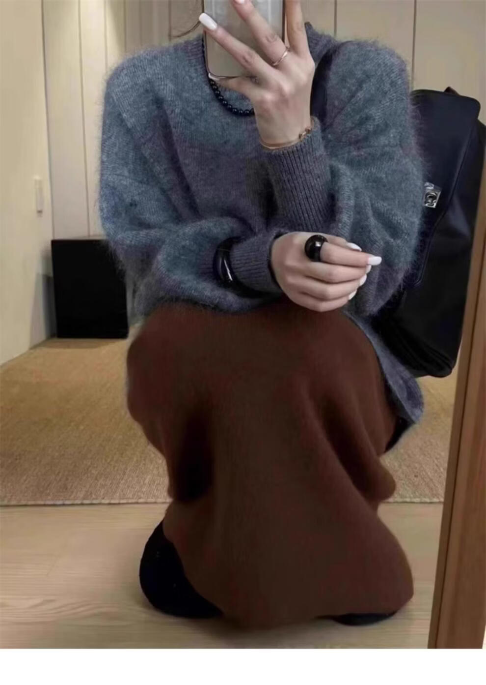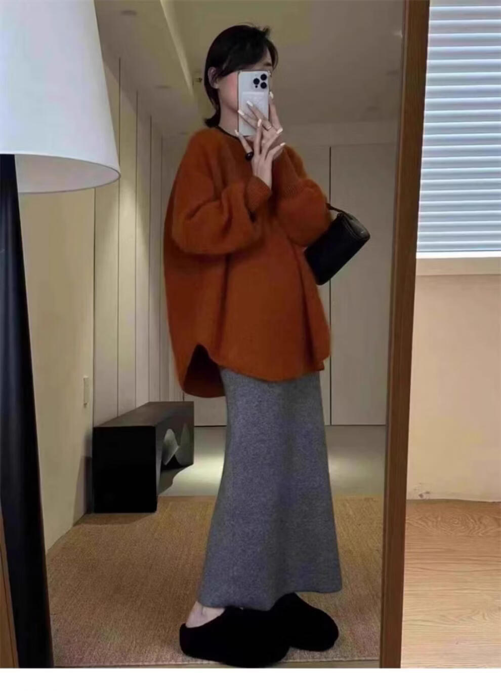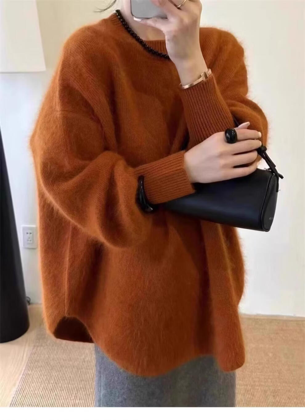 Xia Dian Suding Queen (SE.PSTP) pumpkin orange lazy style raccoon velvet mid-length sweater for women autumn and winter new loose-feeling pullover sweater orange M recommended 95-110 Jin Jin equals 0.5 kg