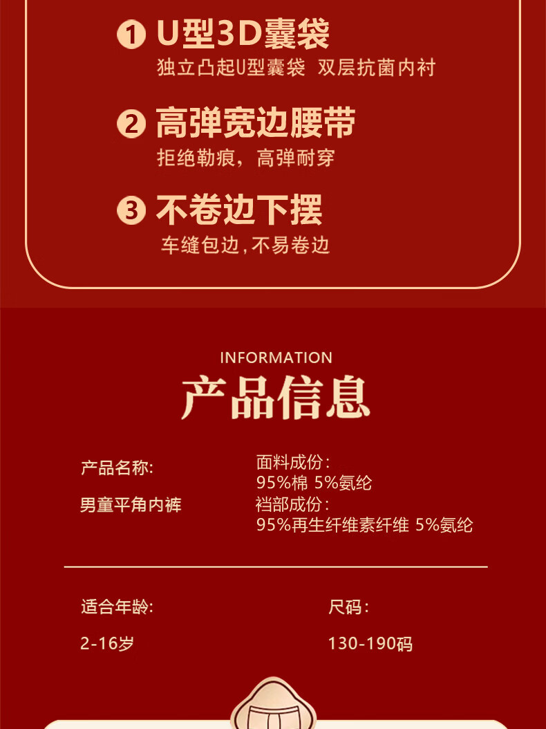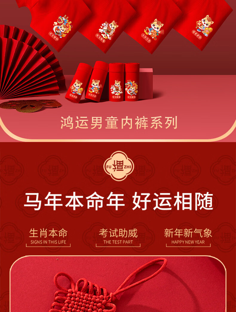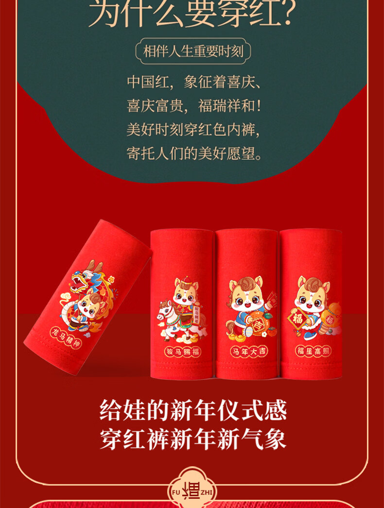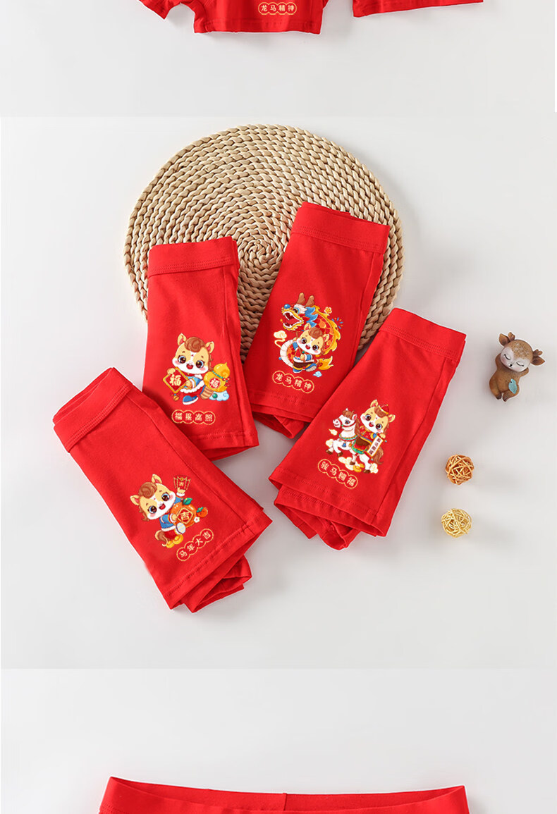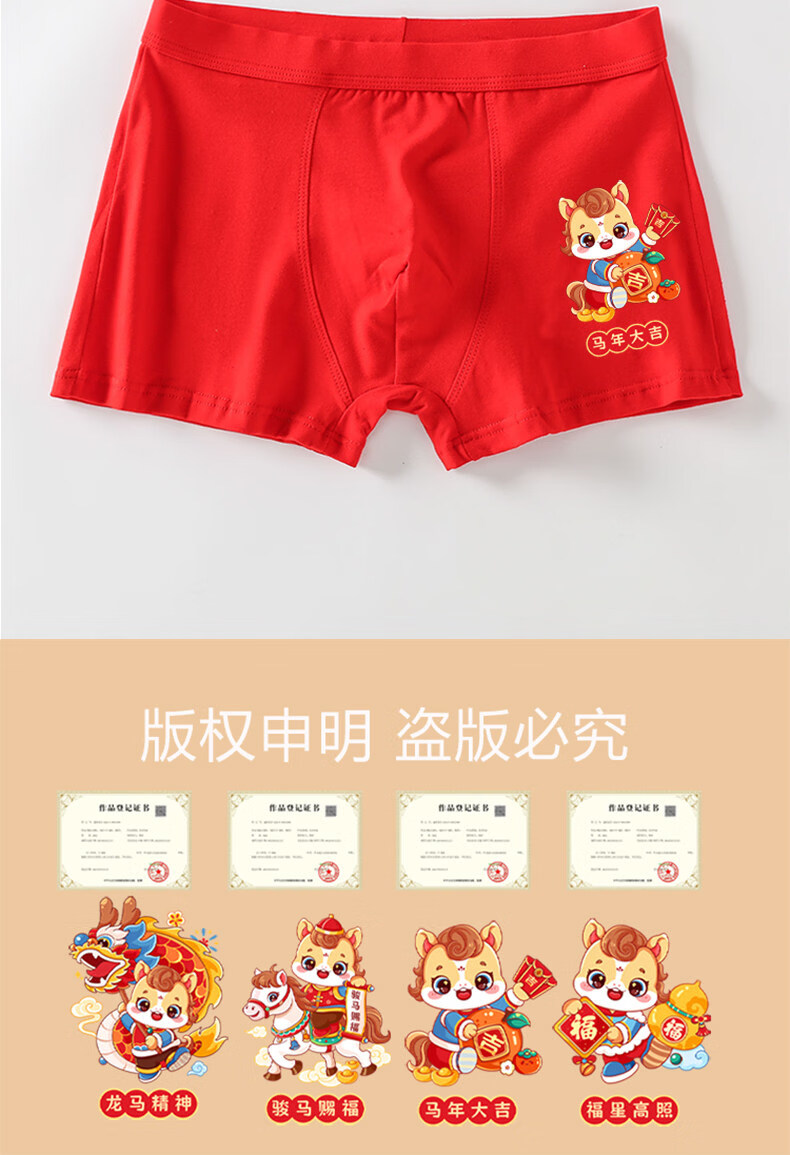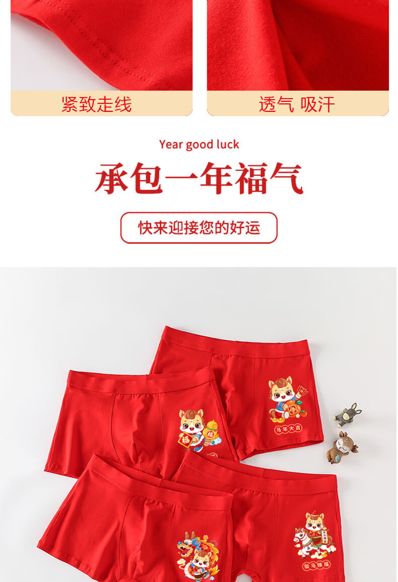 Cat Man (MiiOW) children's red underwear boys' zodiac horse 13 red socks teenagers 12 years old boxer briefs for big boys boys / 2 / strips horse blessing + lucky star high photo + 2 pairs of socks 140 suitable for 40-50 Jin Jin is equal to 0.5 kg