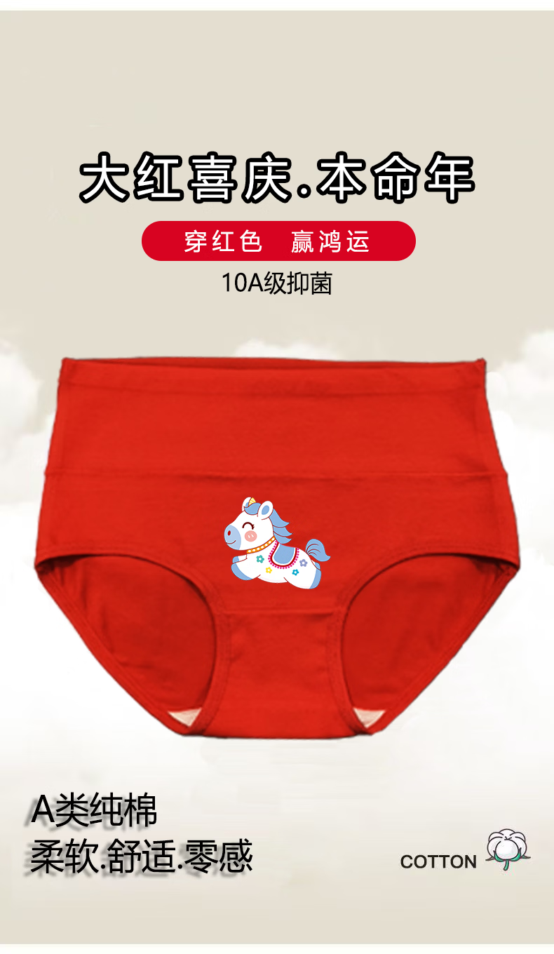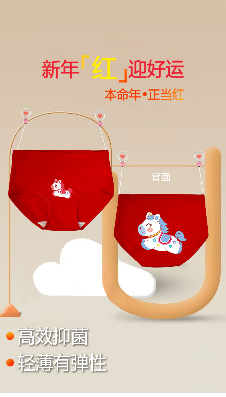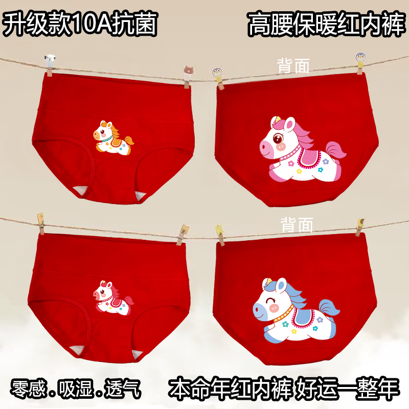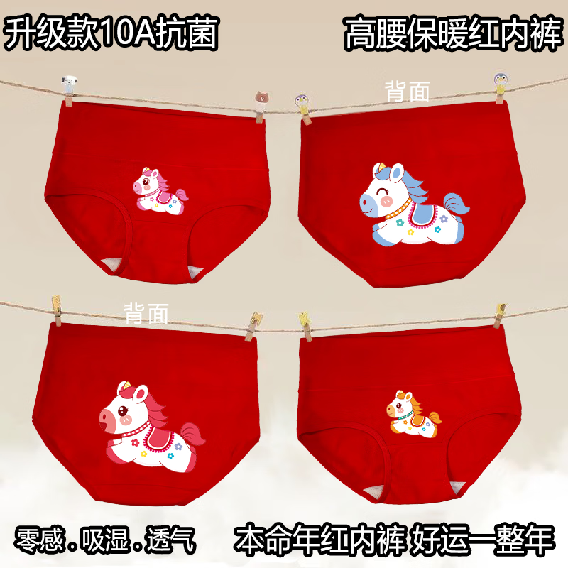 Cat Man (MiiOW) 2026 zodiac year girls cotton red underwear triangle genus horse baby medium and large children triangle cotton children's shorts Category A high/waist red underwear 4/pack 004 120 cm recommended weight 26-34Jin Jin is equal to 0.5 kg