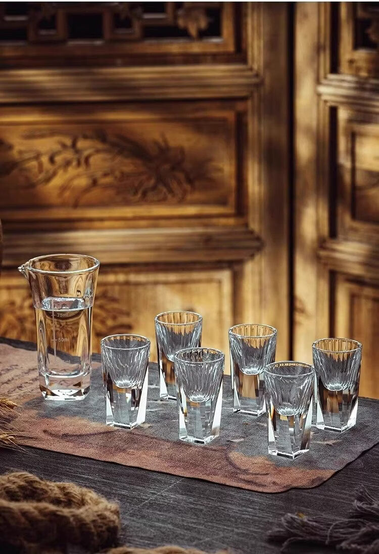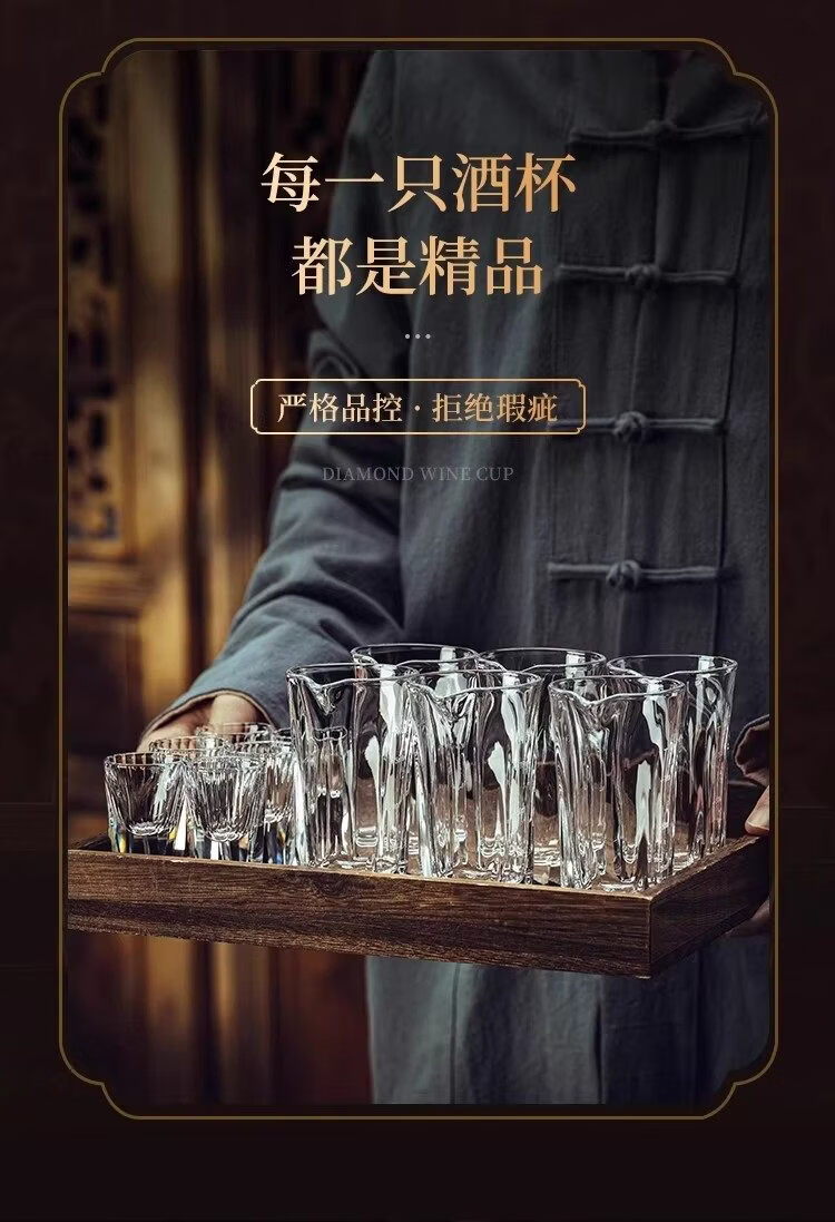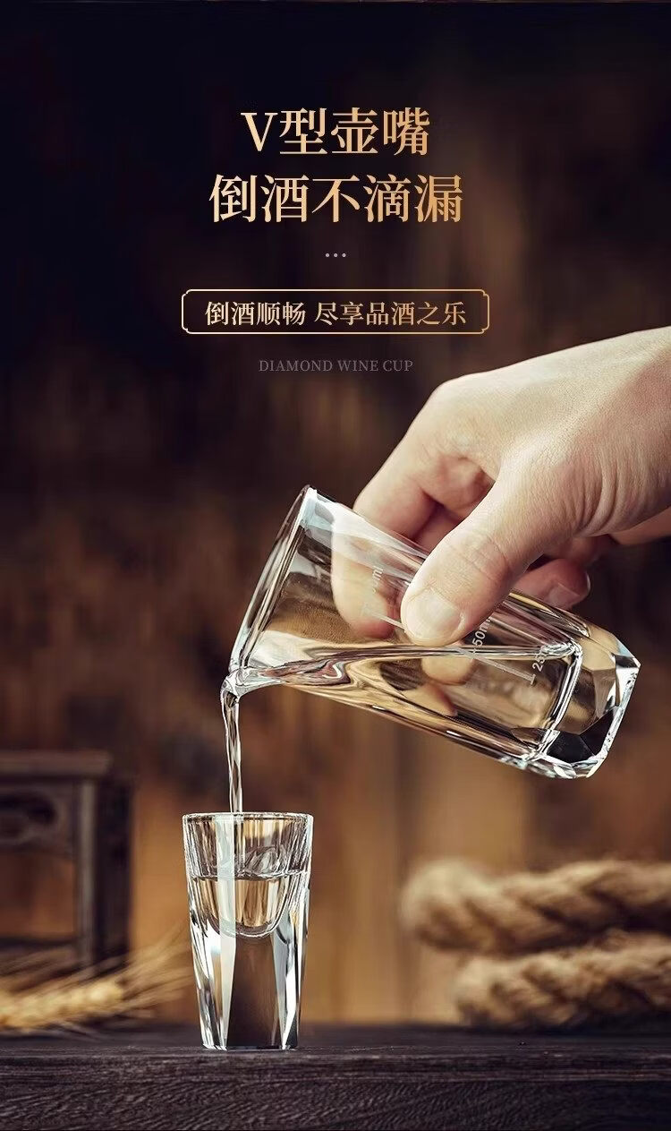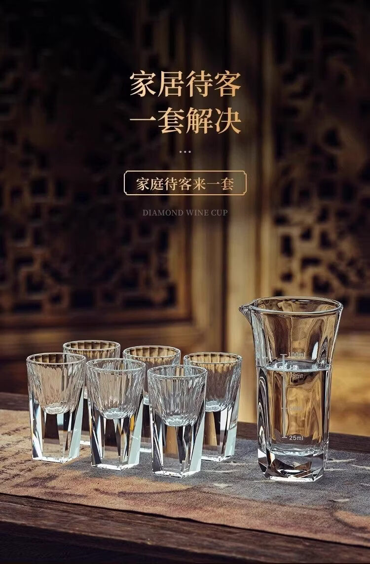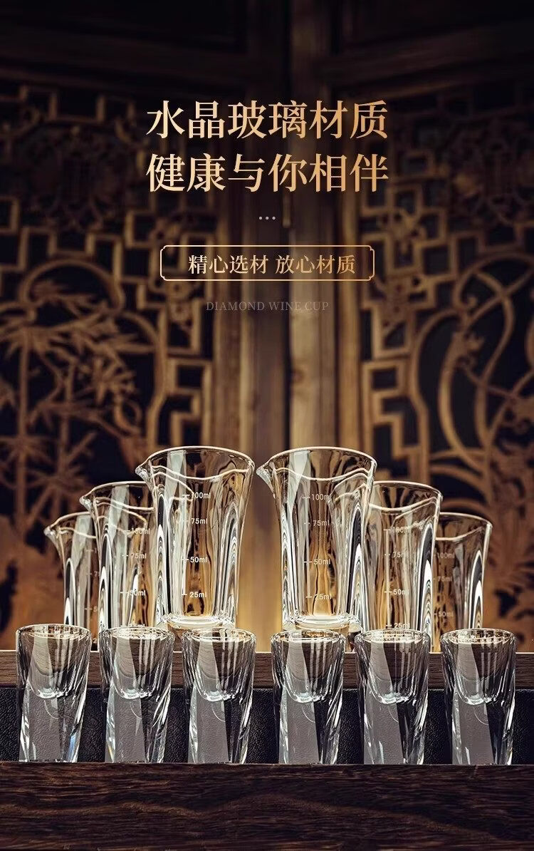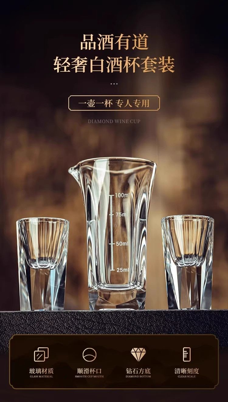 Household diamond white wine glass set light luxury small wine glass one cup wine divider wine cup high-end wine set with scale square bottom cup x 2 + square pot x 1