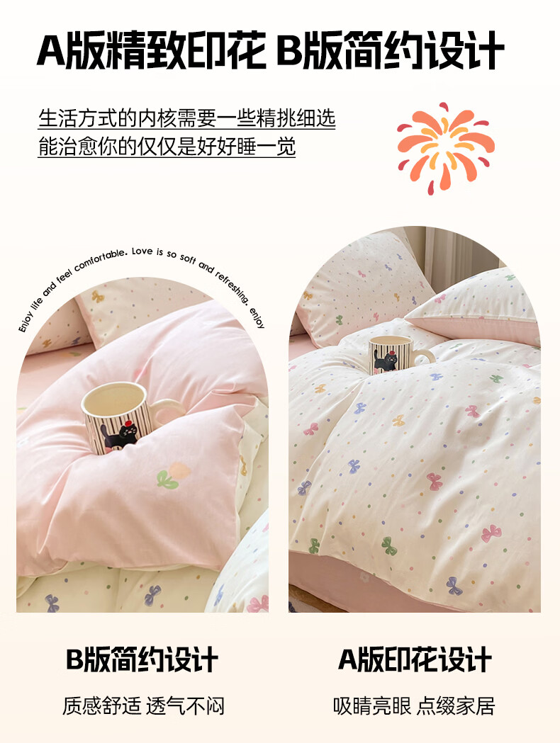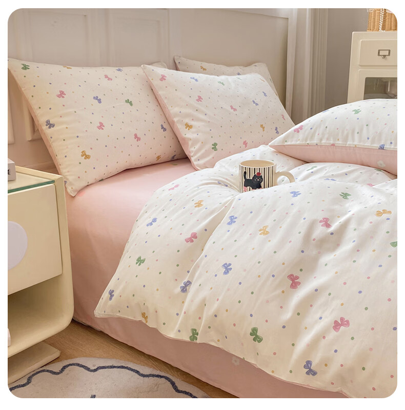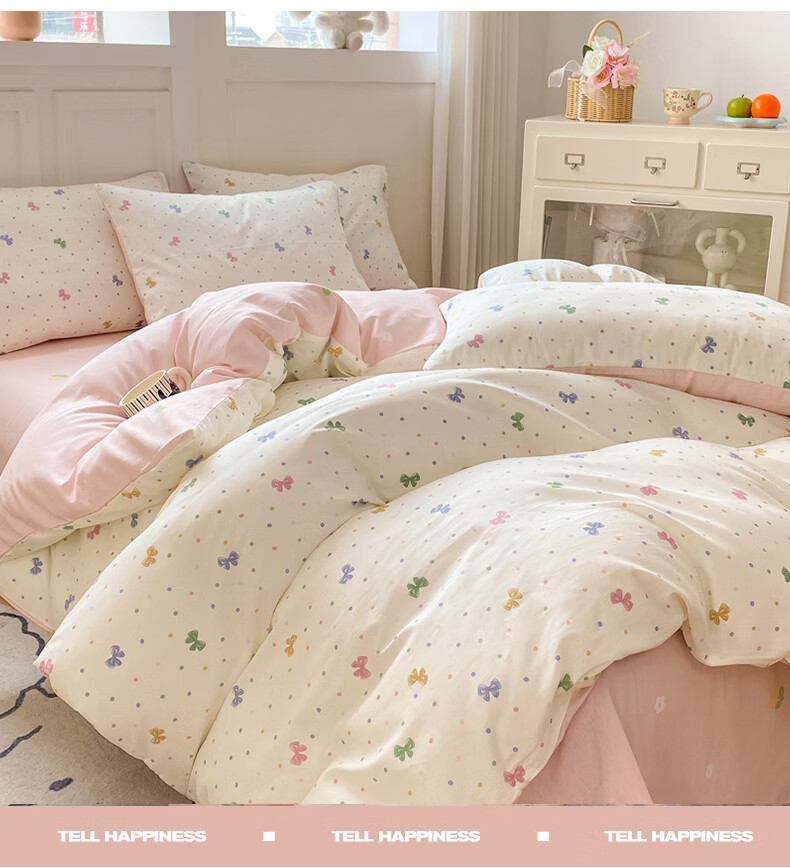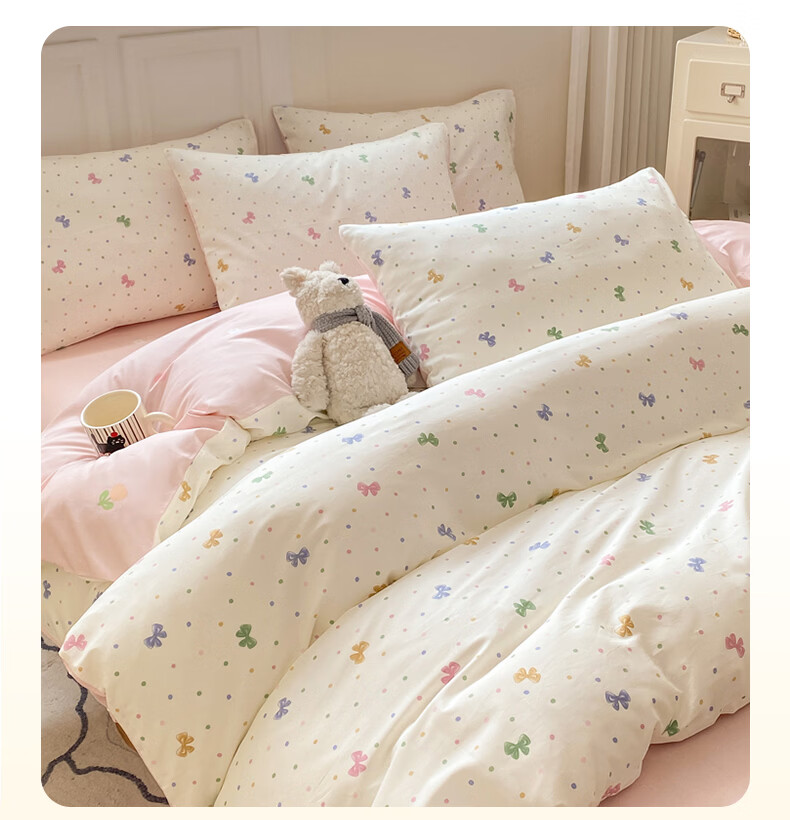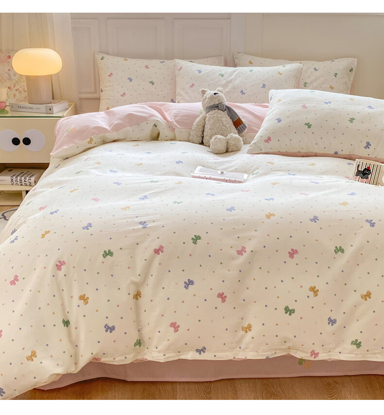 MUJI Class A cotton quilt cover 150x200cm household skin-friendly bed sheet quilt cover and fitted sheet four-piece bed set for all seasons Lianlianhuayu soft and skin-friendly comfortable and breathable 2.0m bed sheet four-piece set/quilt cover 220*240cm