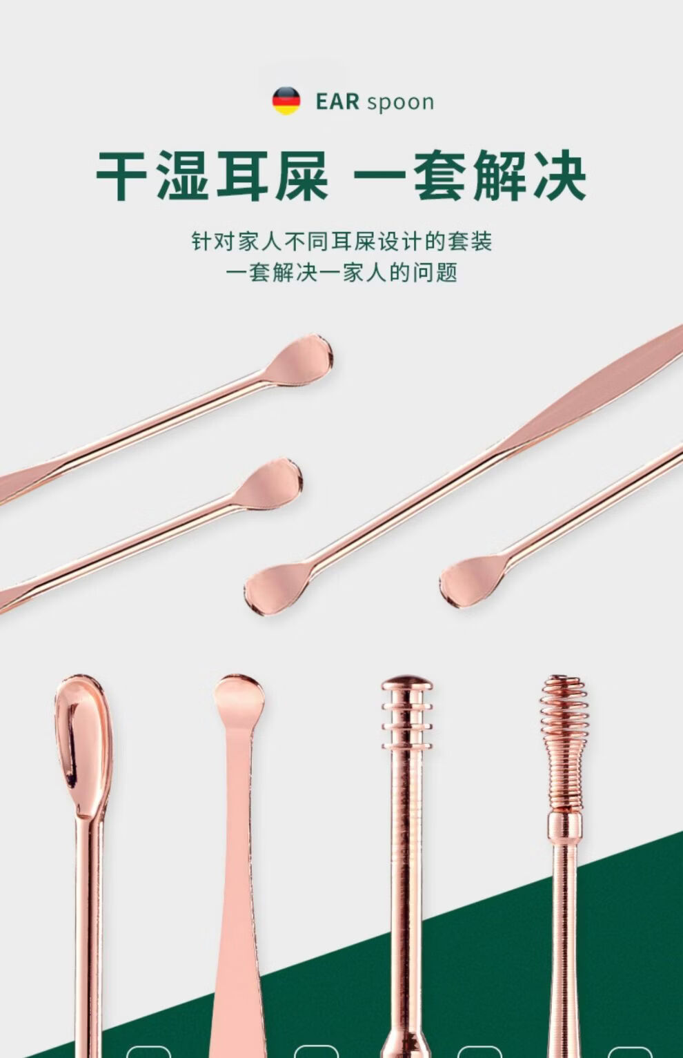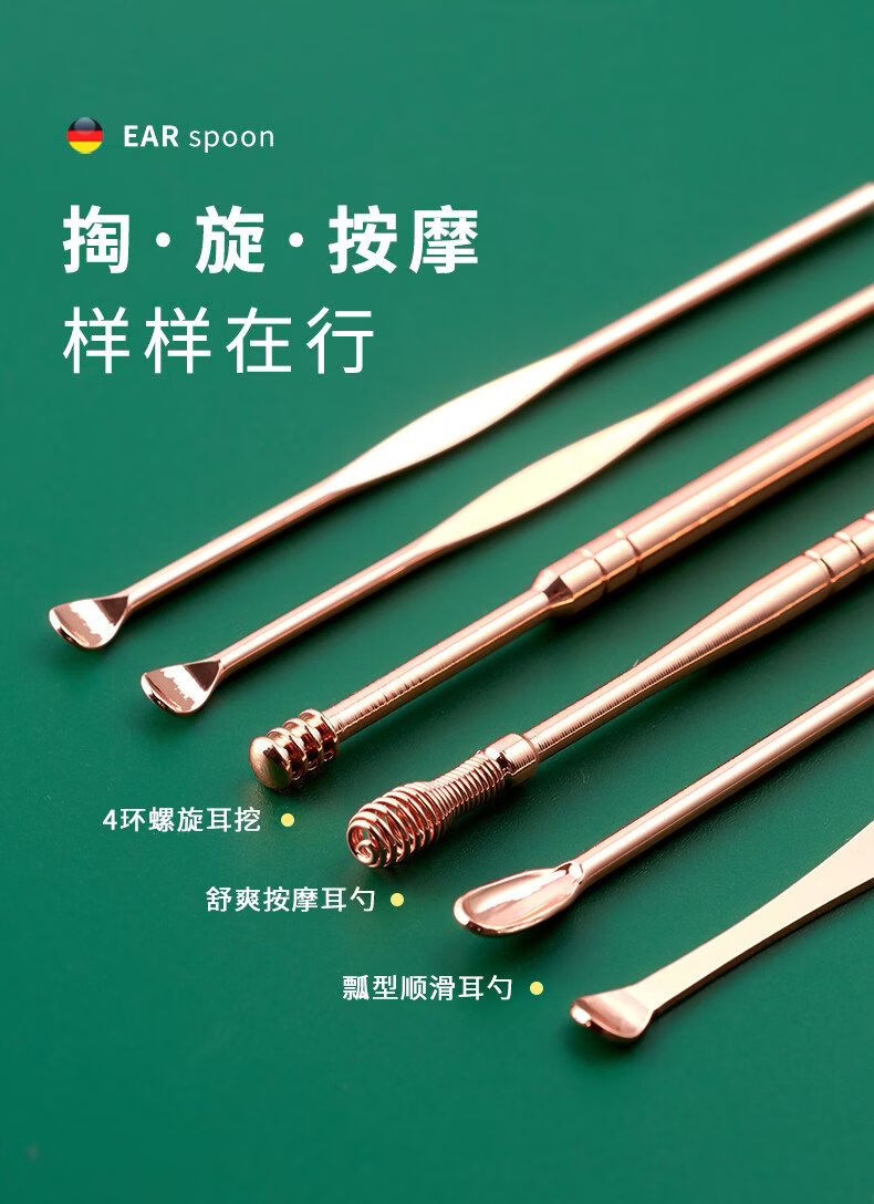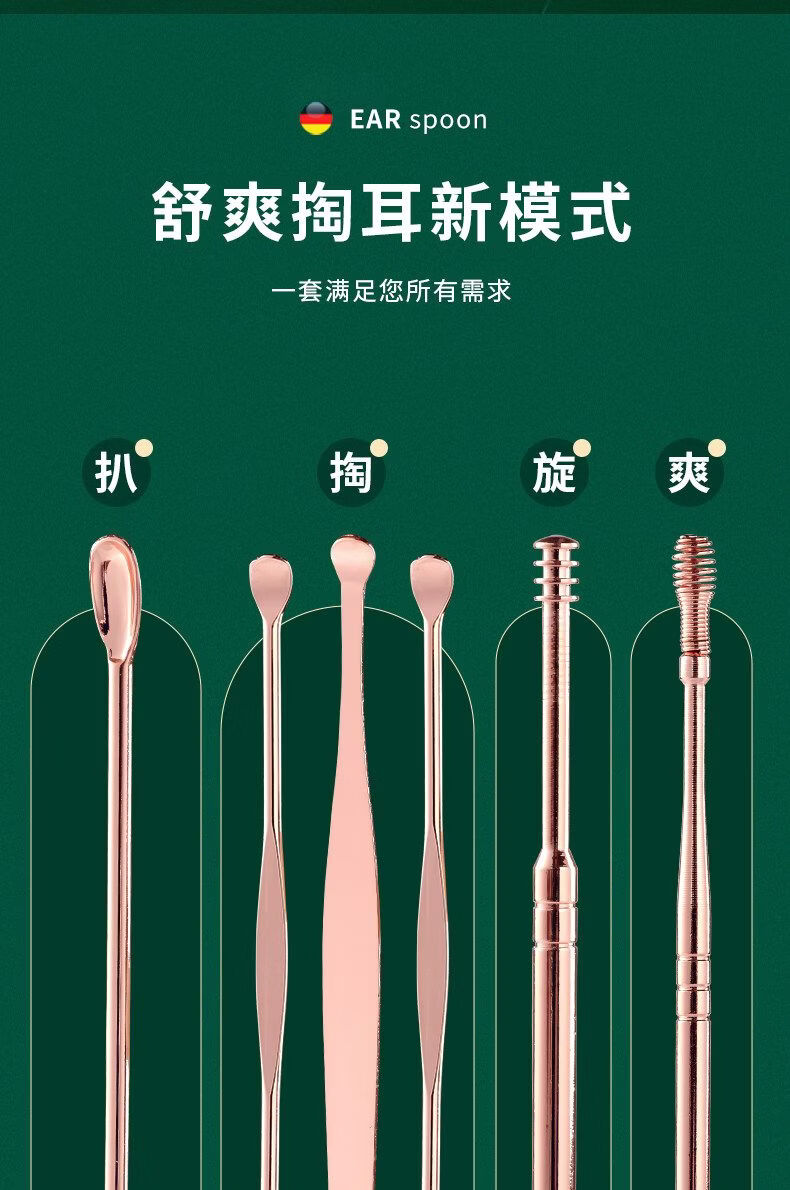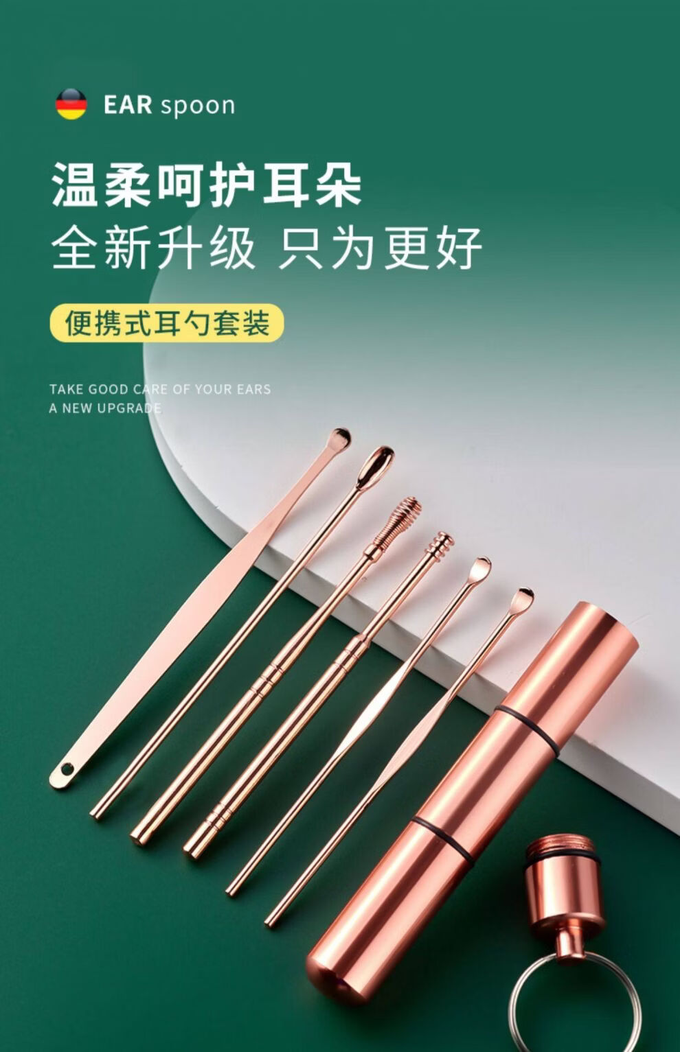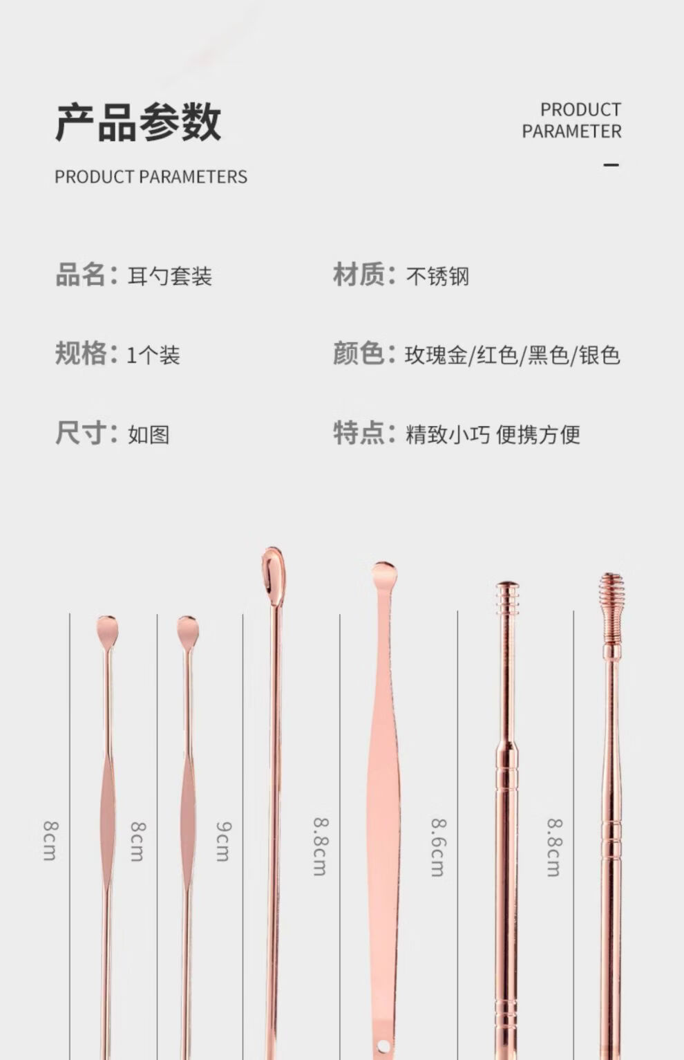 Shantou Lincun Spiral Ear Picking Spoon 6-piece Set Portable Home Children's Ear Picking Tools 6-piece Set - Tuhao Jin* Garden Bucket