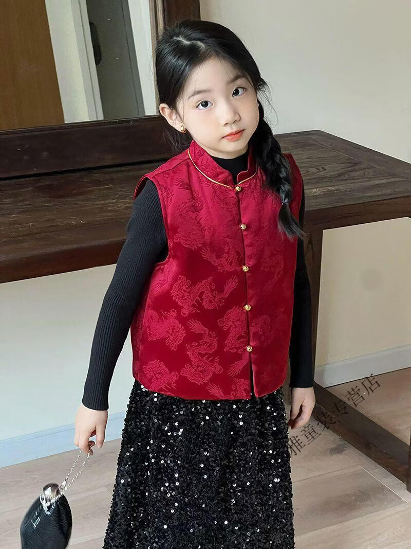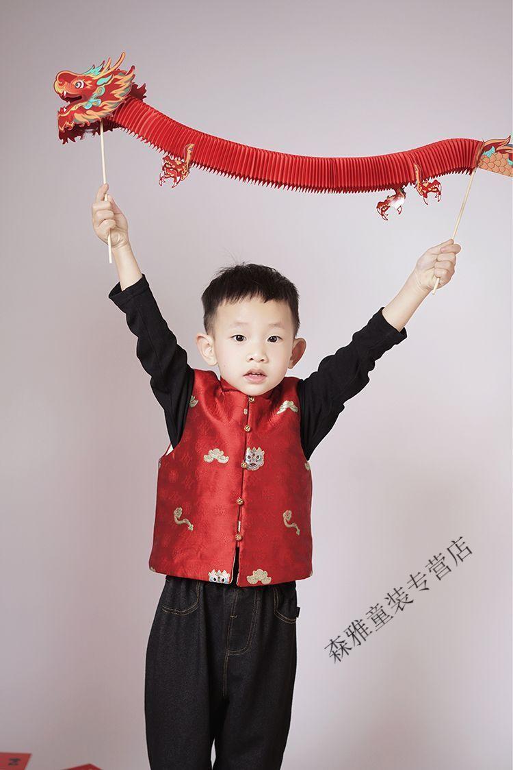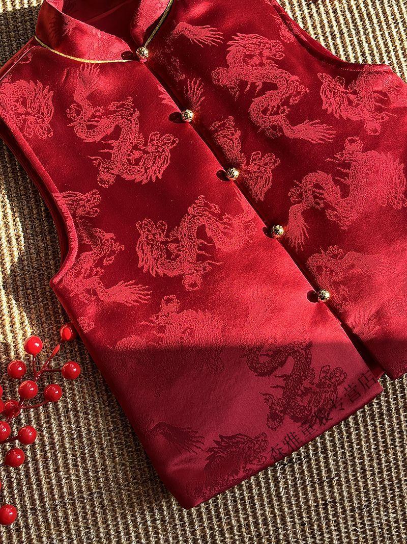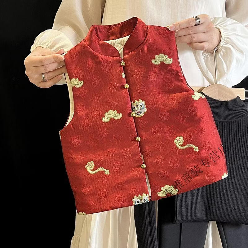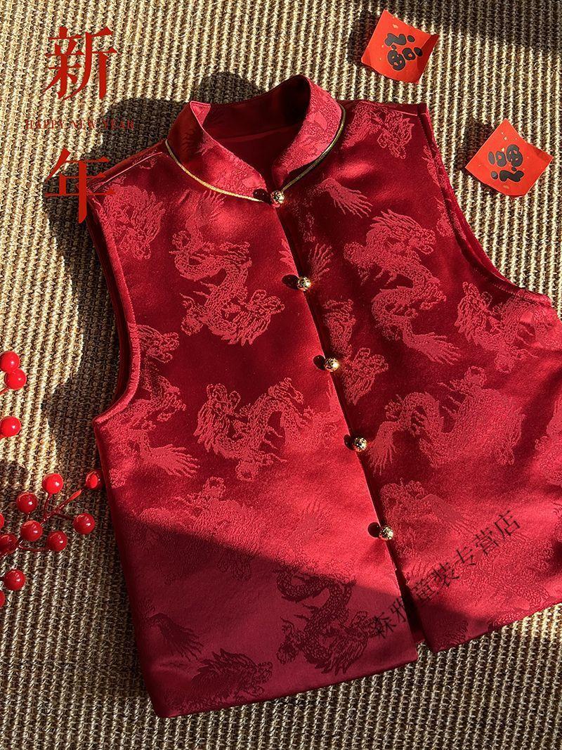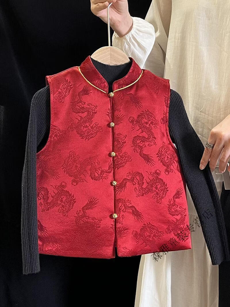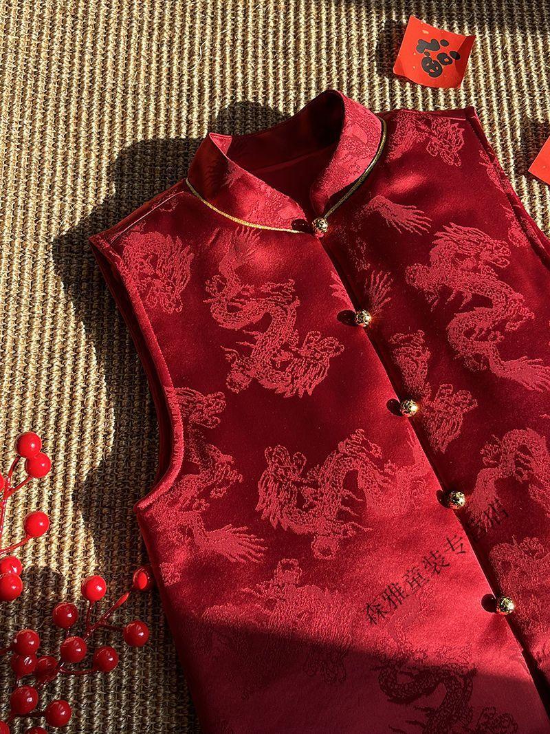 Mumuwu (mumuwu) fashionable Chinese style Tang suit New Year's greetings clothes for boys and girls new Chinese dragon pattern quilted acetate vest to keep warm in winter BMW armor quilted 42 can be approved