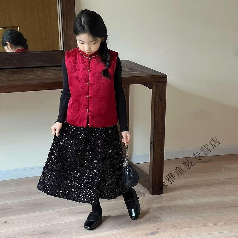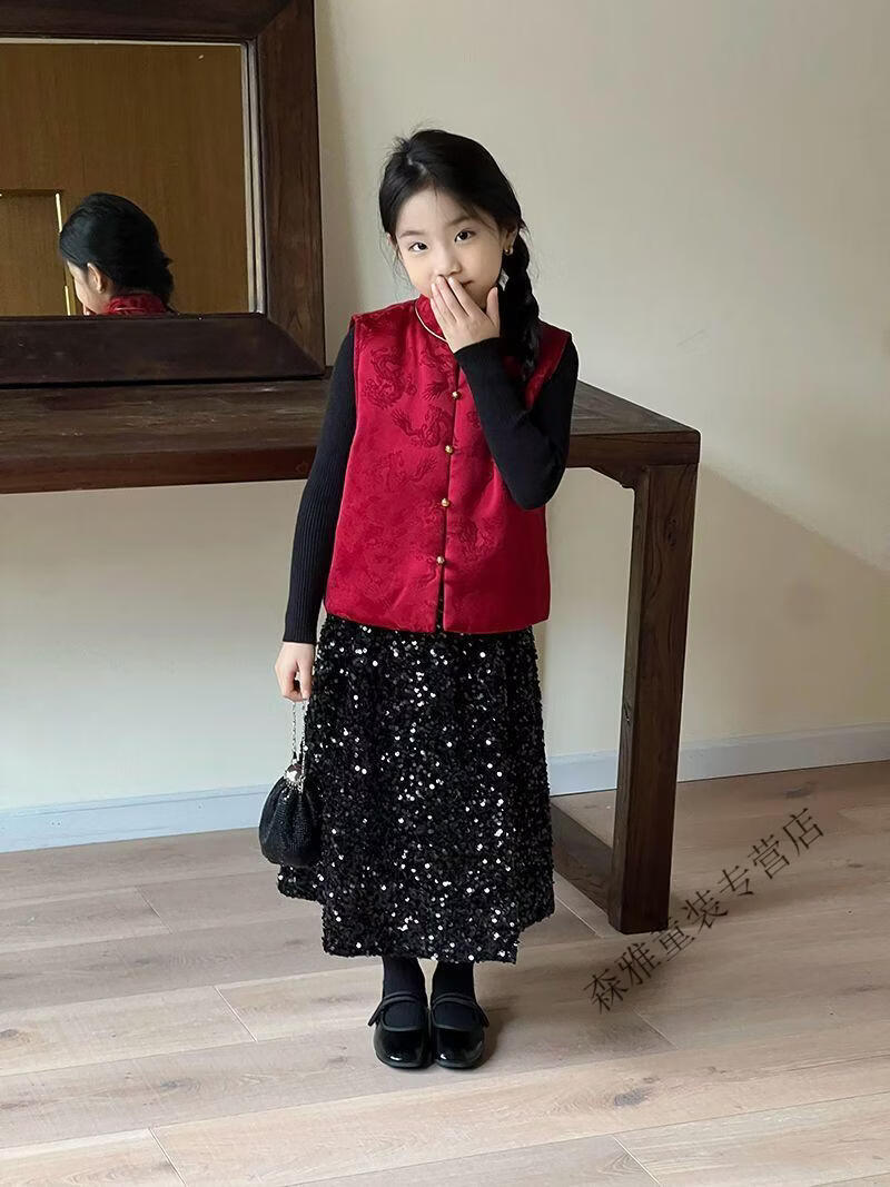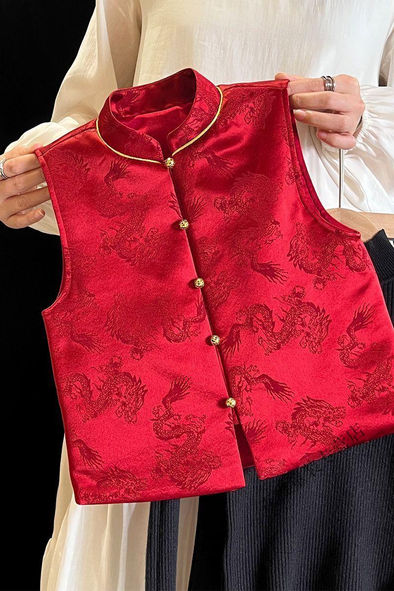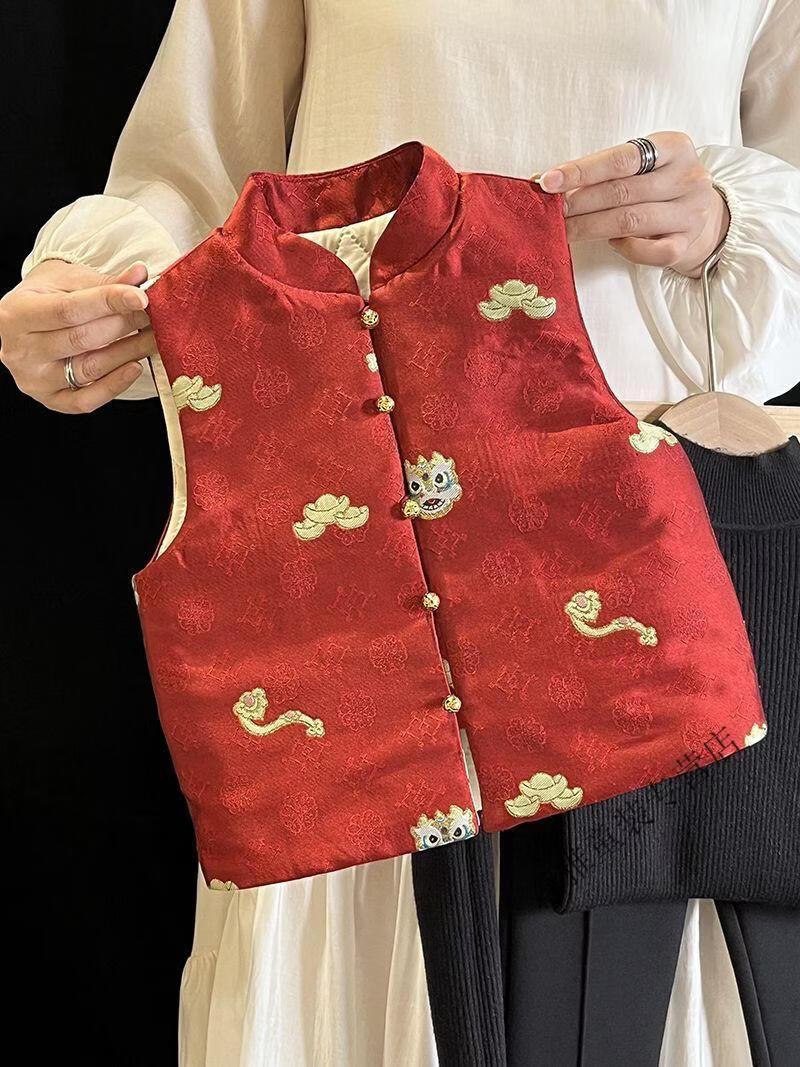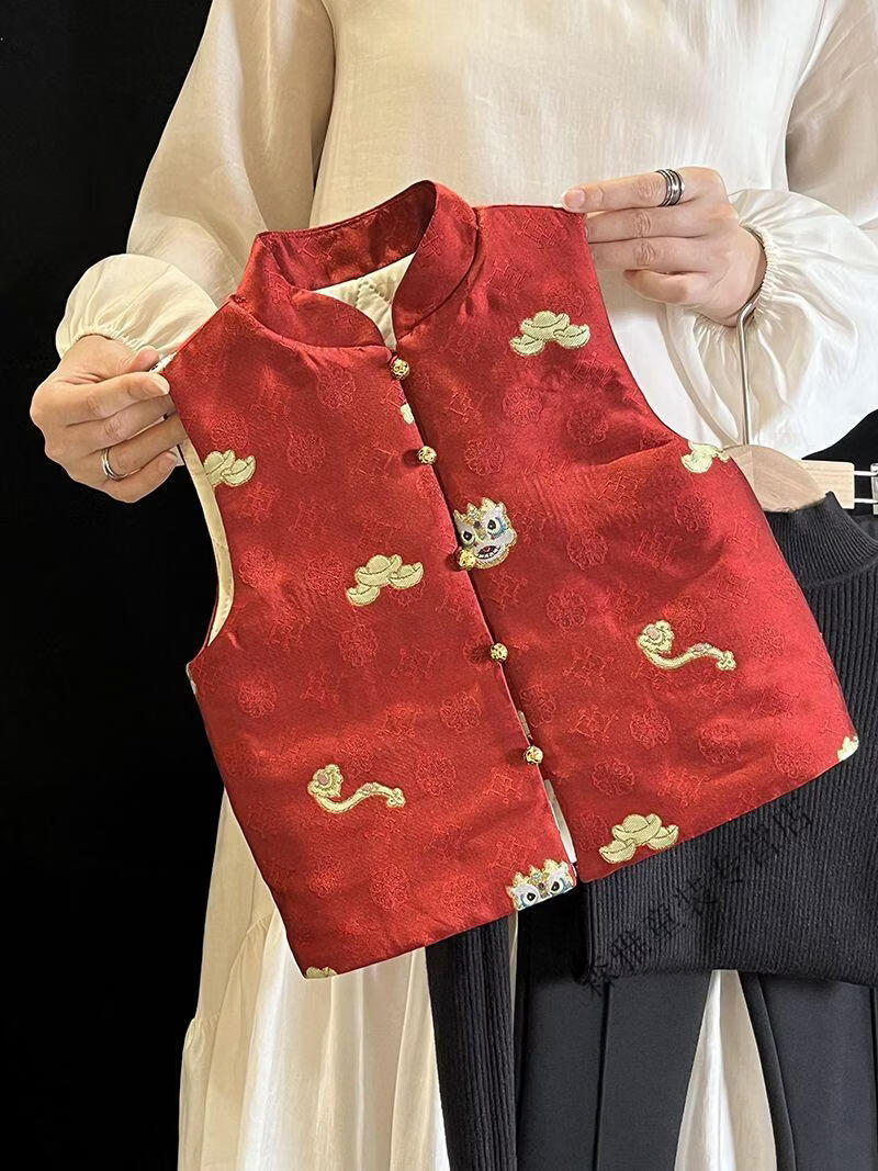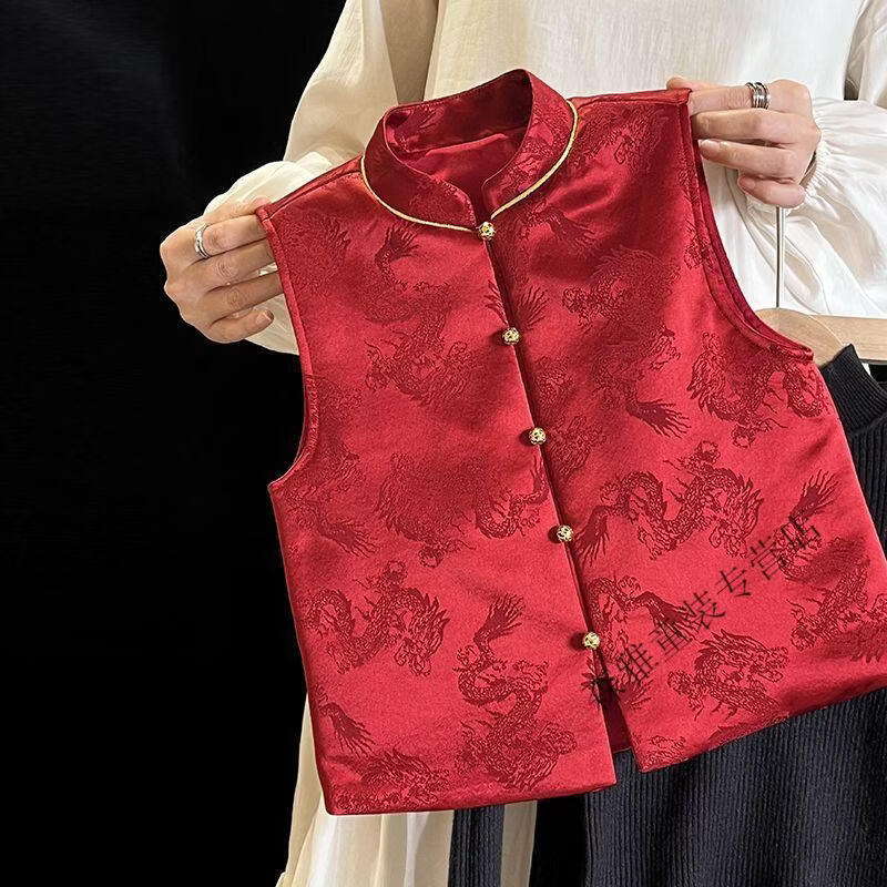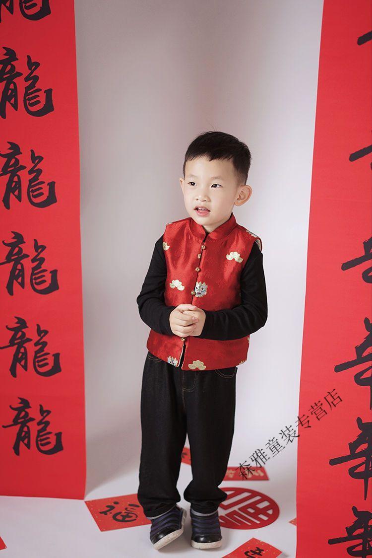 Mumuwu (mumuwu) fashionable Chinese style Tang suit New Year's greetings clothes for boys and girls new Chinese dragon pattern quilted acetate vest to keep warm in winter BMW armor quilted 42 can be approved