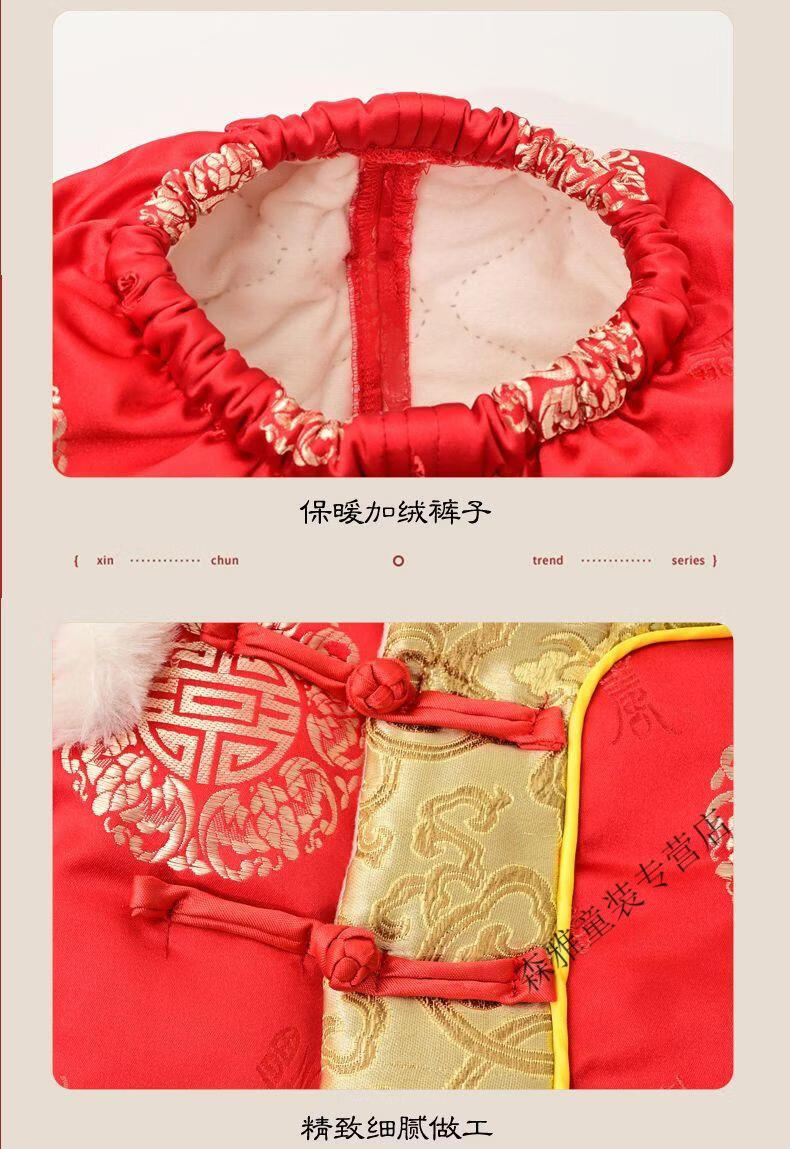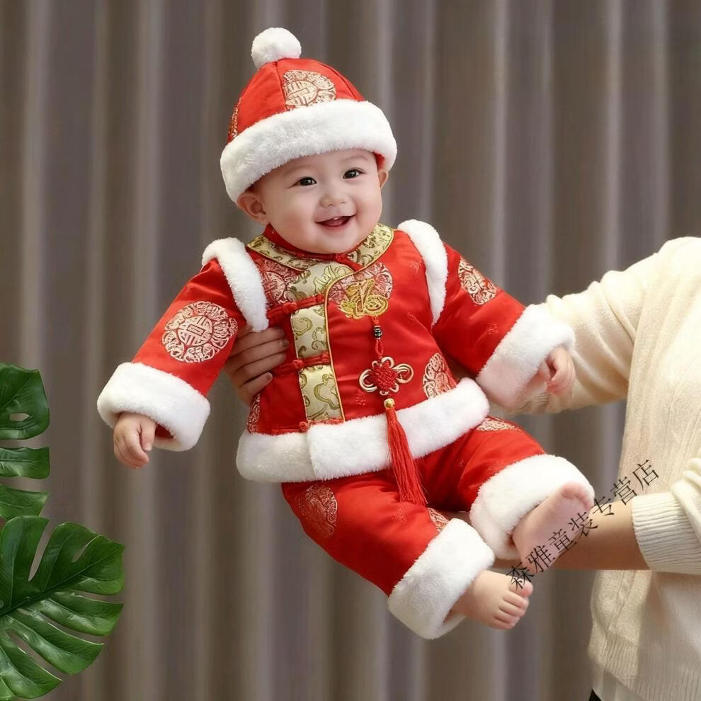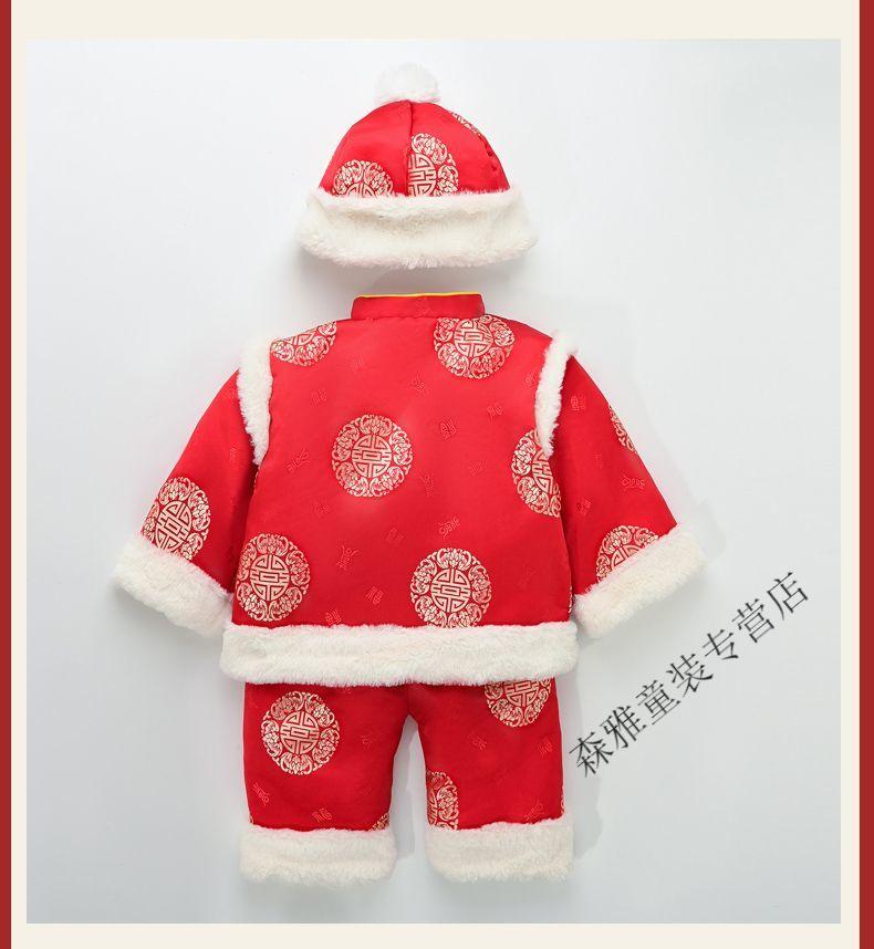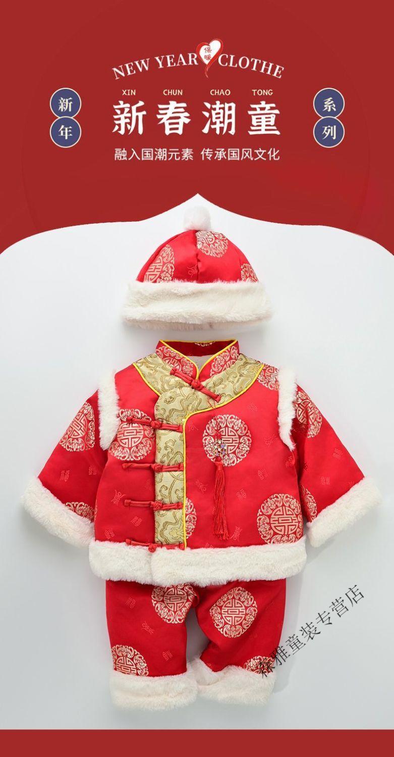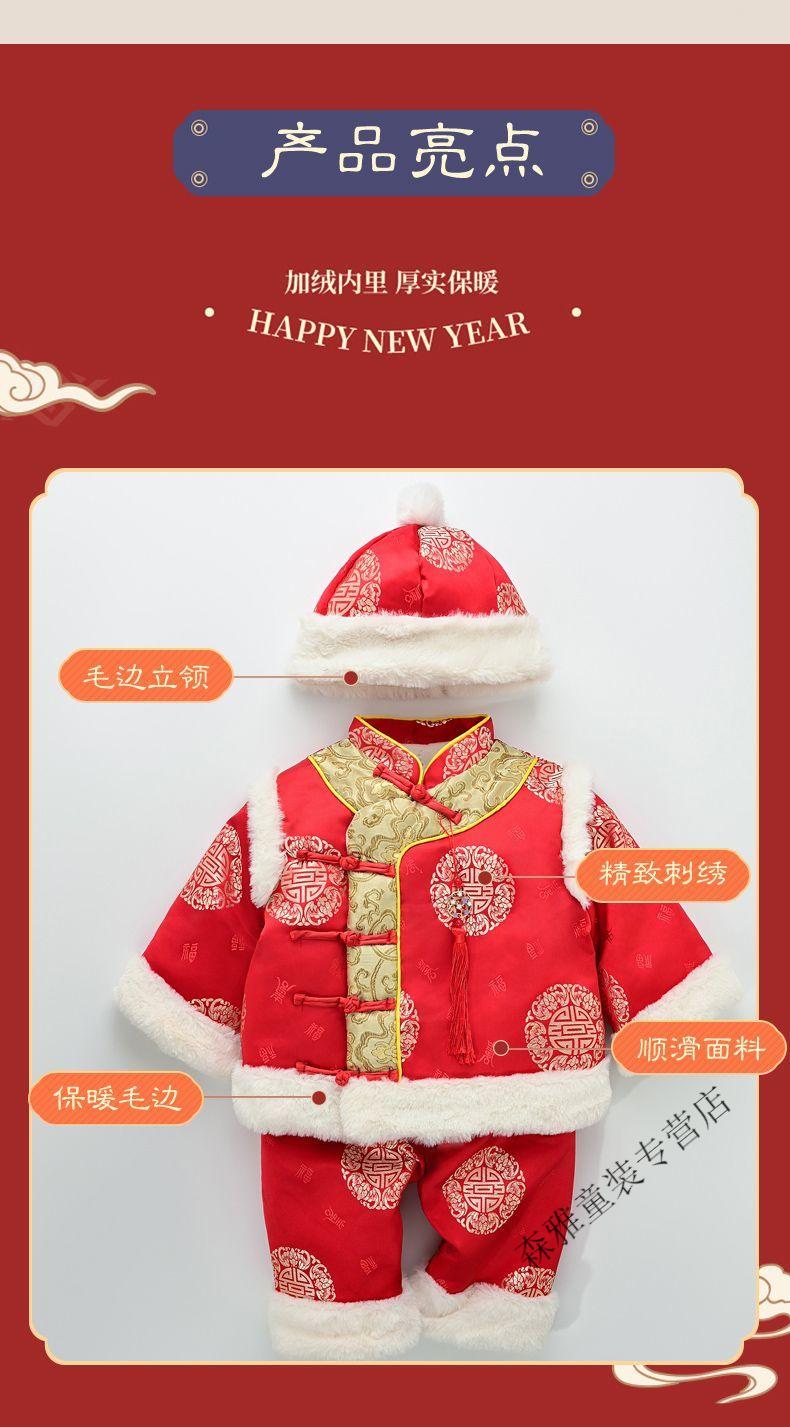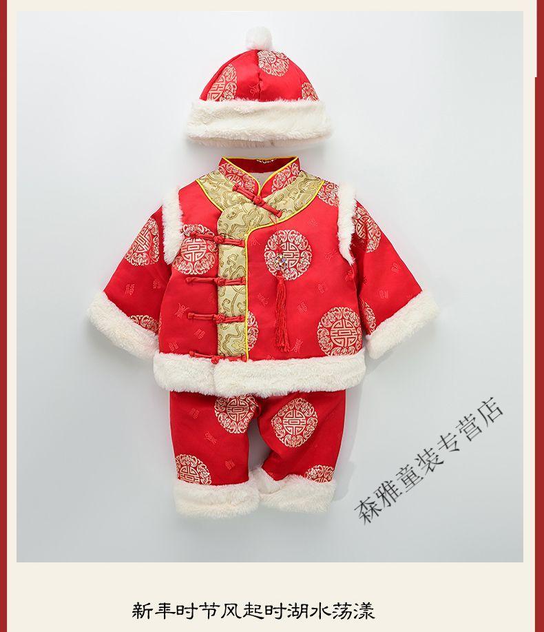 Mumuwu (mumuwu) baby one-year-old dress, one-year-old baby's one-year-old dress, thickened Chinese New Year greetings, festive Tang suit, red five-piece set 74cm