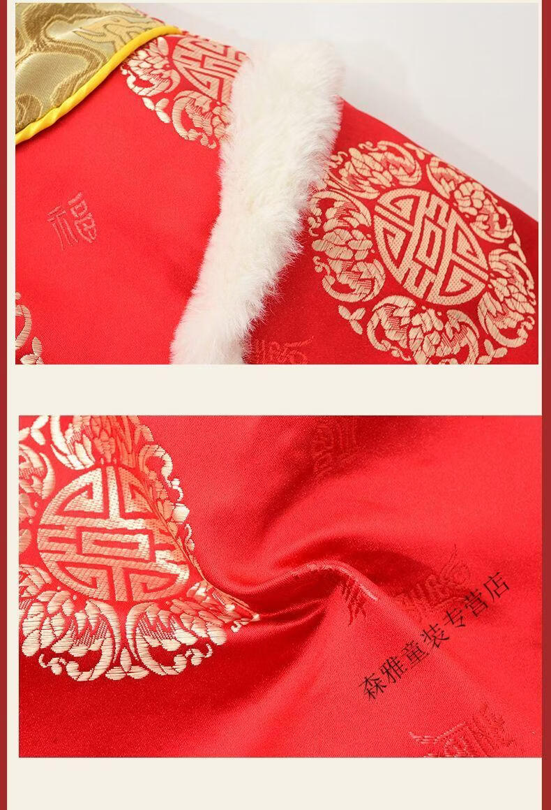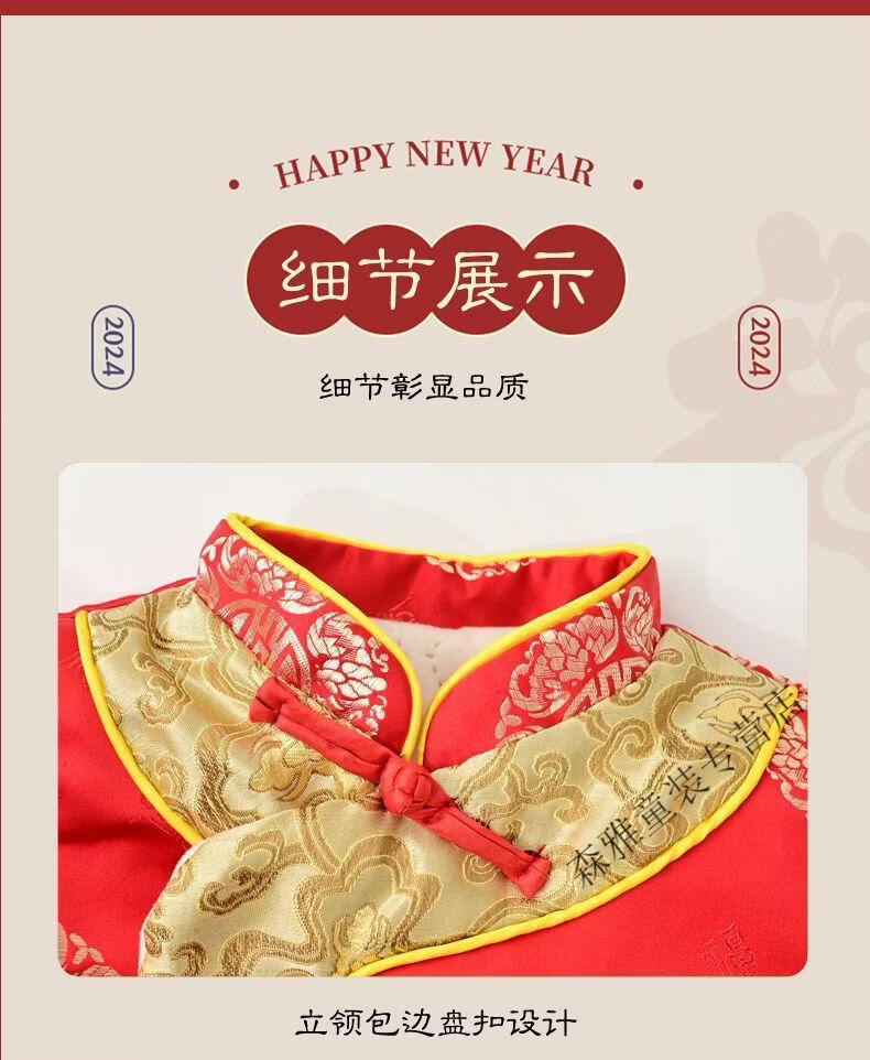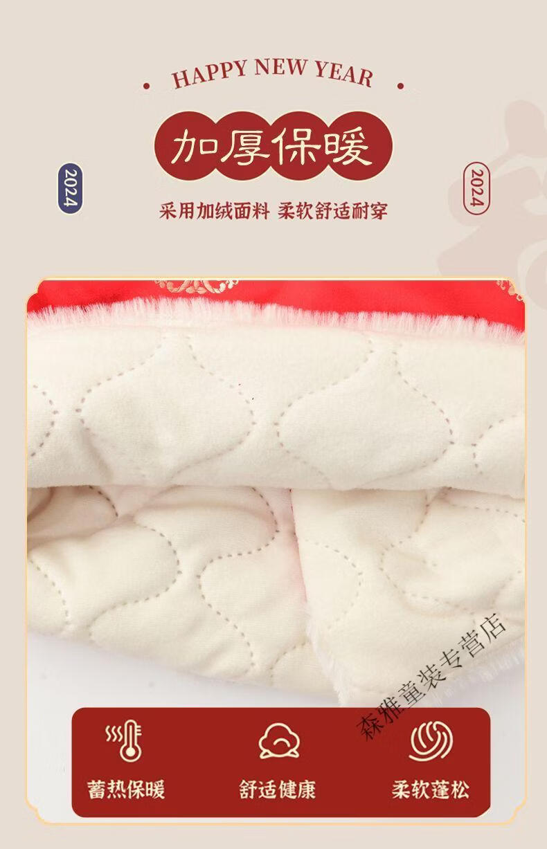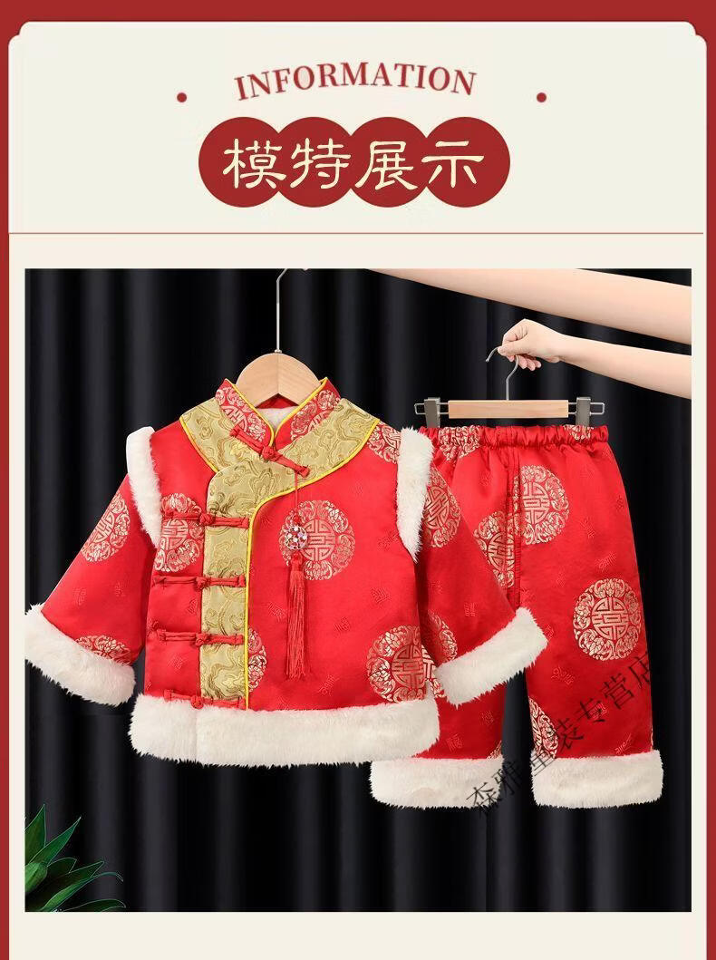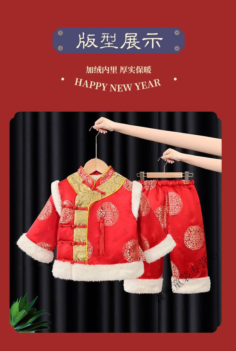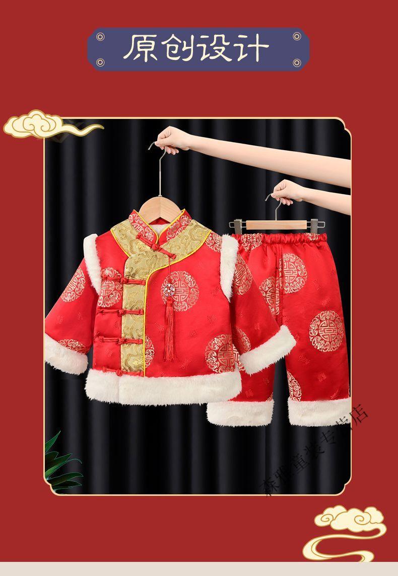 Mumuwu (mumuwu) baby one-year-old dress, one-year-old baby's one-year-old dress, thickened Chinese New Year greetings, festive Tang suit, red five-piece set 74cm