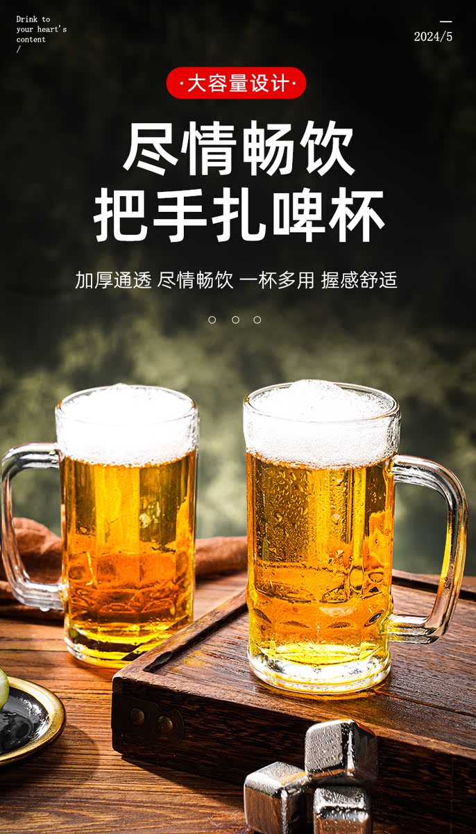 Fantasy Draft Beer Unbreakable Transparent Tea Handle Beer Cup Bar Thickened Beer Cup 6 Pack