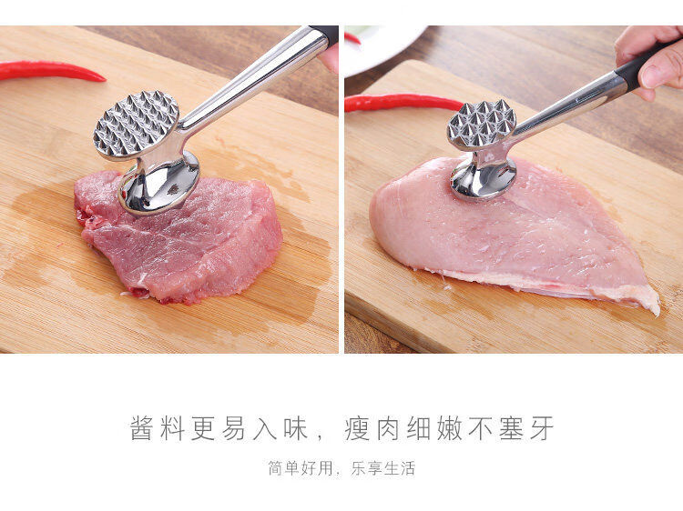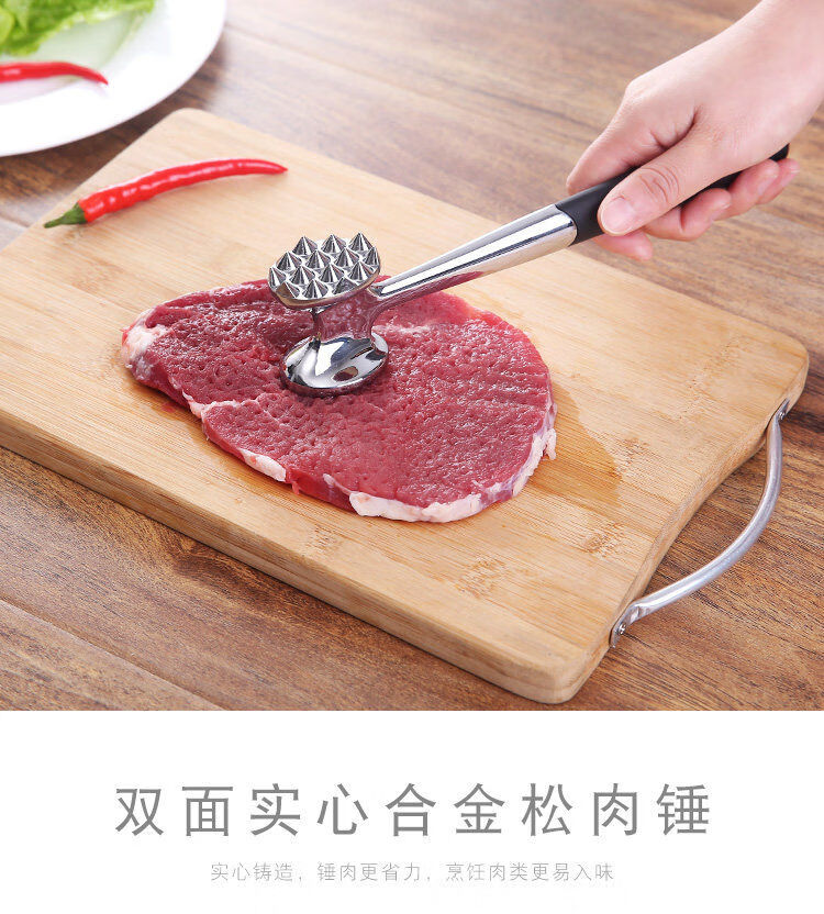 Pick-up cat double-sided meat hammer steak hammer tenderizer needle stainless steel zinc alloy pounding pork chop German meat hammer tool solid double-sided large and small teeth
