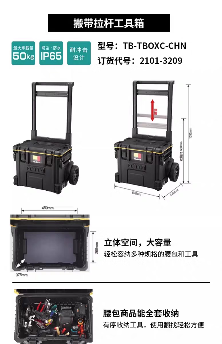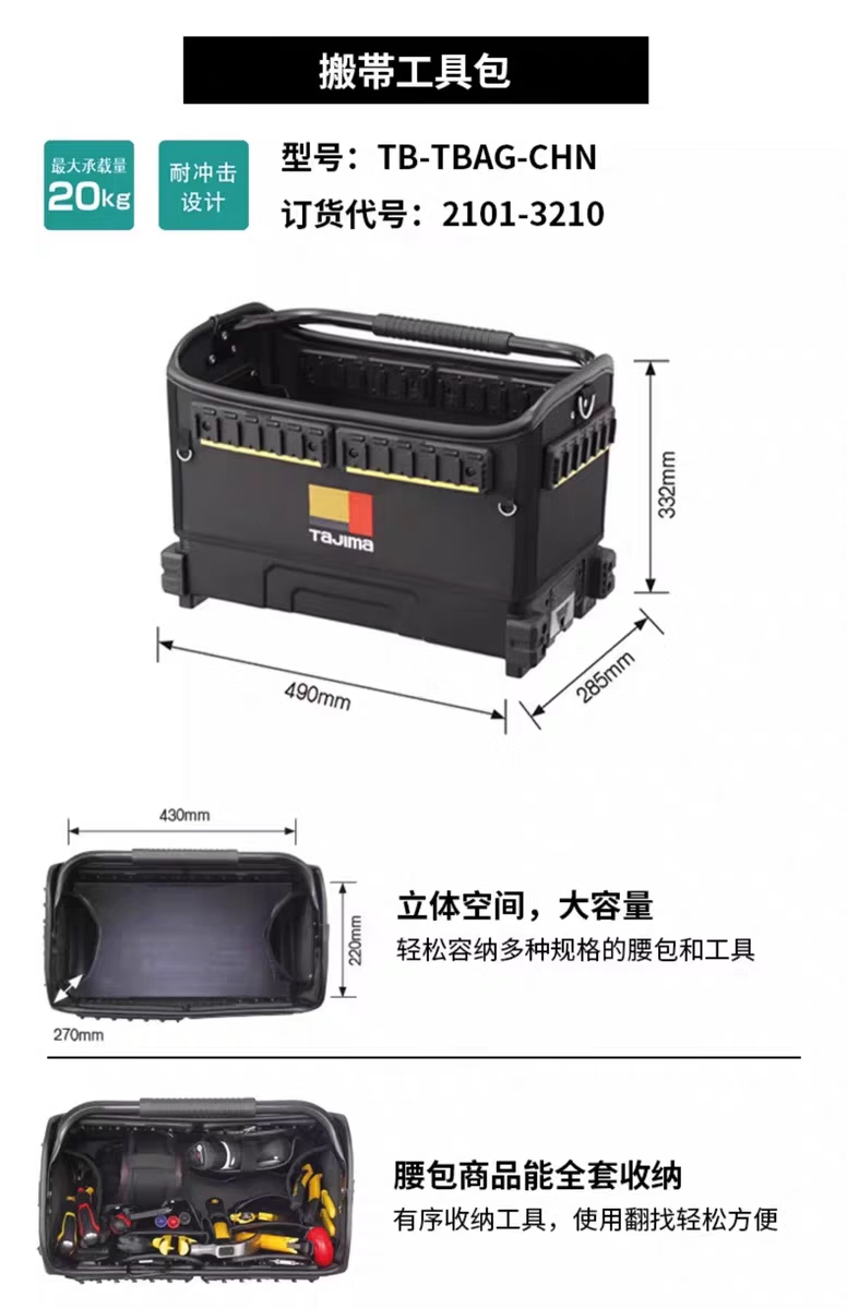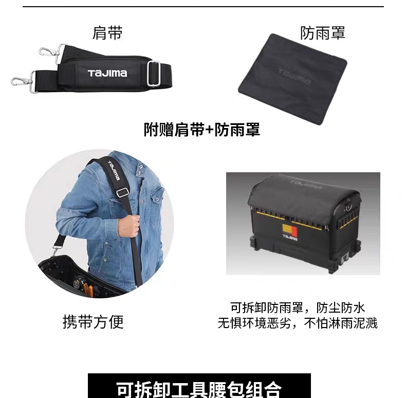 TaJIma Tajima carrying system wheeled trolley tool box for carpenters and electricians with detachable waist bag insert bag TBFS-D electrician complete storage set 14 pieces set 21kg