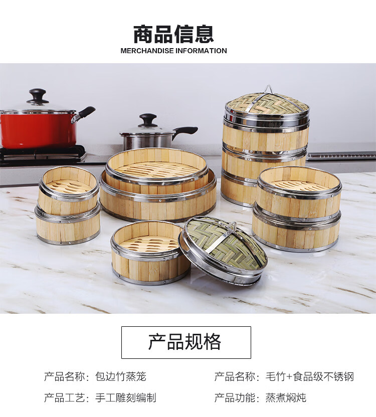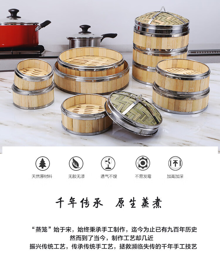 Tuojin imported high-quality commercial snack steamer from Germany, bamboo steamer, rice steamer, stainless steel edge steamer, Cantonese style, lid 26cm