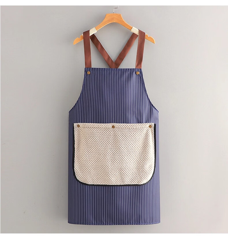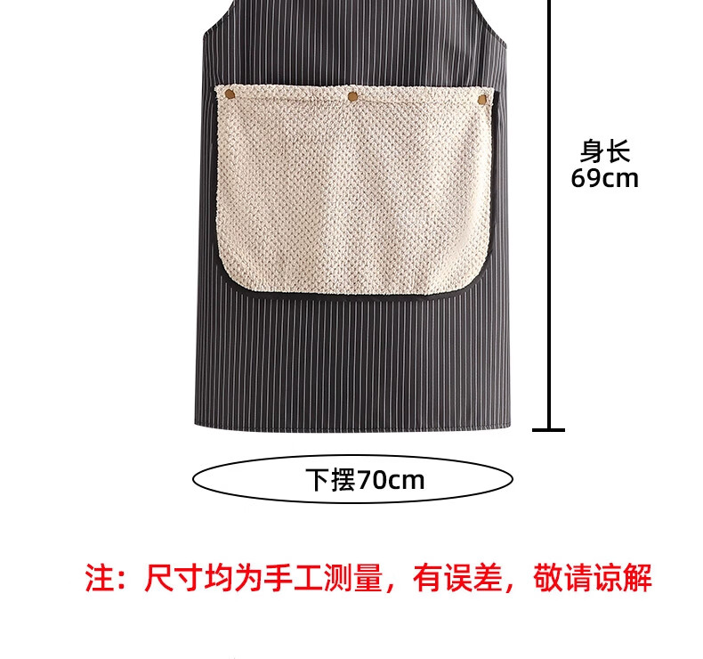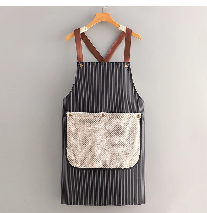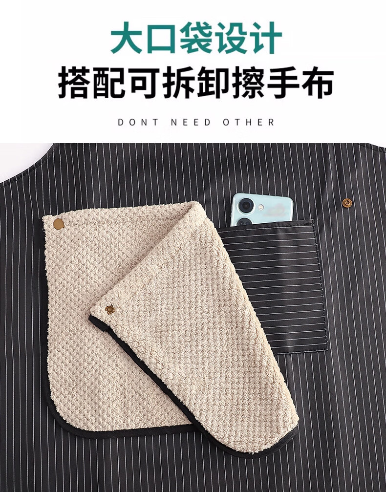 Tuojin imported from Germany, high-quality, good-looking, removable oil-proof hand towel apron, waterproof and thickened, for young home kitchen, waterproof strap, striped hand-wiping style, black, 1 piece, removable hand towel
