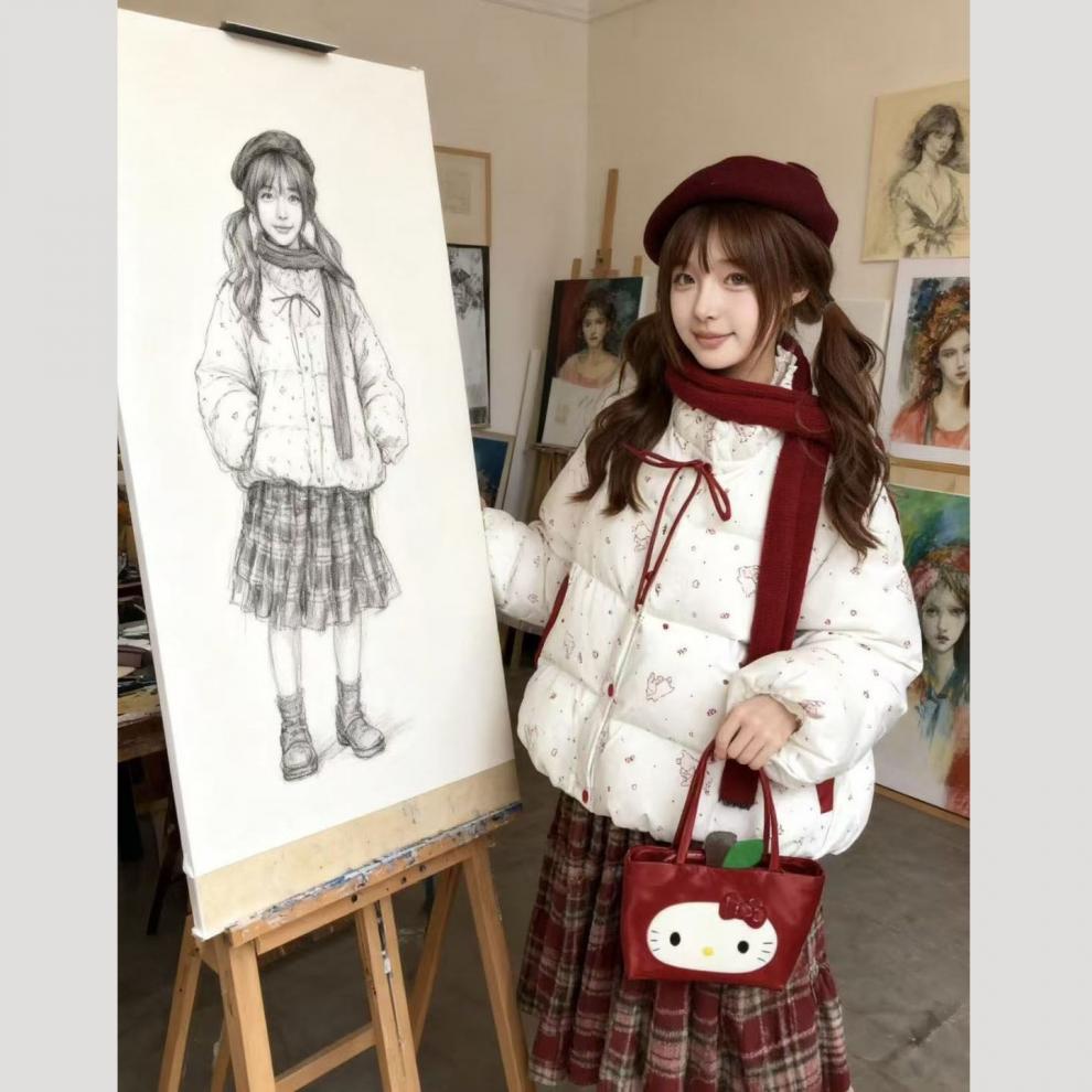 HAL.DUCK girls' down jacket, huge and good-looking, thick and warm winter coat, women's 2025 new cotton coat, super good-looking down, cotton coat, off-white, small / unique in late winter, super good-looking / western style, unique and small 165 S