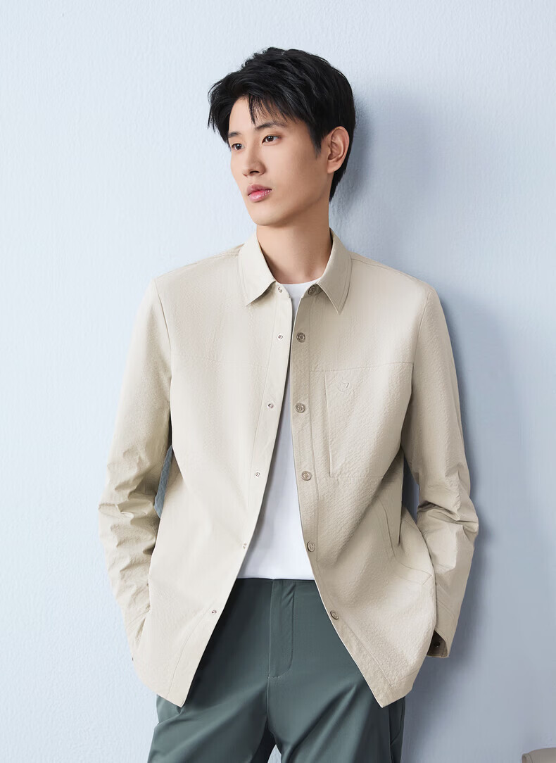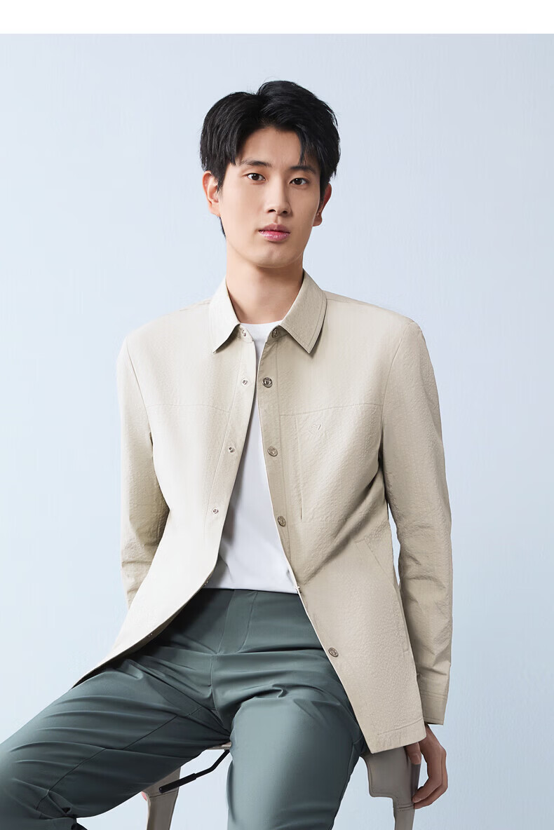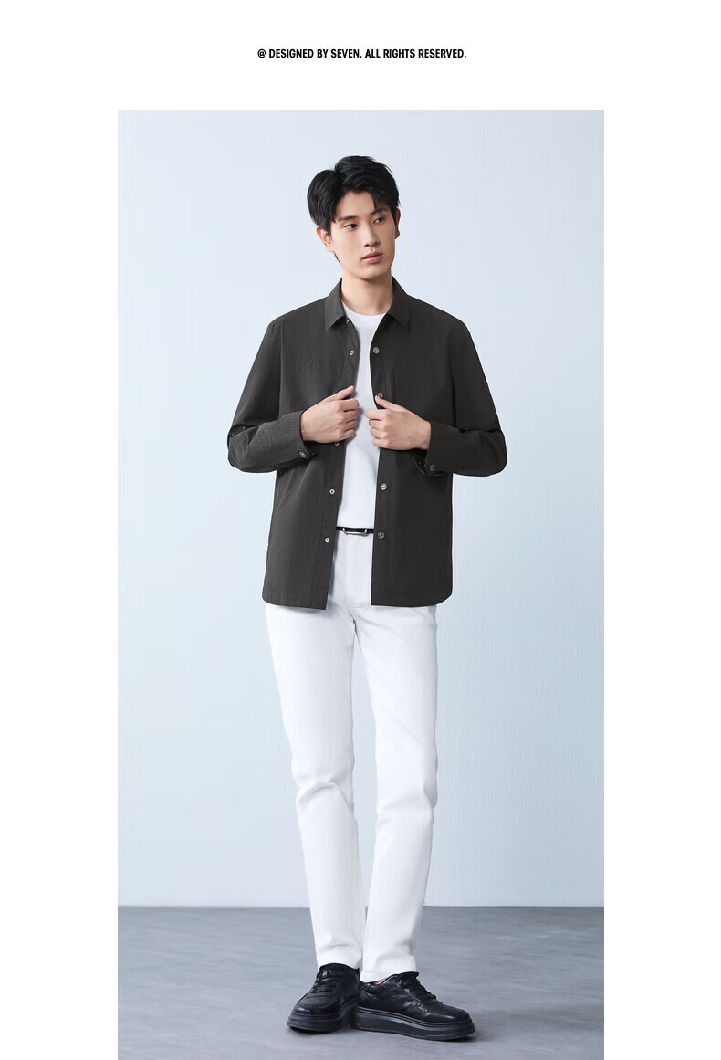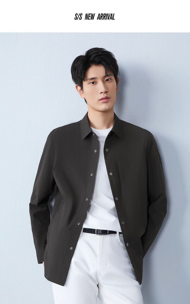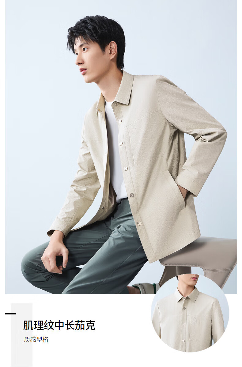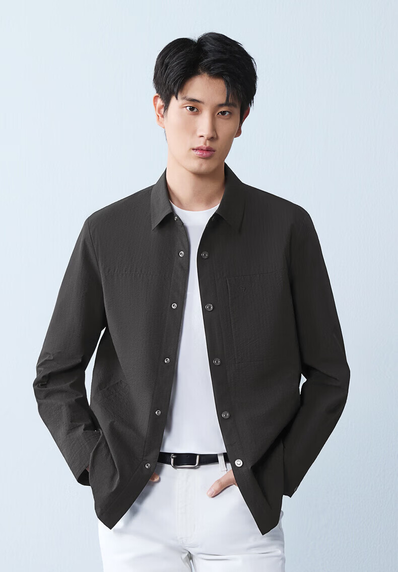 Qipai men's mid-length lapel jacket for men 2026 spring new fashion versatile shirt jacket spring and autumn coat for men smoke gray S (165)