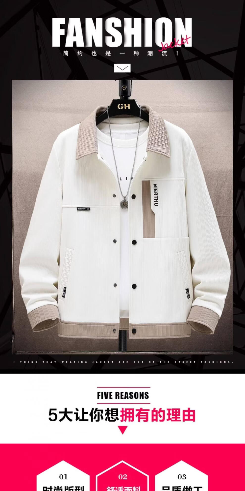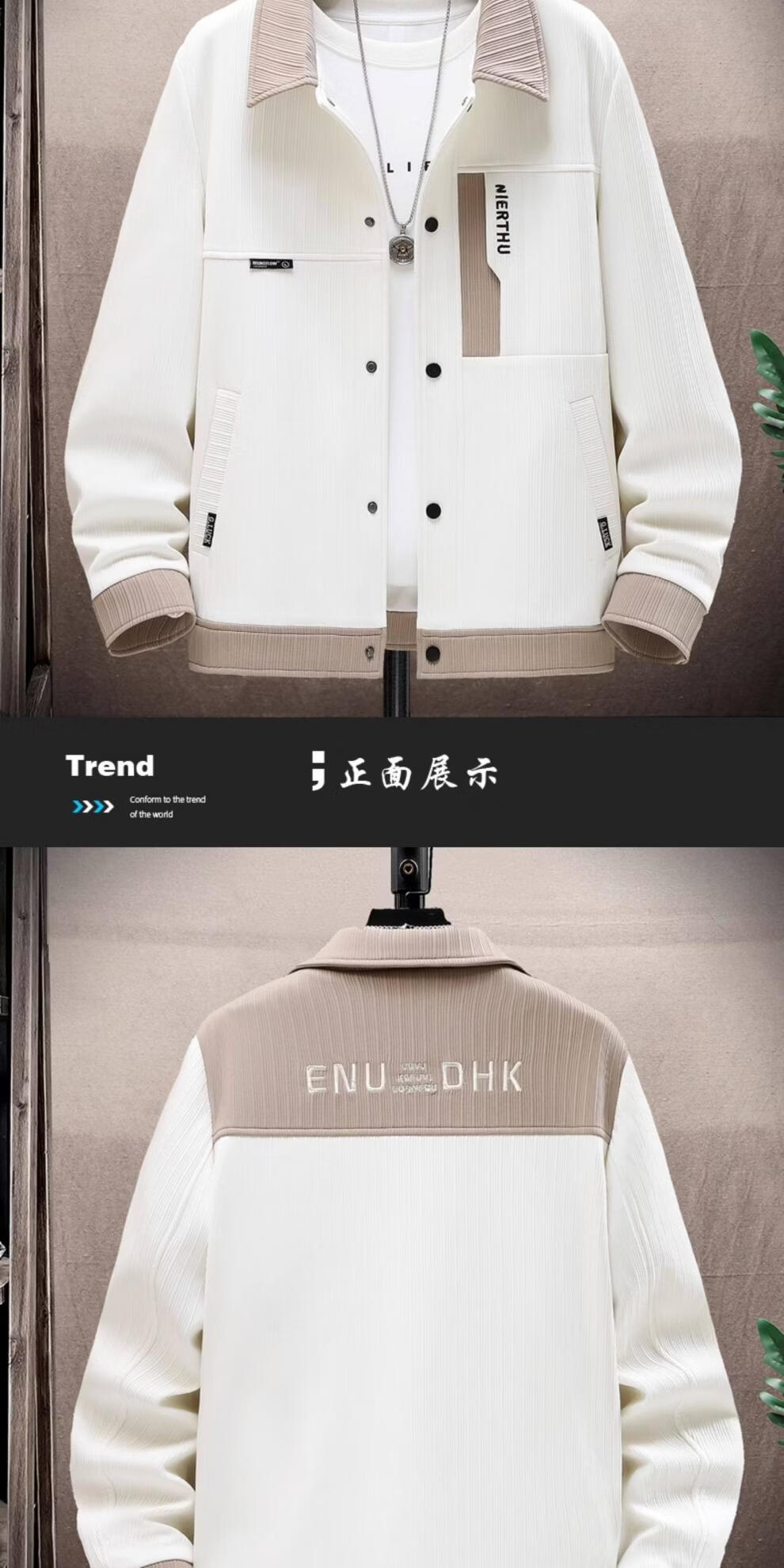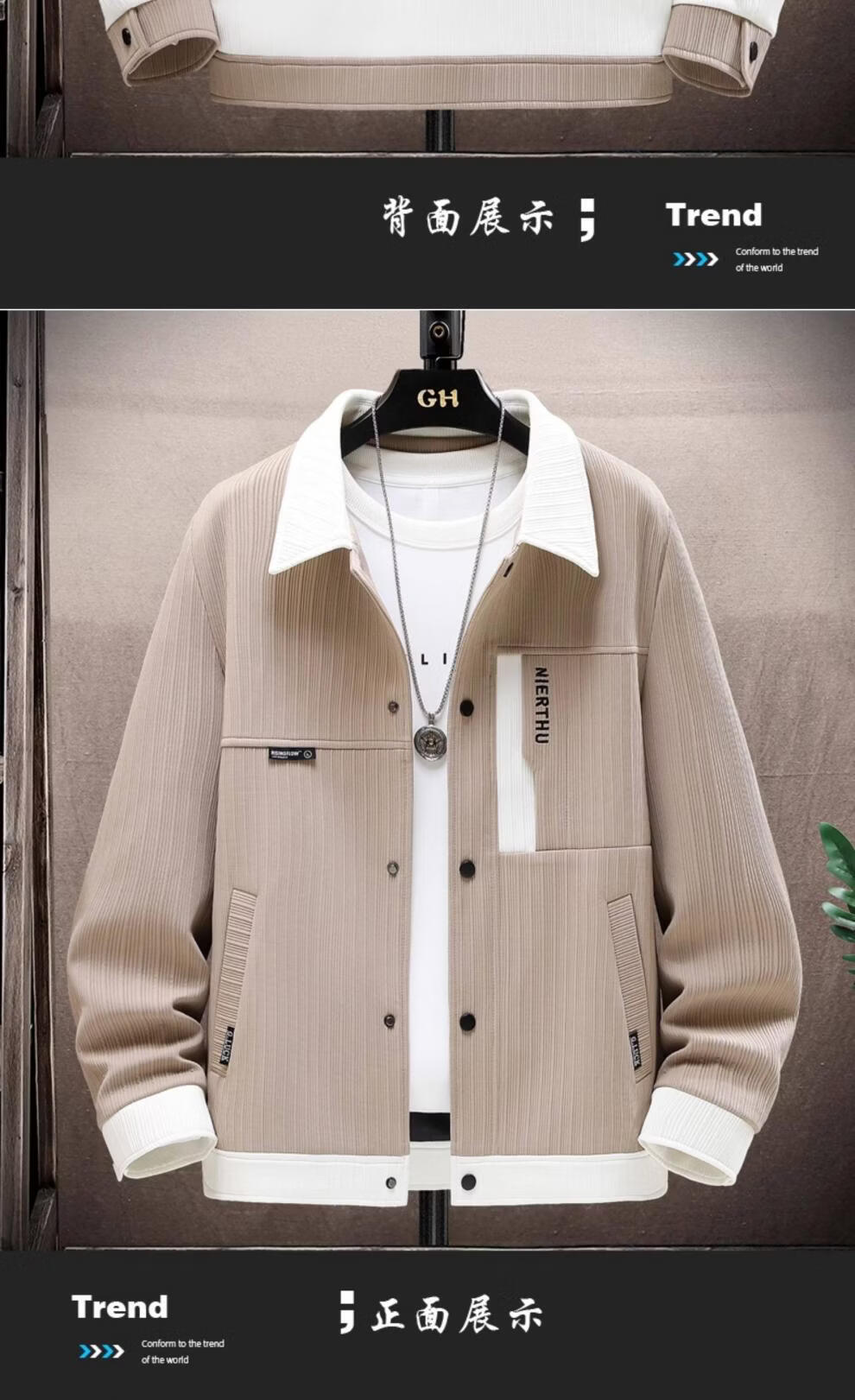 JEEP SPIRIT jacket men's spring and autumn Korean style trendy light mature style men's loose lapel jacket men's casual short top 8519 fleece jacket-beige 4XL (about 170~185Jin Jin equals 0.5kg can be worn)