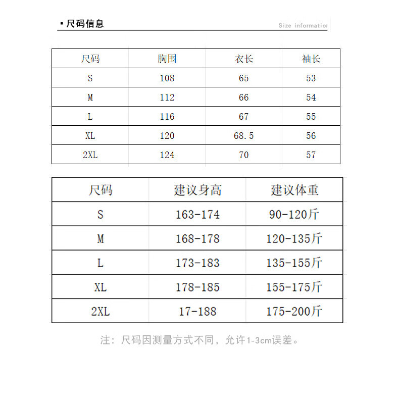 China (cm) 165 / 88-90 170 / 96-98 175 / 108-110 180 / 118-122 185 / 126-130