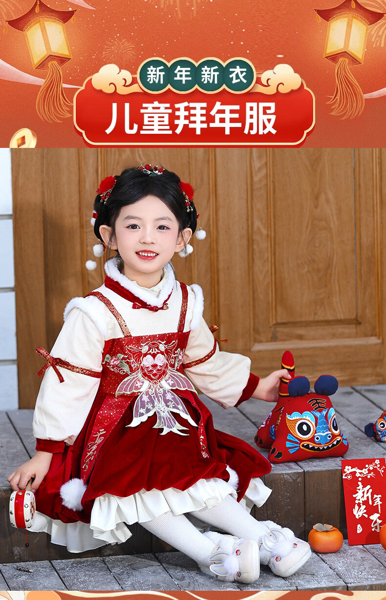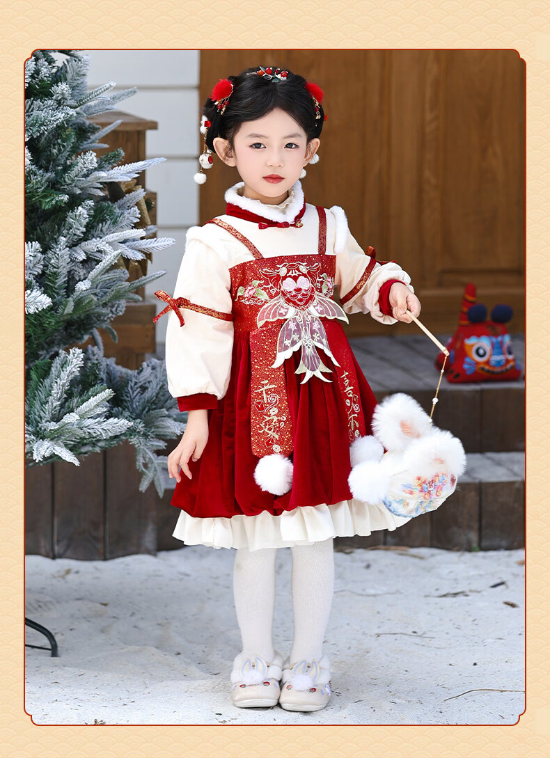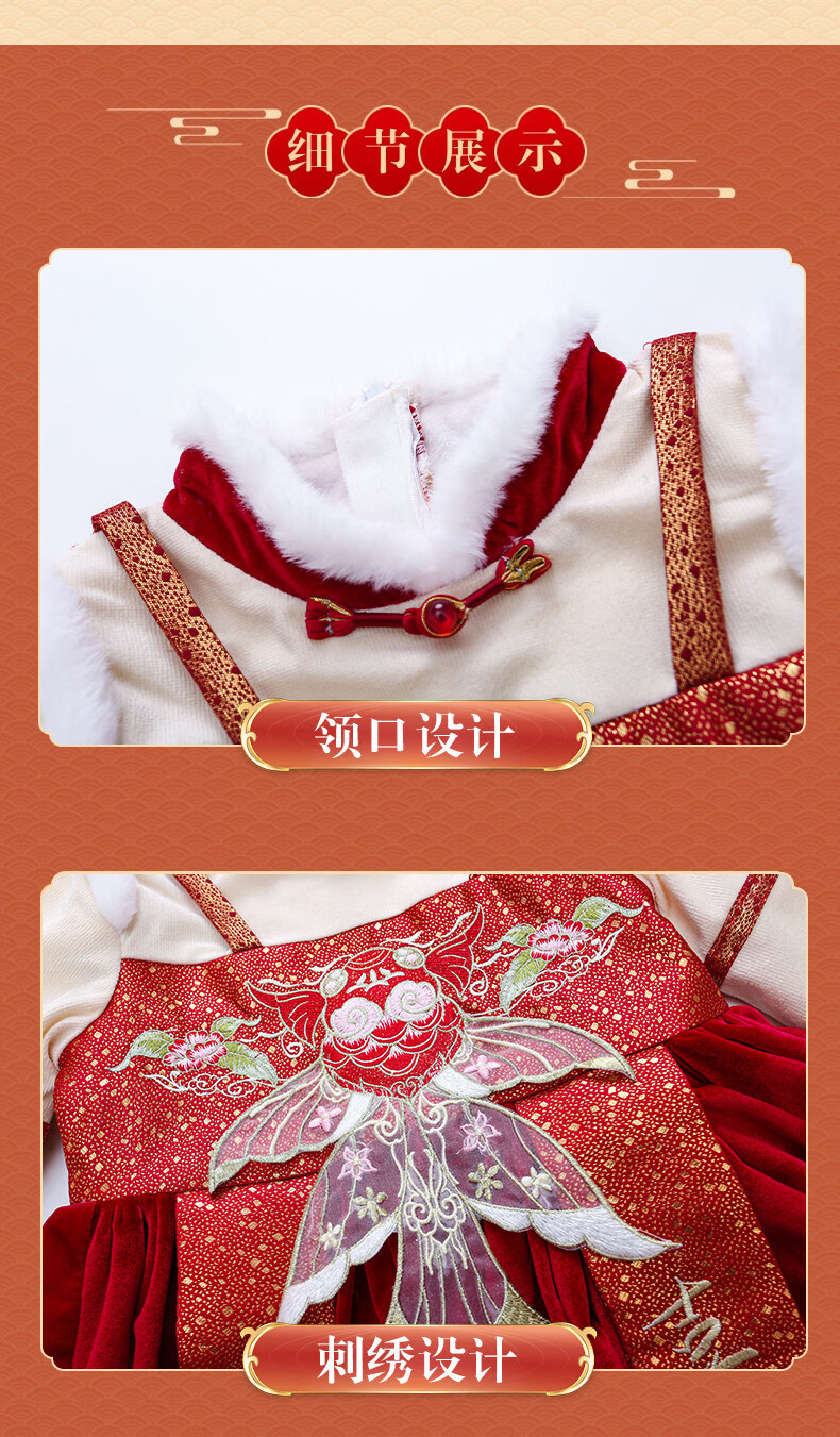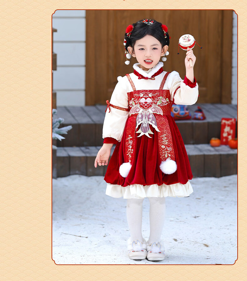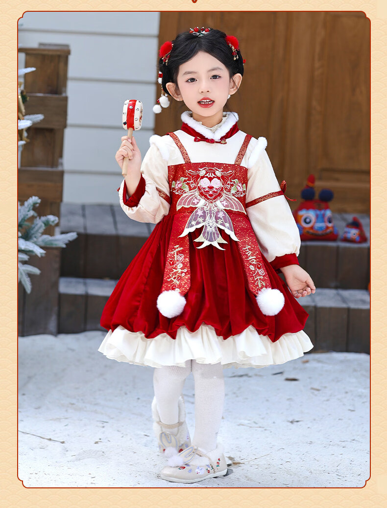 Disney Girls New Year Clothes Han Clothing Girls New Year Clothes 2025 New Velvet Autumn and Winter Clothes Baby Girls Dress Children Red Koi Dress + Pantyhose + Red Boots (Headgear + Eyebrow Stickers) Plus Velvet 90