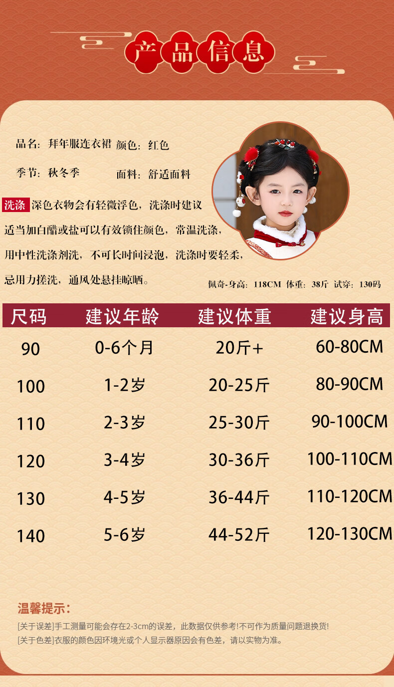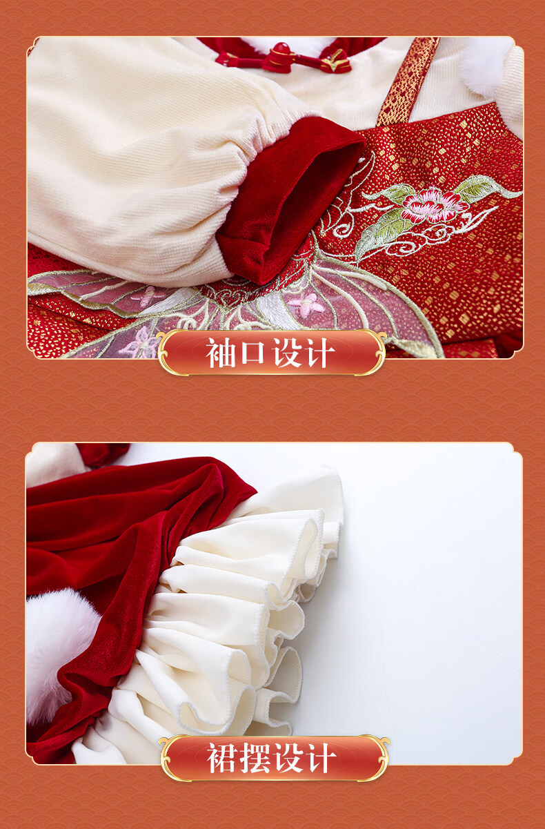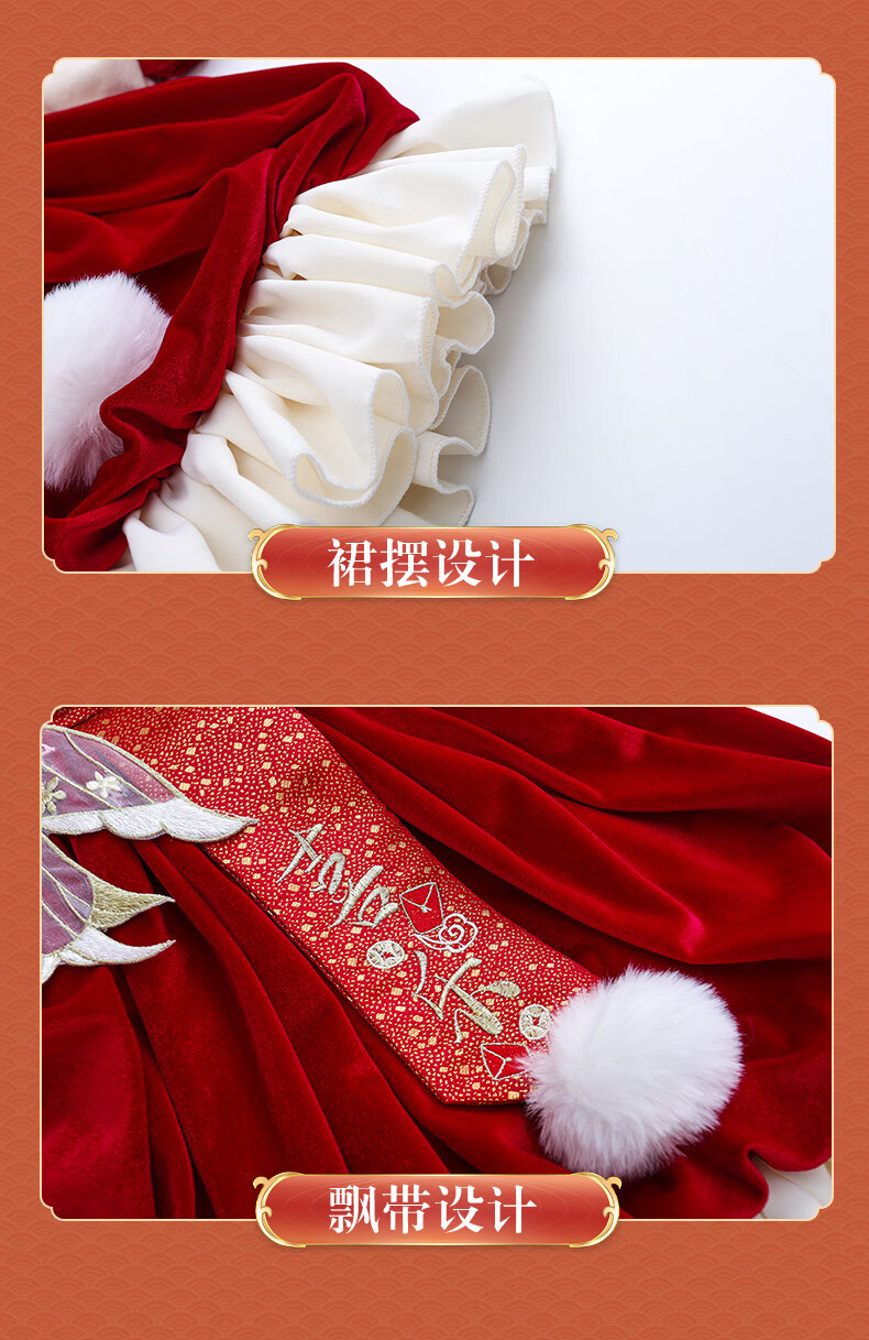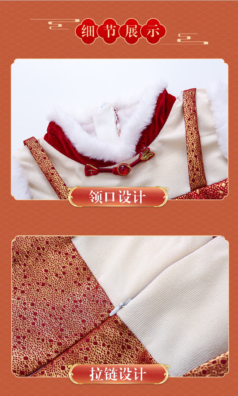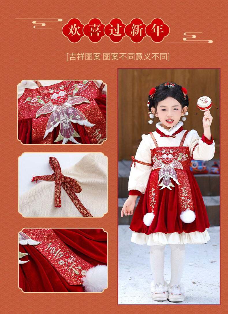 Disney Girls New Year Clothes Han Clothing Girls New Year Clothes 2025 New Velvet Autumn and Winter Clothes Baby Girls Dress Children Red Koi Dress + Pantyhose + Red Boots (Headgear + Eyebrow Stickers) Plus Velvet 90