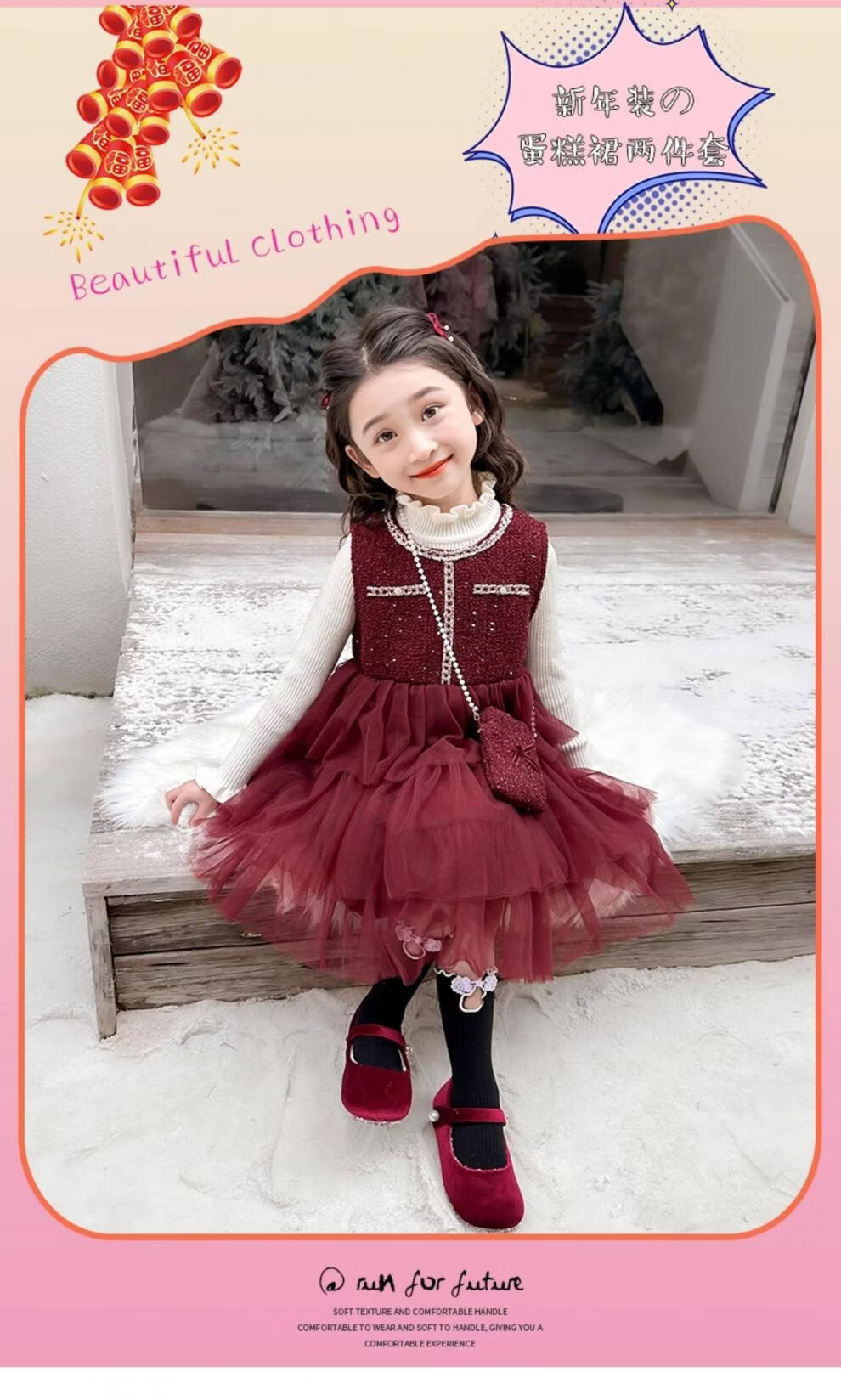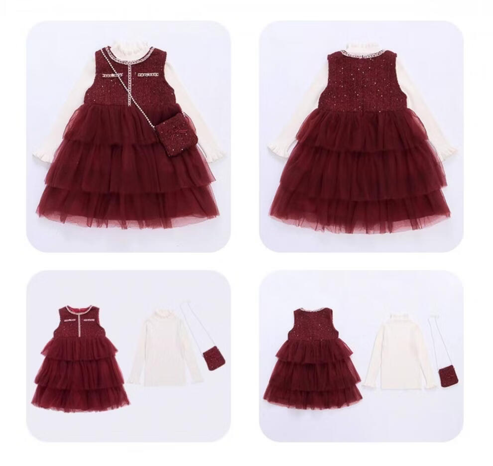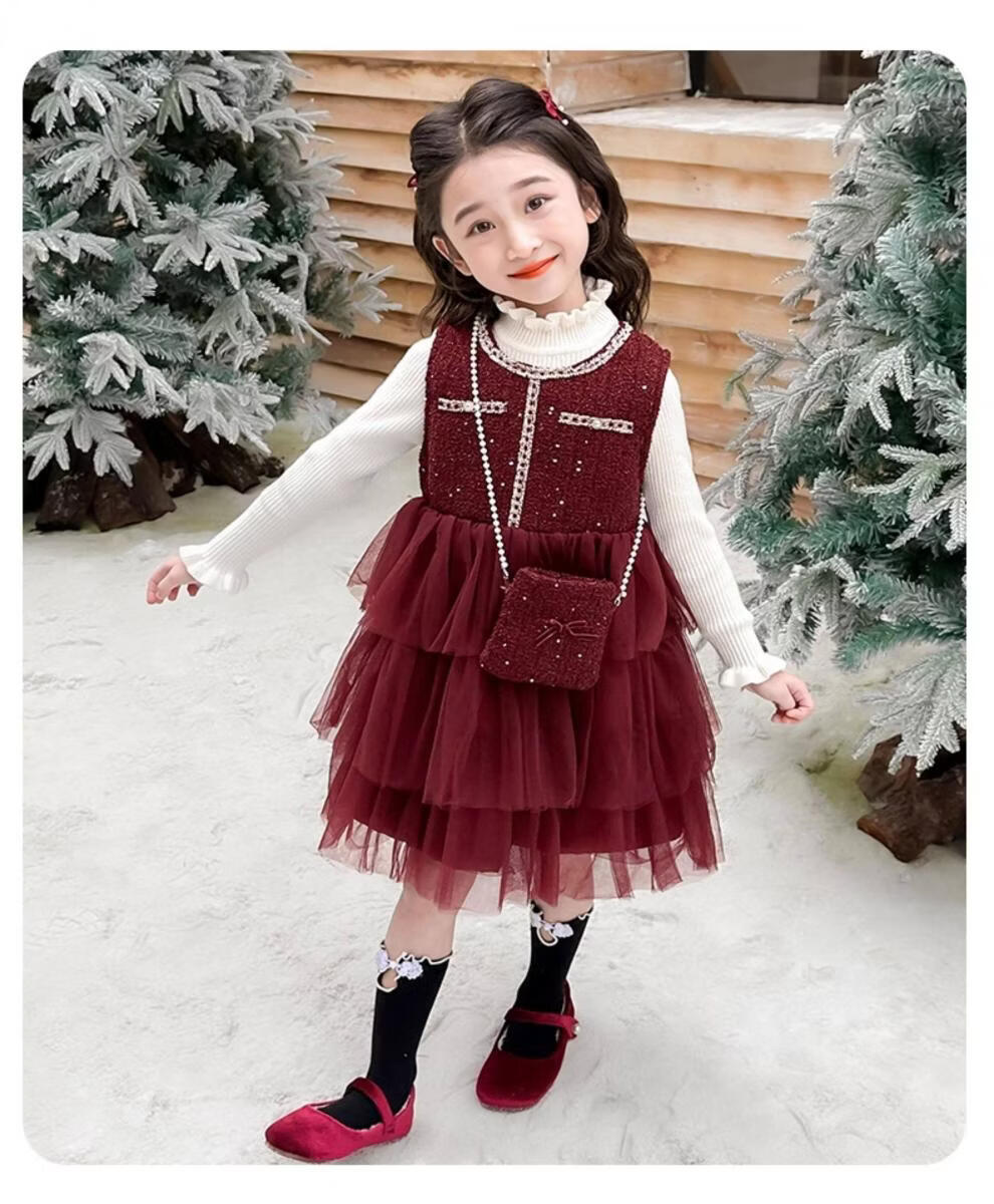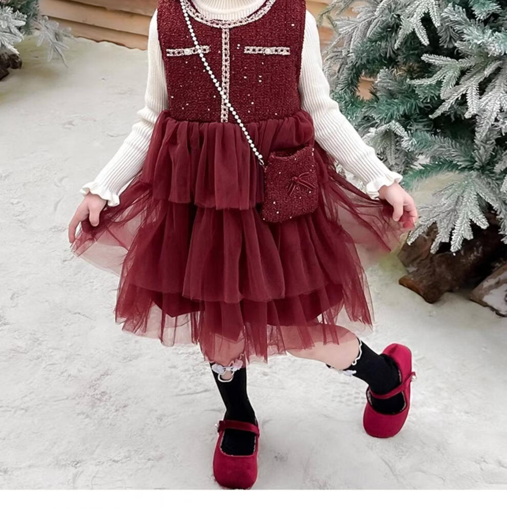 Disney children's New Year's clothing set girls' small fragrant style dress plus velvet winter style 2026 new style little girl fashionable princess skirt + sweater + bag skirt plus velvet 100 cm