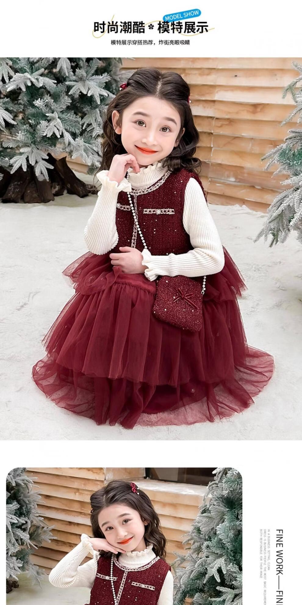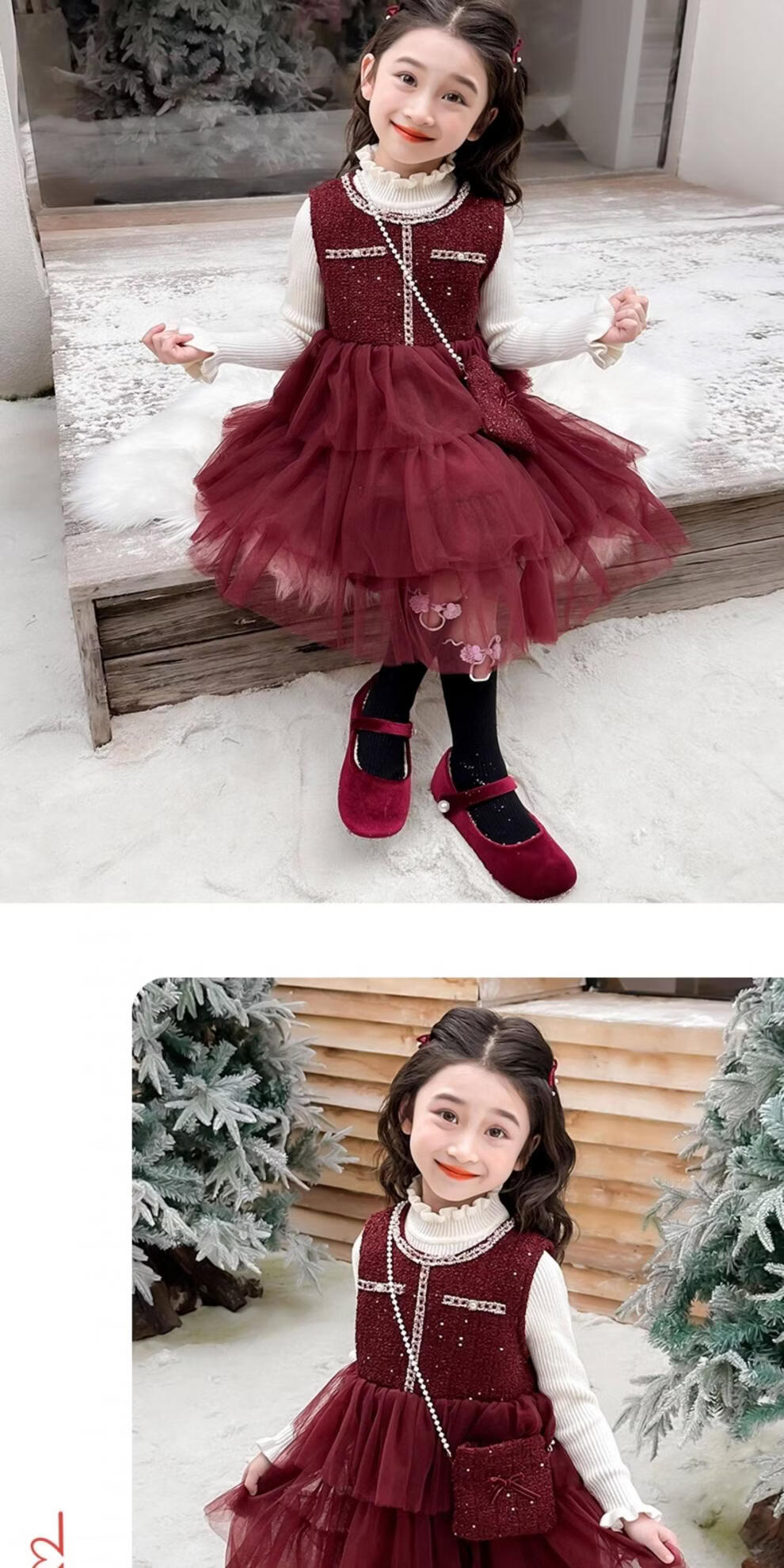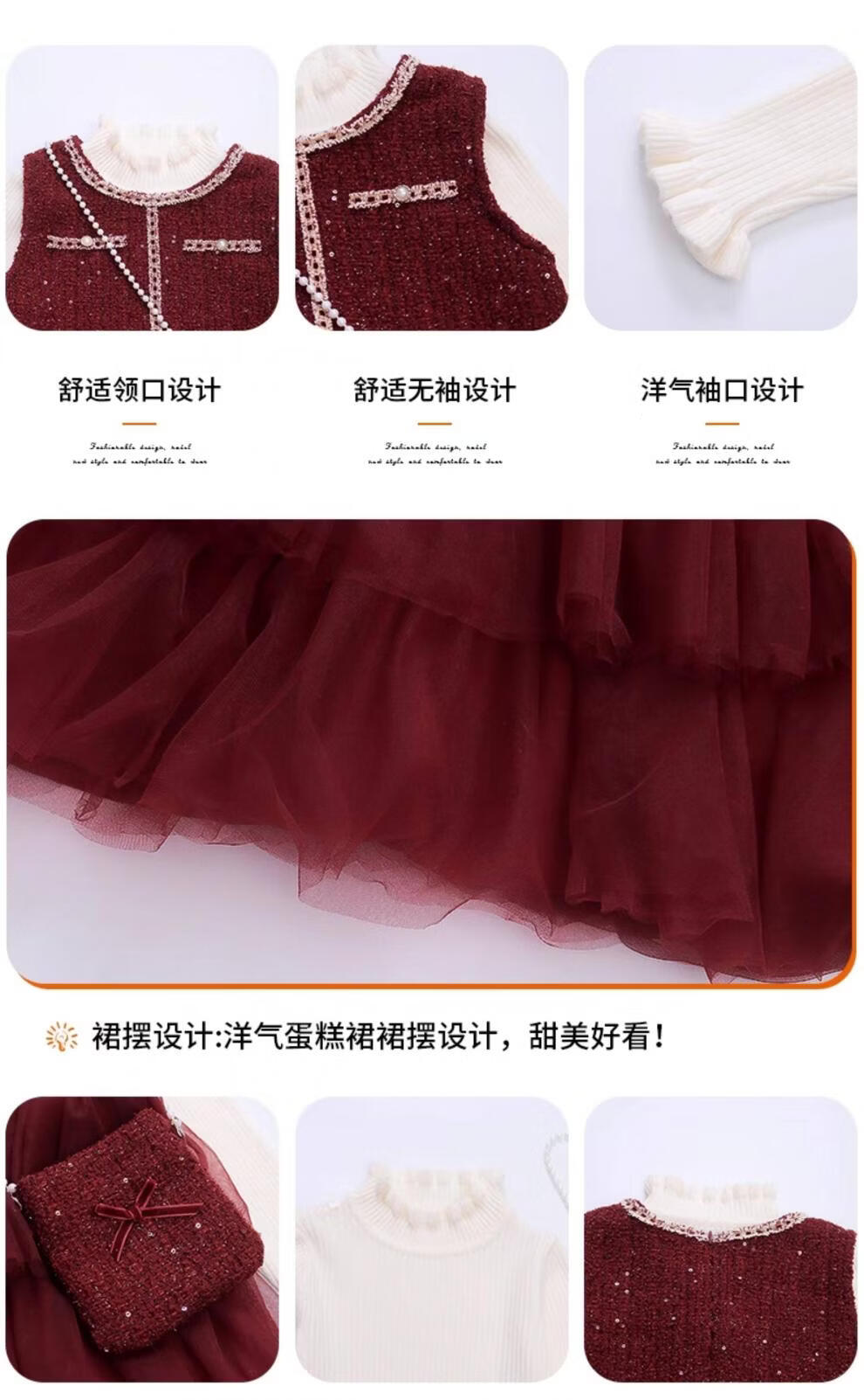 Disney children's New Year's clothing set girls' small fragrant style dress plus velvet winter style 2026 new style little girl fashionable princess skirt + sweater + bag skirt plus velvet 100 cm