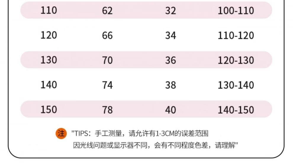 China (cm) 160-165/84-86 165-170 / 88-90 167-172 / 92-96 168-173 / 98-102 170-176 / 106-110