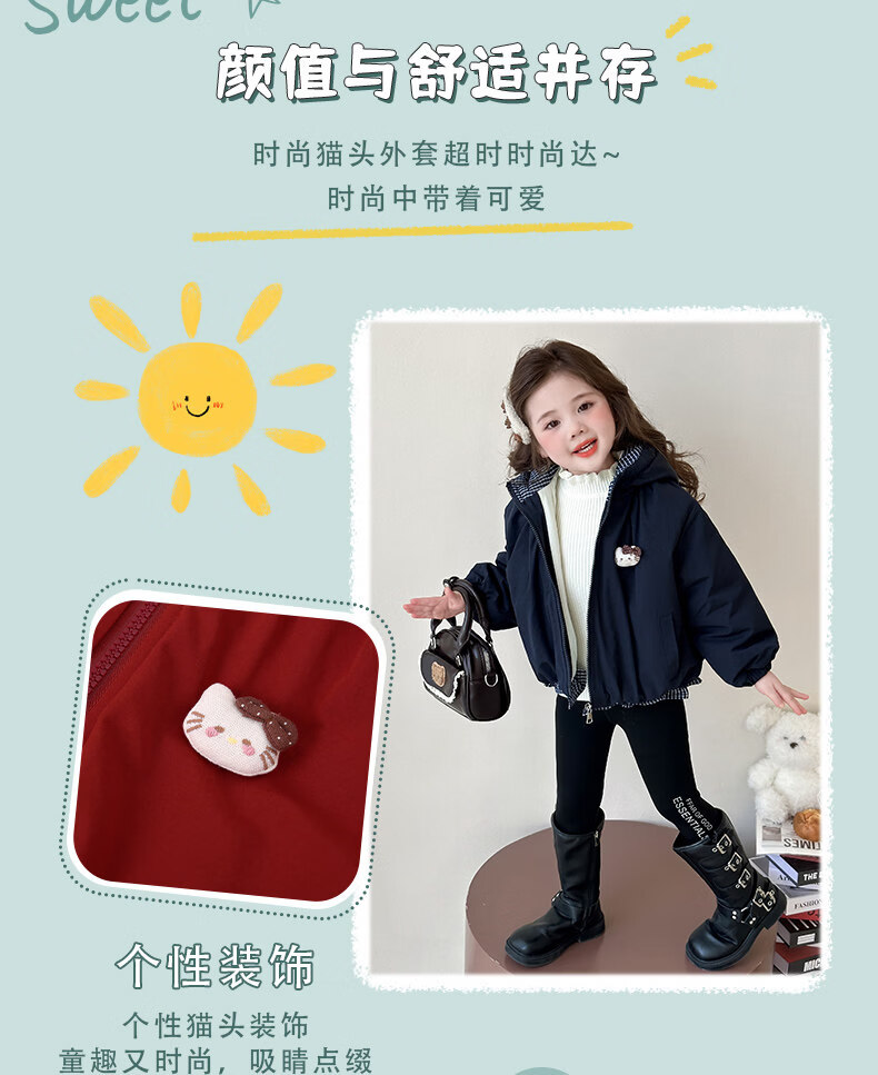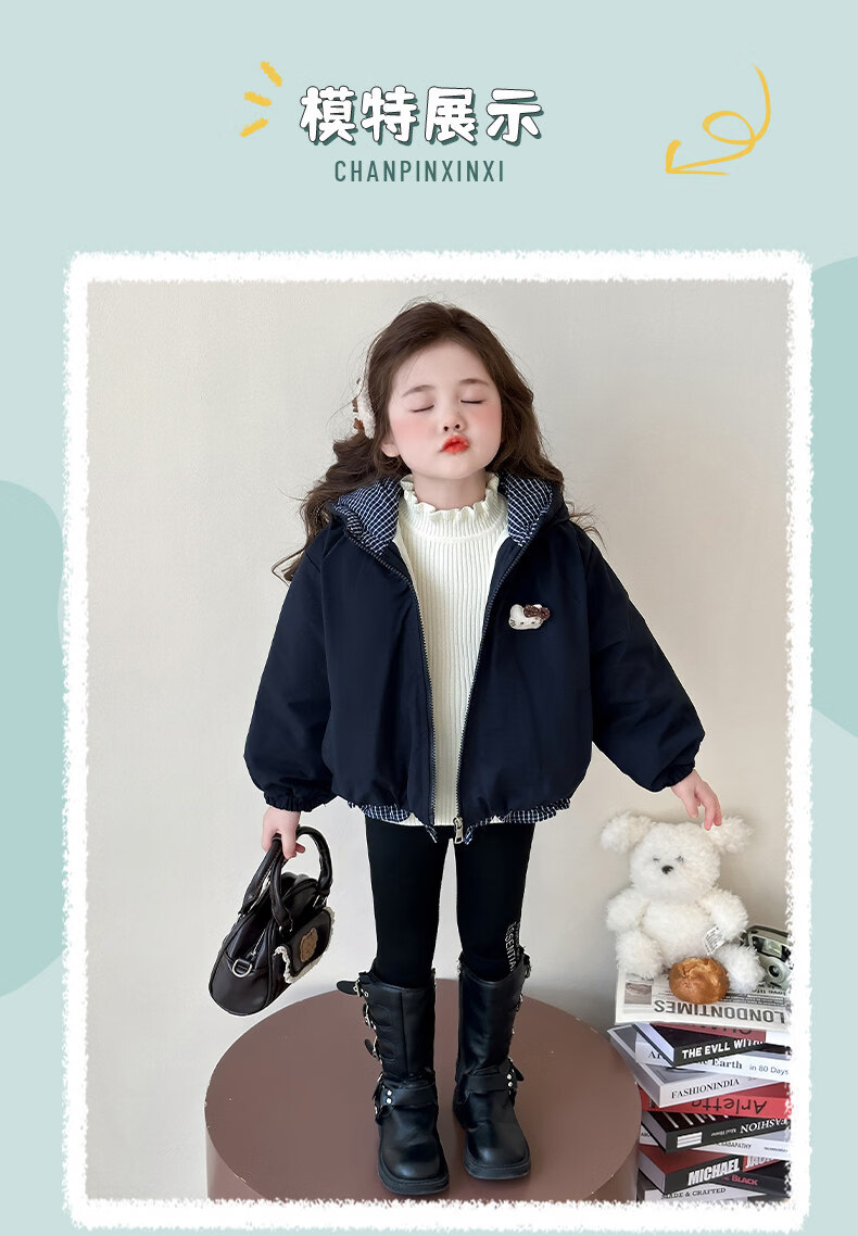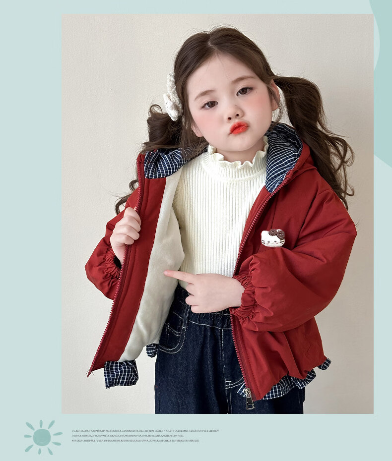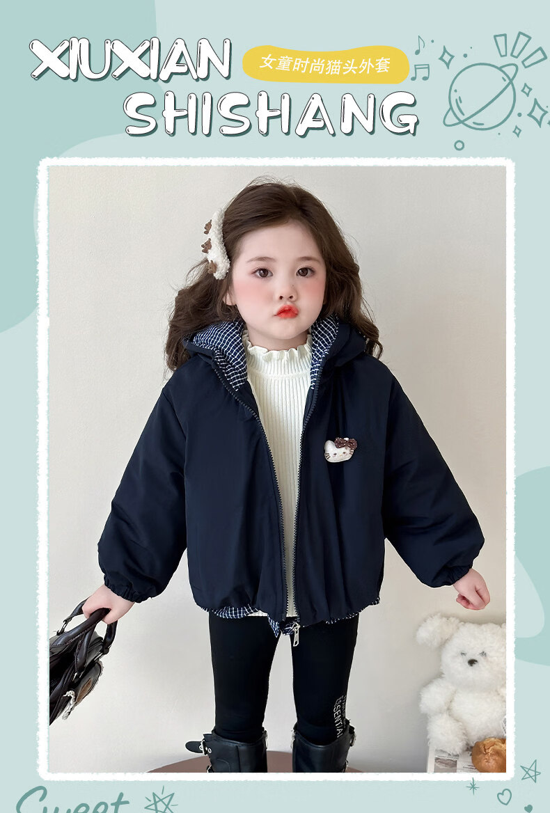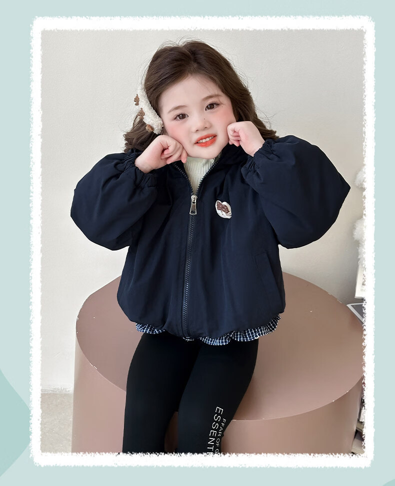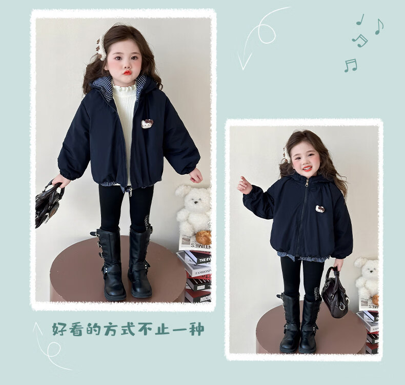 Disney Down Jacket Girls' Velvet Jacket Winter New Style Baby Warm Cotton Clothes Street Winter Clothes Children's Thickened Cotton Cotton Cotton Style Navy Blue Jacket Velvet Thickened 90 cm