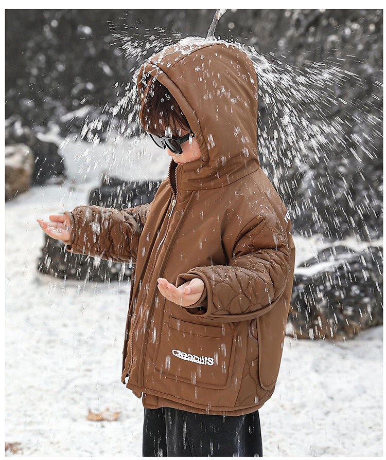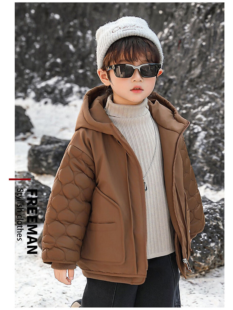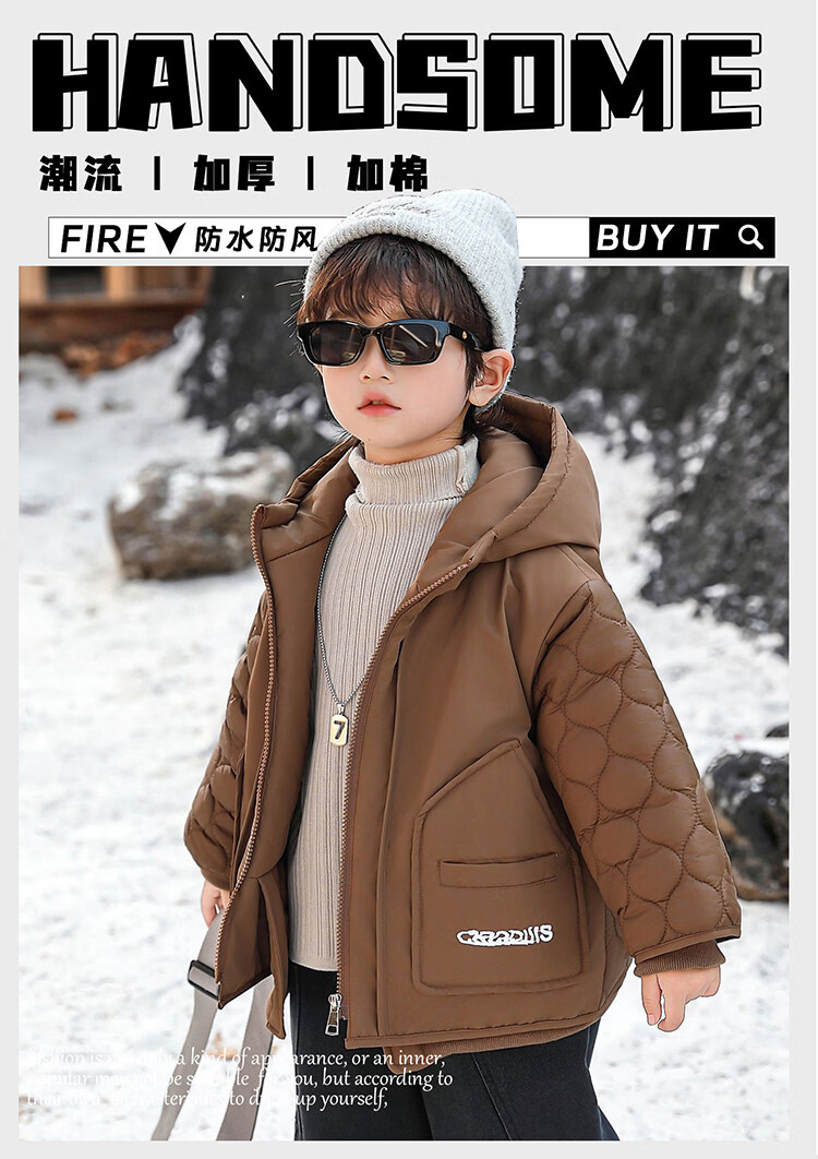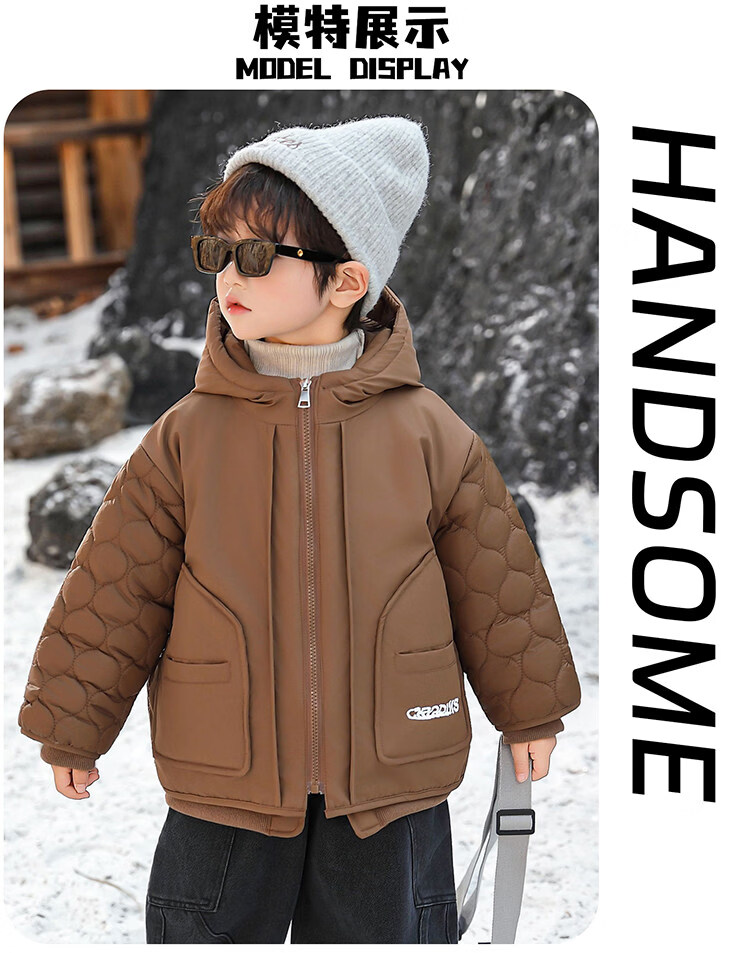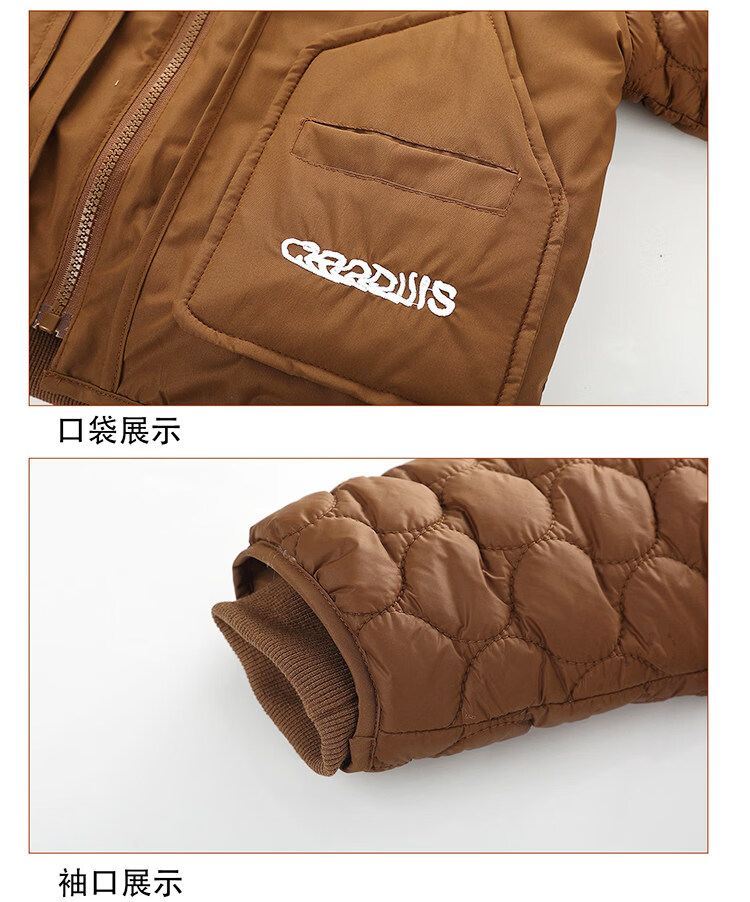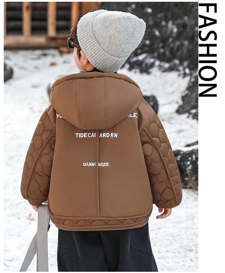 HAL.DUCK Down Jacket Boys' Cotton Clothes Winter Clothes New Style Handsome Street Children's Padded Cotton Clothes Winter Cool and Handsome Boys' Thickened Cotton Cotton Clothes Style Coffee Colored Cotton Clothes Jackets (Padding) 130 cm