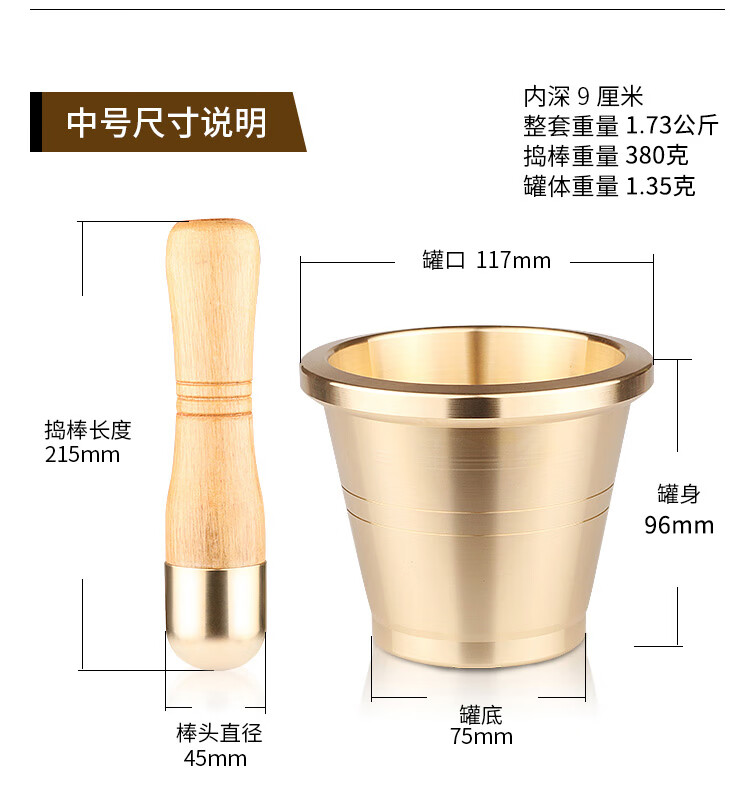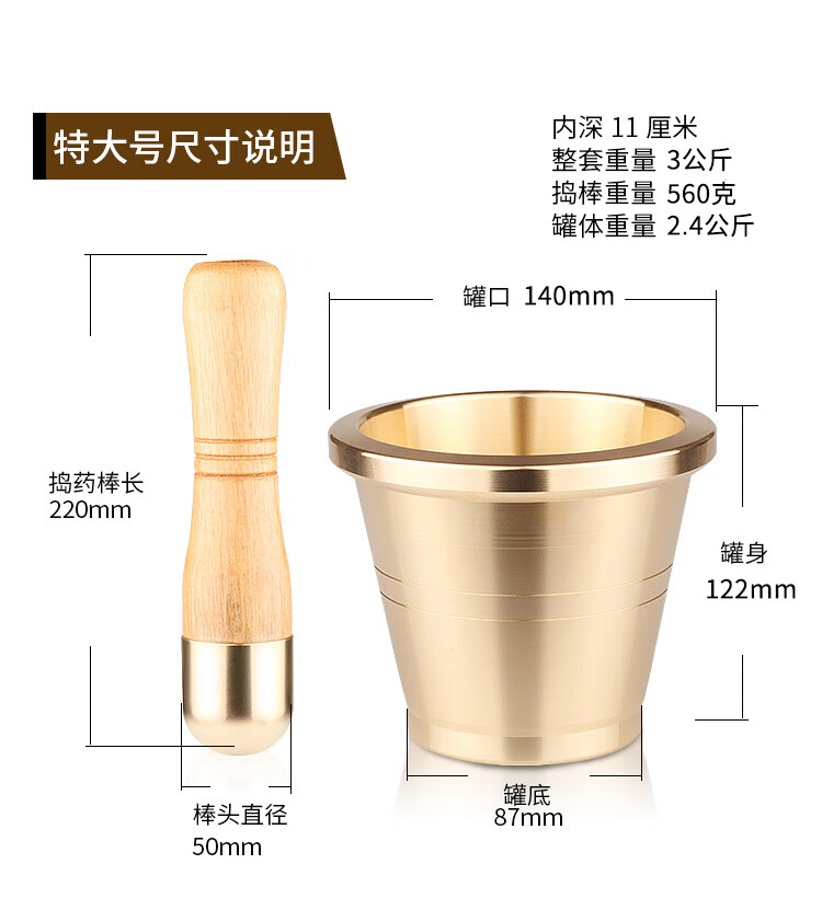 Hualeji Cantonese-style copper cup, pure copper medicine jar, garlic masher, garlic masher, traditional Chinese medicine masher, medicine cup, medicine mortar, extra thick size, small size