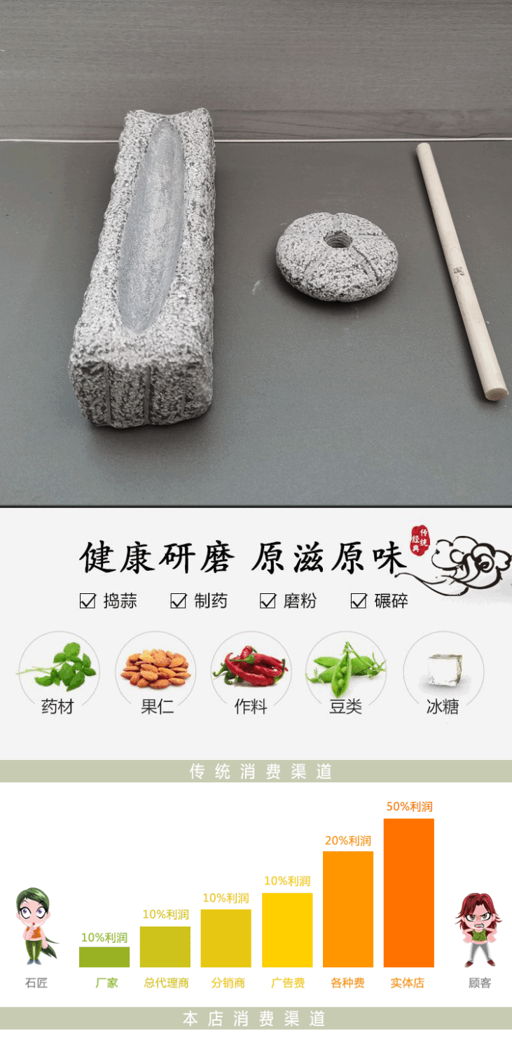 Ancient grinder stone tea grinder Song Dynasty grinder medicine mortar grinder old-fashioned tea powder grinding matcha natural Chinese medicine 20 cm lychee noodles