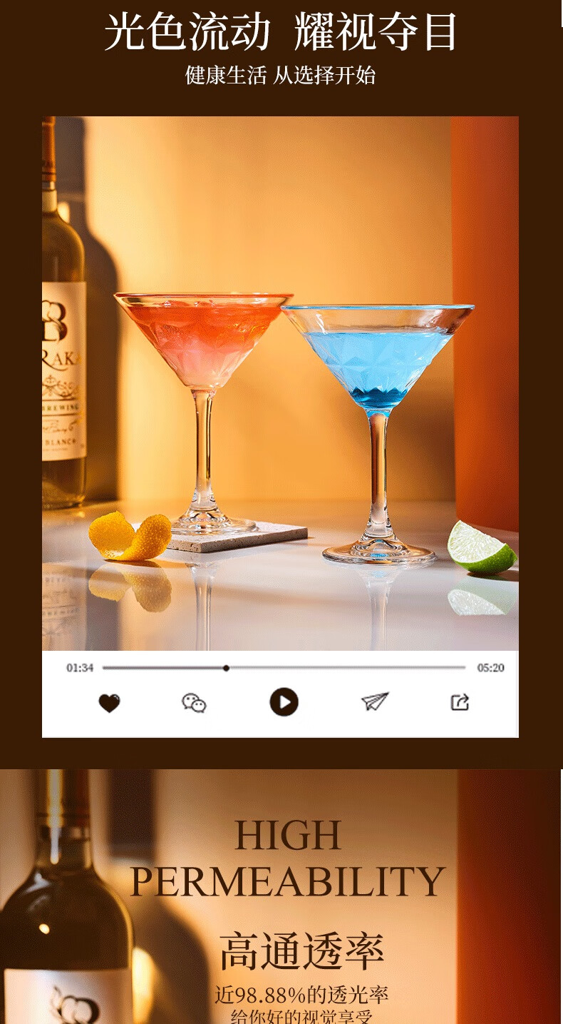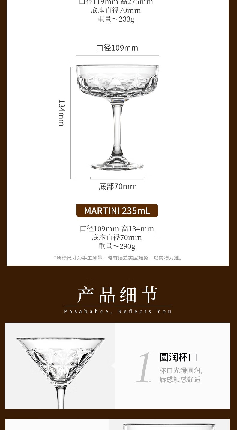 Lead-free glass martini glass, margarita glass, creative cocktail glass, red wine glass, champagne glass CHAMPAGNE-235ml 1 piece