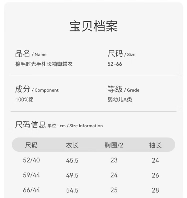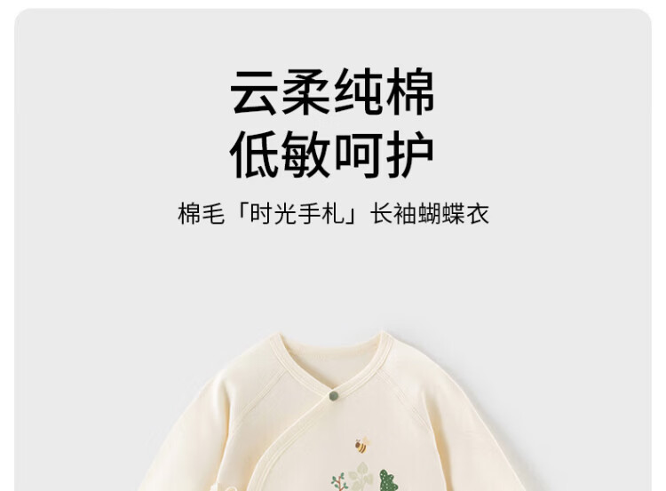 Happy Bear Baby Butterfly Clothes Baby Clothes Spring Jumpsuit Newborn Spring and Autumn Pure Cotton Monk Clothes Baby Boneless Belly Protector Time Notes - White 66cm